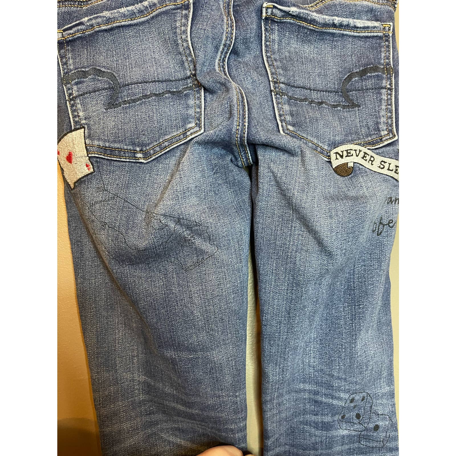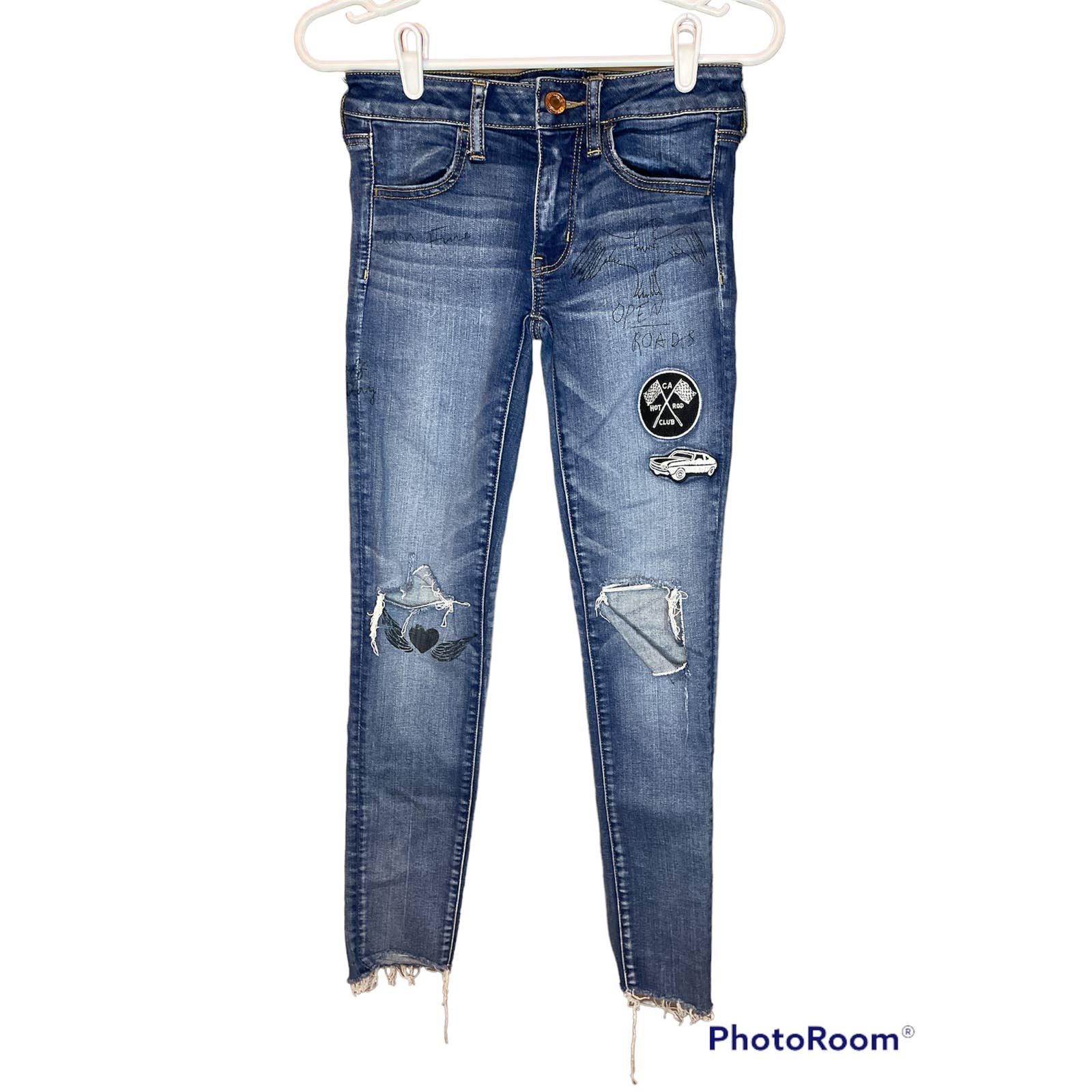 American Eagle Jegging Hot Rod Super Stretch Car Patch Distressed Jeans Size 2L