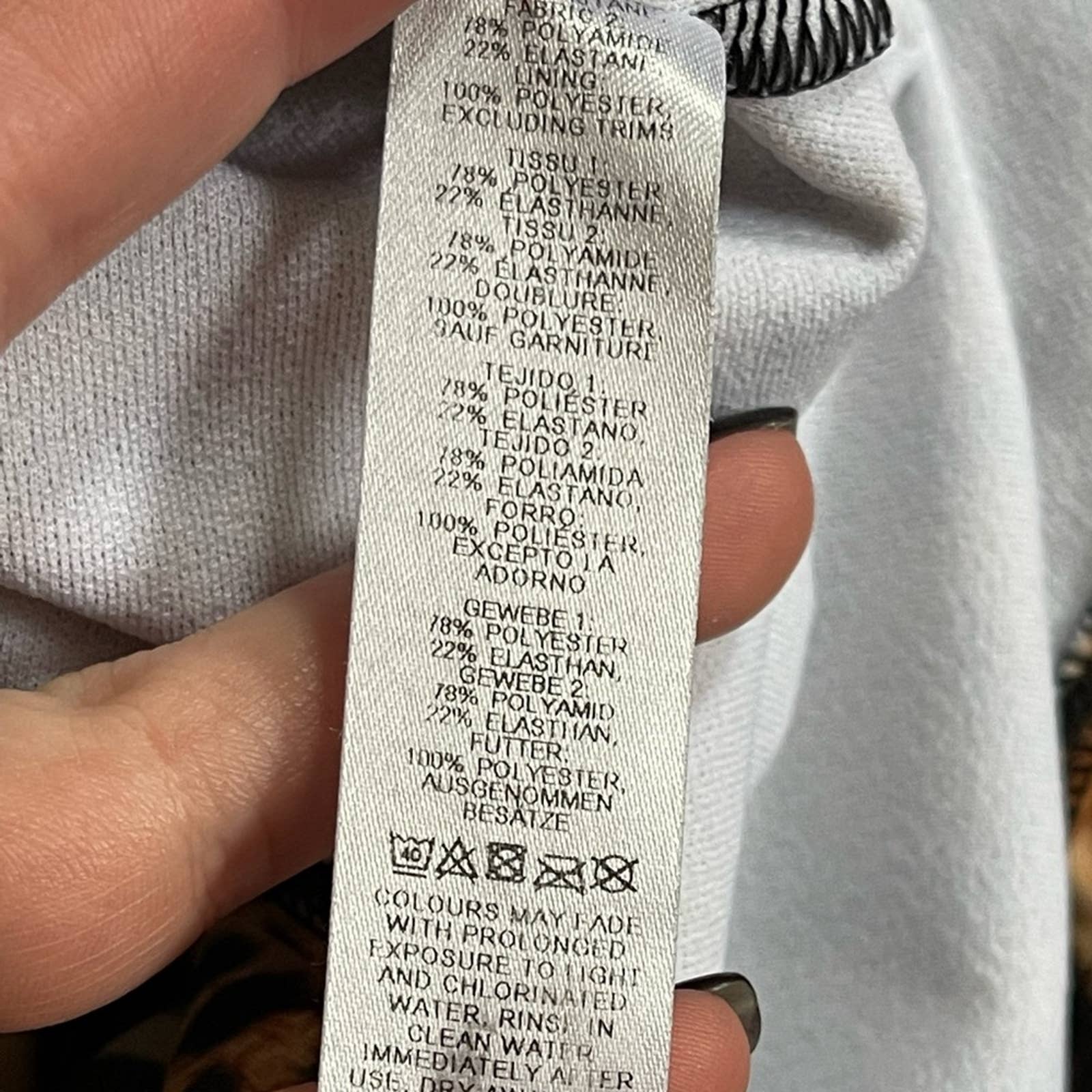 Get ready to unleash your wild side and make a statement at the beach or pool with this fierce ASOS Leopard Print Black Belted One Piece Deep V Neck Bathing Suit! The bold leopard print, figure-flattering belted design, and deep V-neckline will have you feeling confident and fierce. And with its size 6 fit, you'll be sure to turn heads and make a splash wherever you go. Don't miss out on this must-have addition to your swimwear collection!