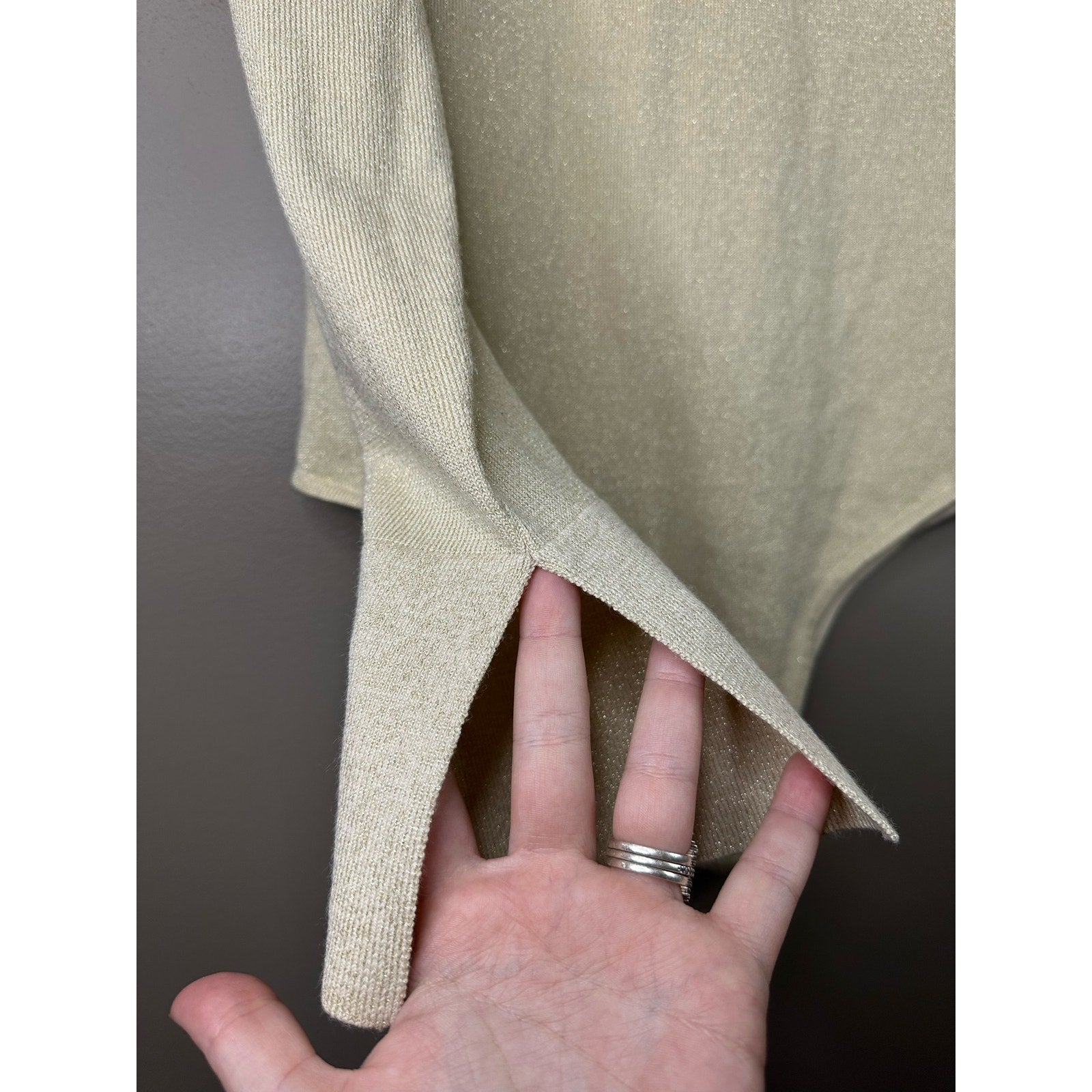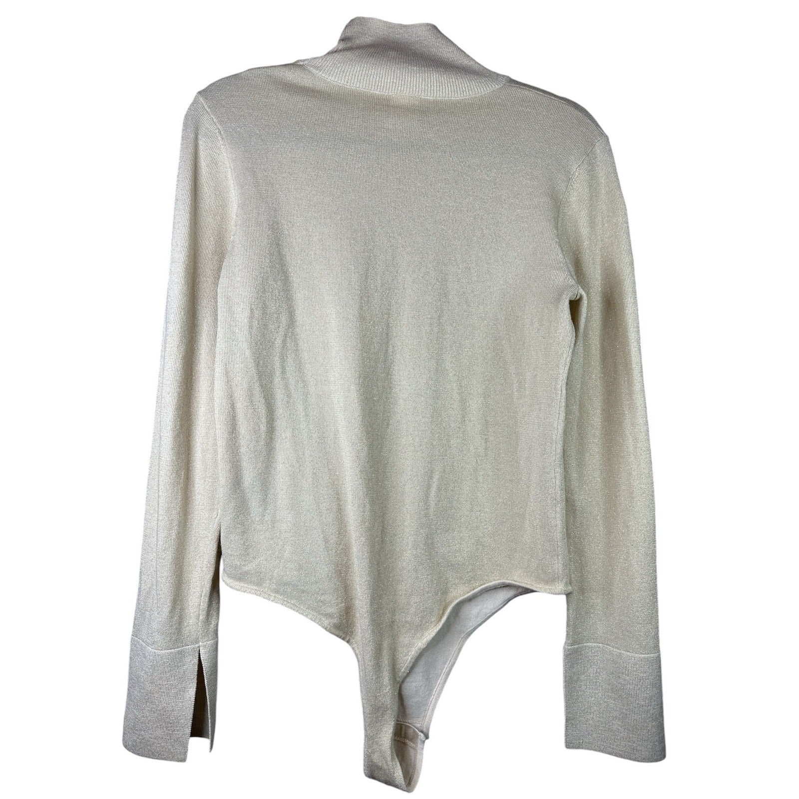 Athleta x Alicia Keys Cowl Neck Long Sleeve Cream Sparkly Wool Bodysuit Size L