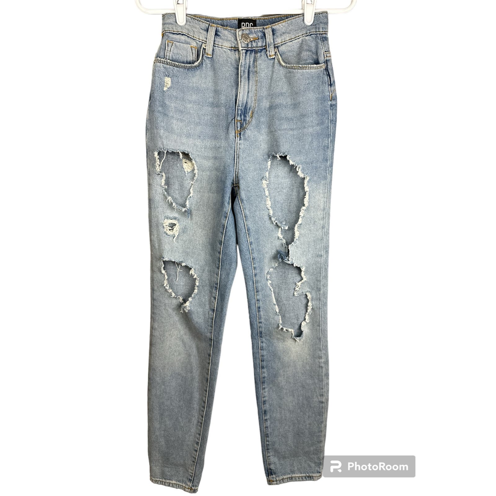 BDG Super Distressed Light Wash Mom High Rise Jeans Size 25