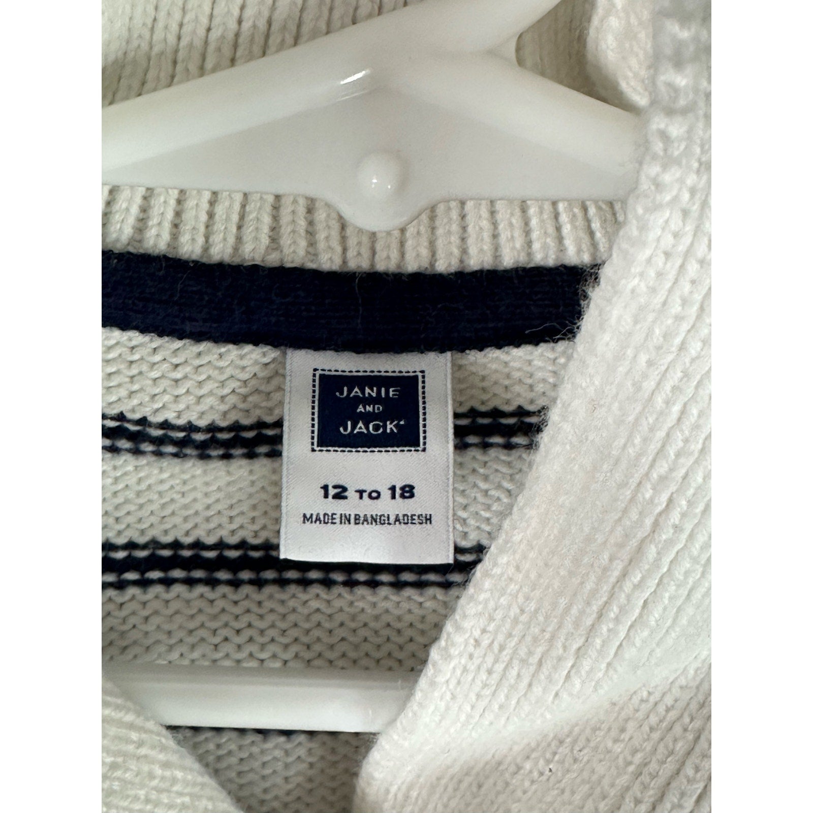 Boy’s Janie & Jack Thick Knit Long Sleeve White Blue Cardigan Size 12-18 Months