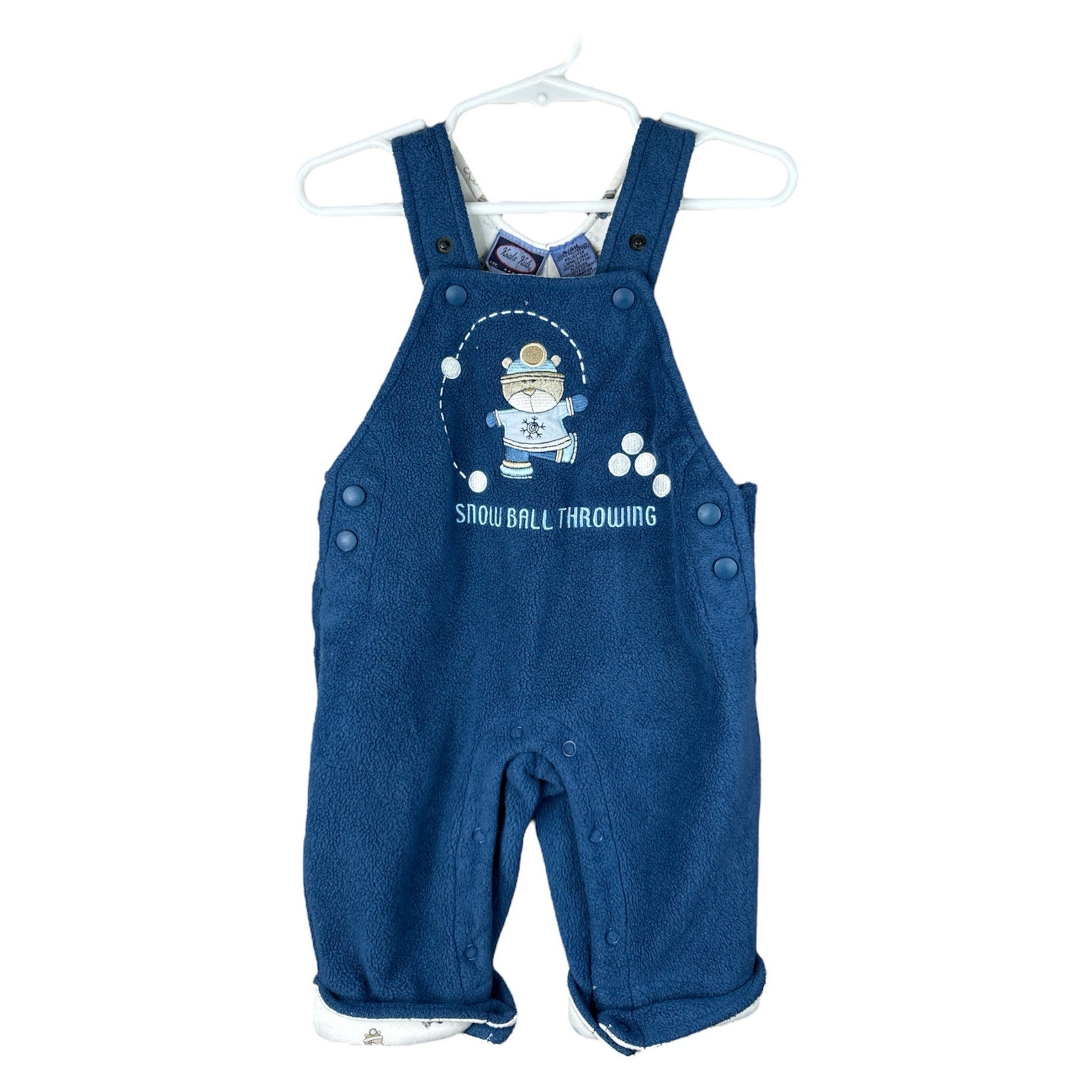 Boy’s Vintage Koala Kids Blue ‘Snowball Throwing’ Overall Bibs Size 6/9 Months
