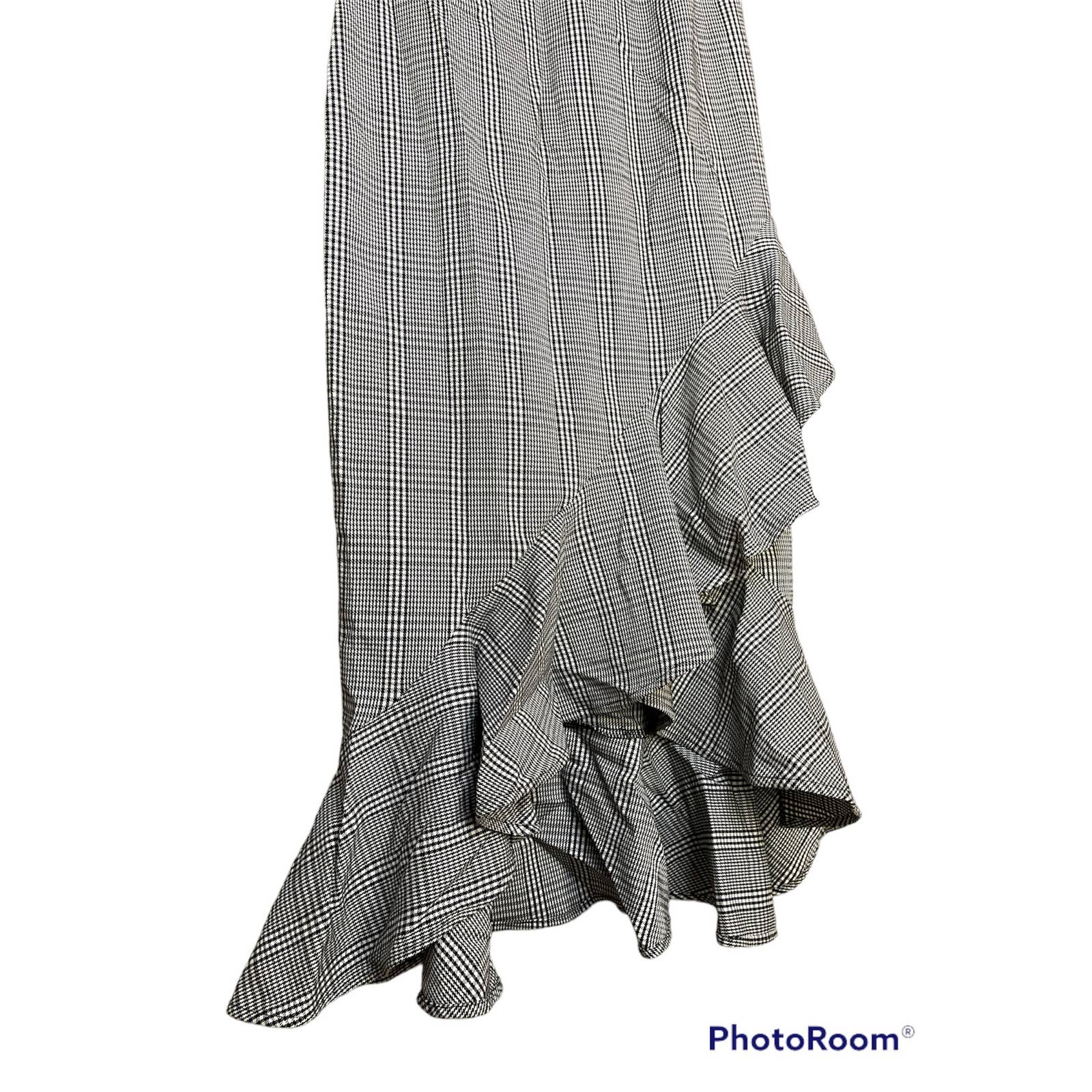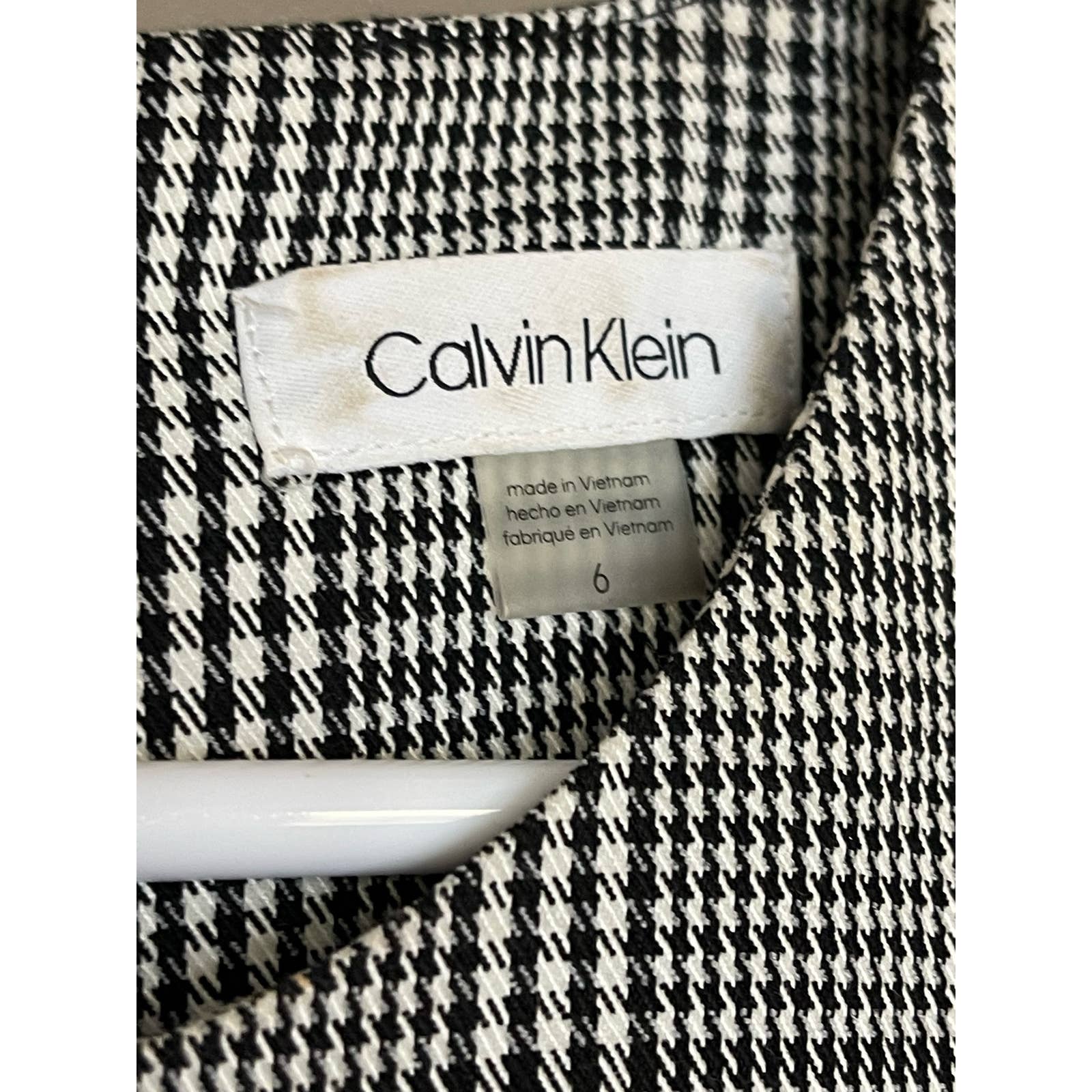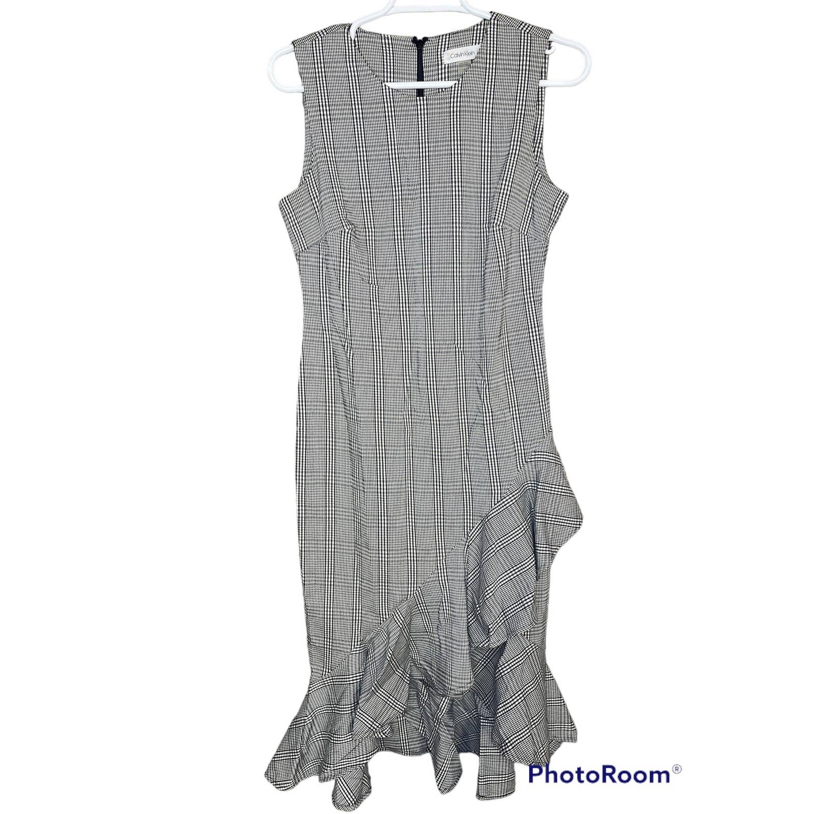Calvin Klein Sleeveless Houndstooth Black White Ruffle Hem Sheath Dress Size 6