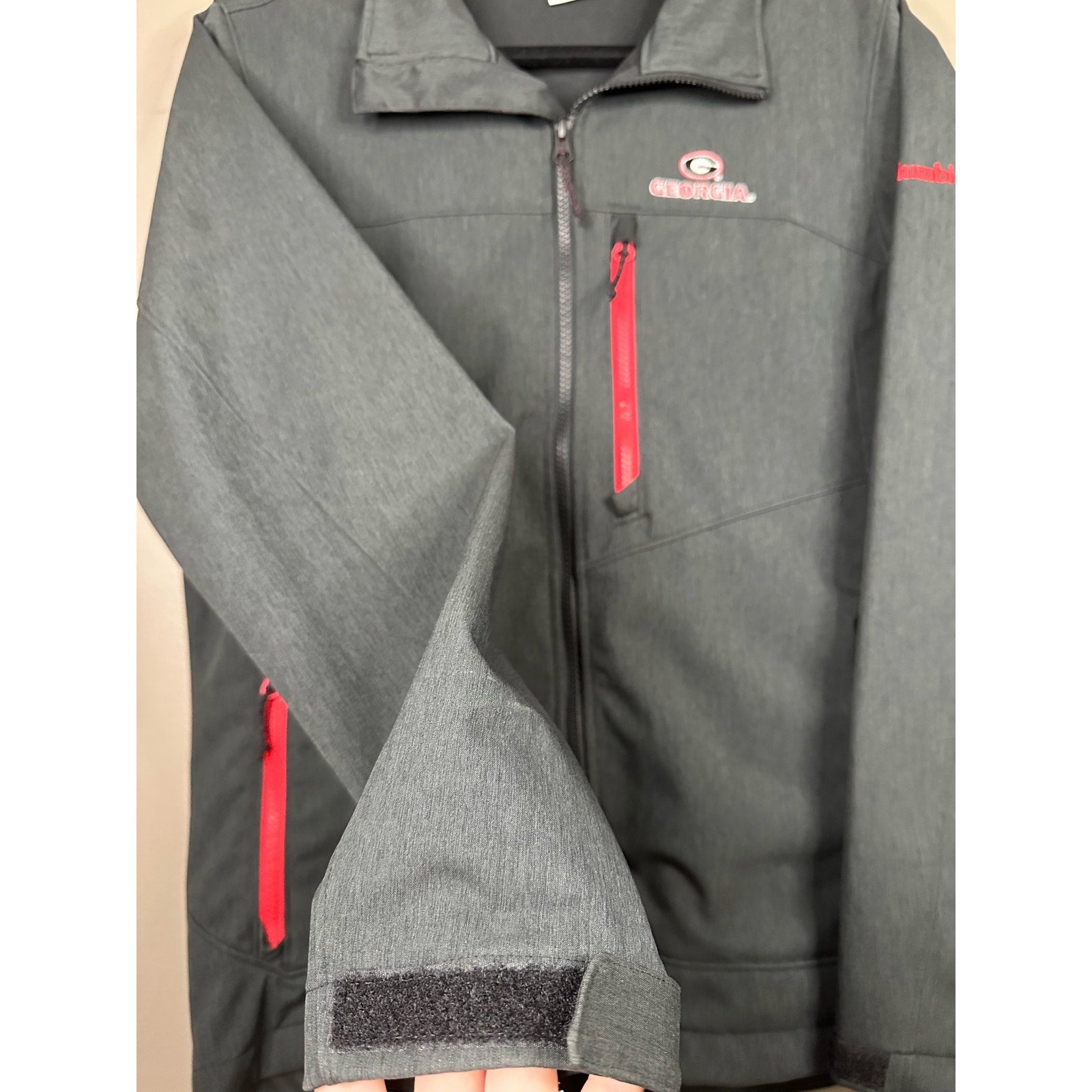 Columbia Grey Black Red UGA Georgia Collared Zip Up Jacket Size Small