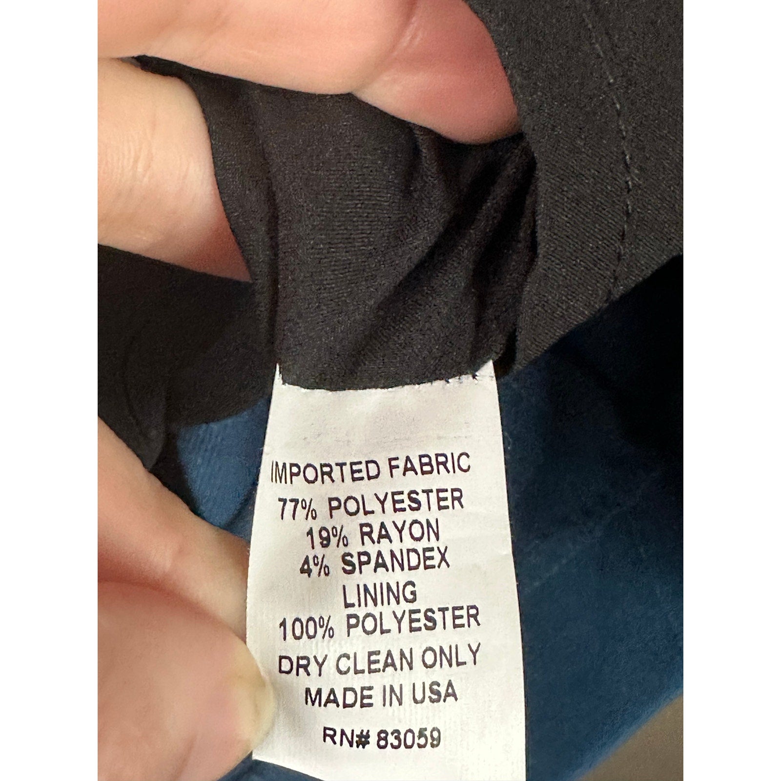 contents/ made of: 77% polyester/ 19% rayon/ 4% spandex