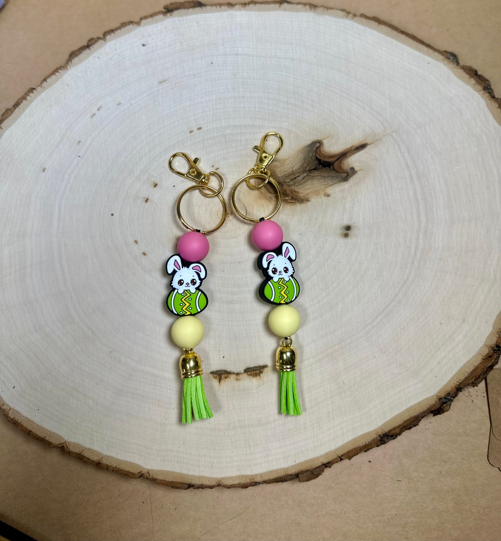 ✨Easter Bunny With Green Easter Egg Gold Hardware Green Tassel Keychain ✨