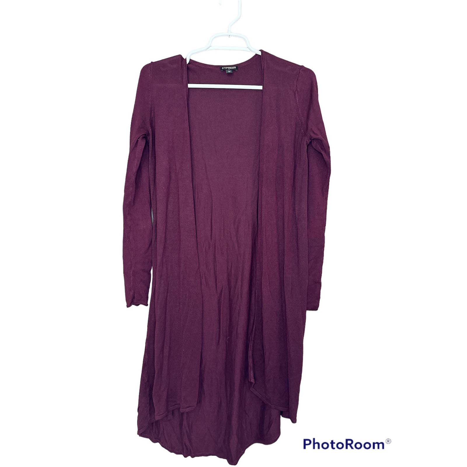 Make a statement and elevate your wardrobe with this luxurious plum purple long sleeve long cardigan/duster from Express. Perfect for any occasion, this stylish piece adds a pop of color and a touch of elegance to any outfit. Plus, its versatile design allows you to effortlessly transition from day to night. Feel confident and polished in this must-have addition to your closet!