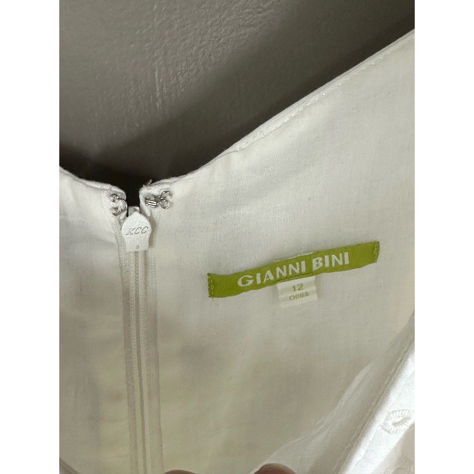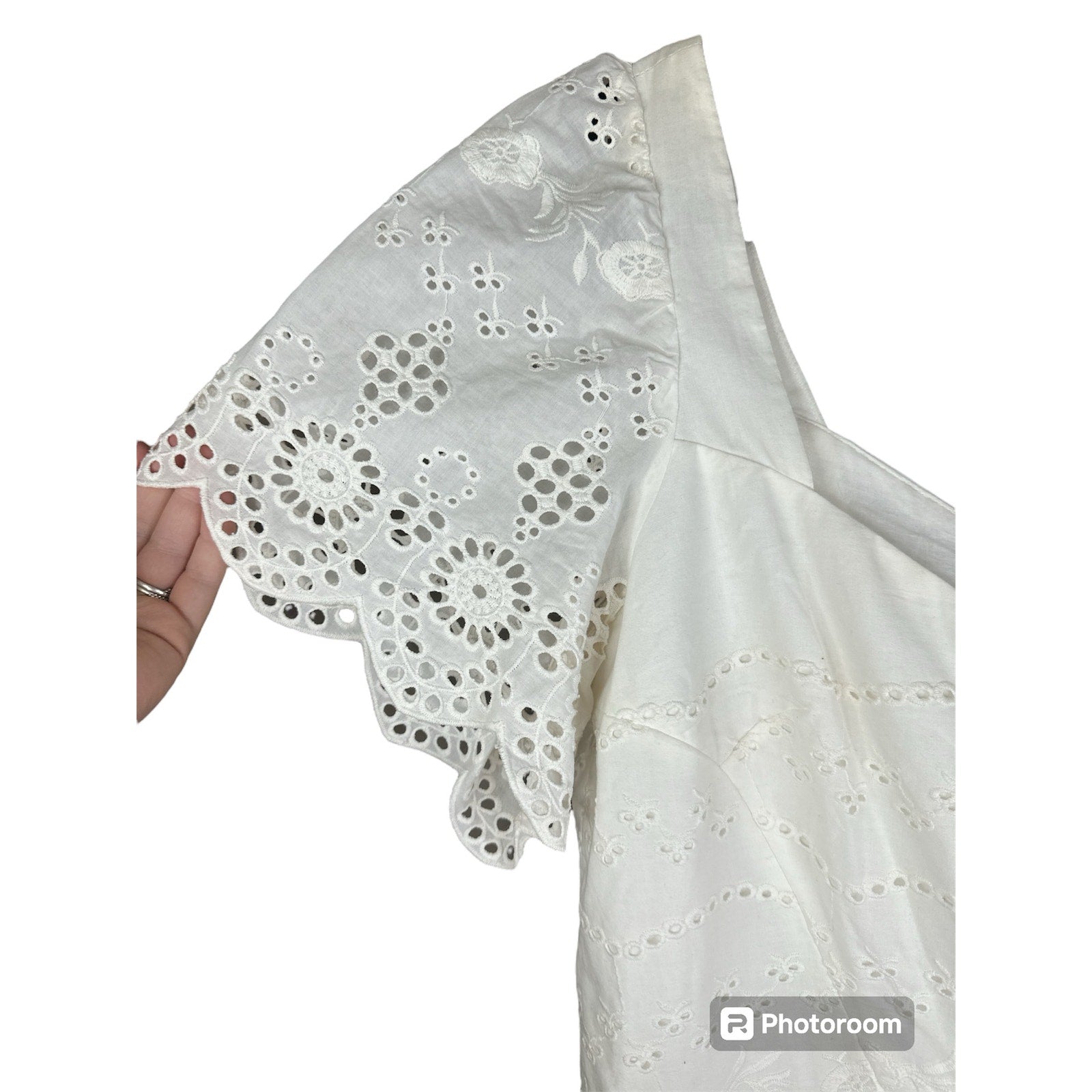 Gianni Bini White Short Puff Sleeve Off Shoulder Eyelet Detail Dress Size 12