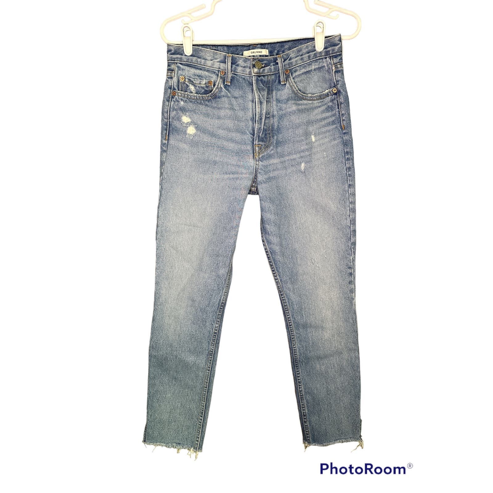 GRLFRND Karolina Straight Button Raw Hem Light Wash Jeans Size 27