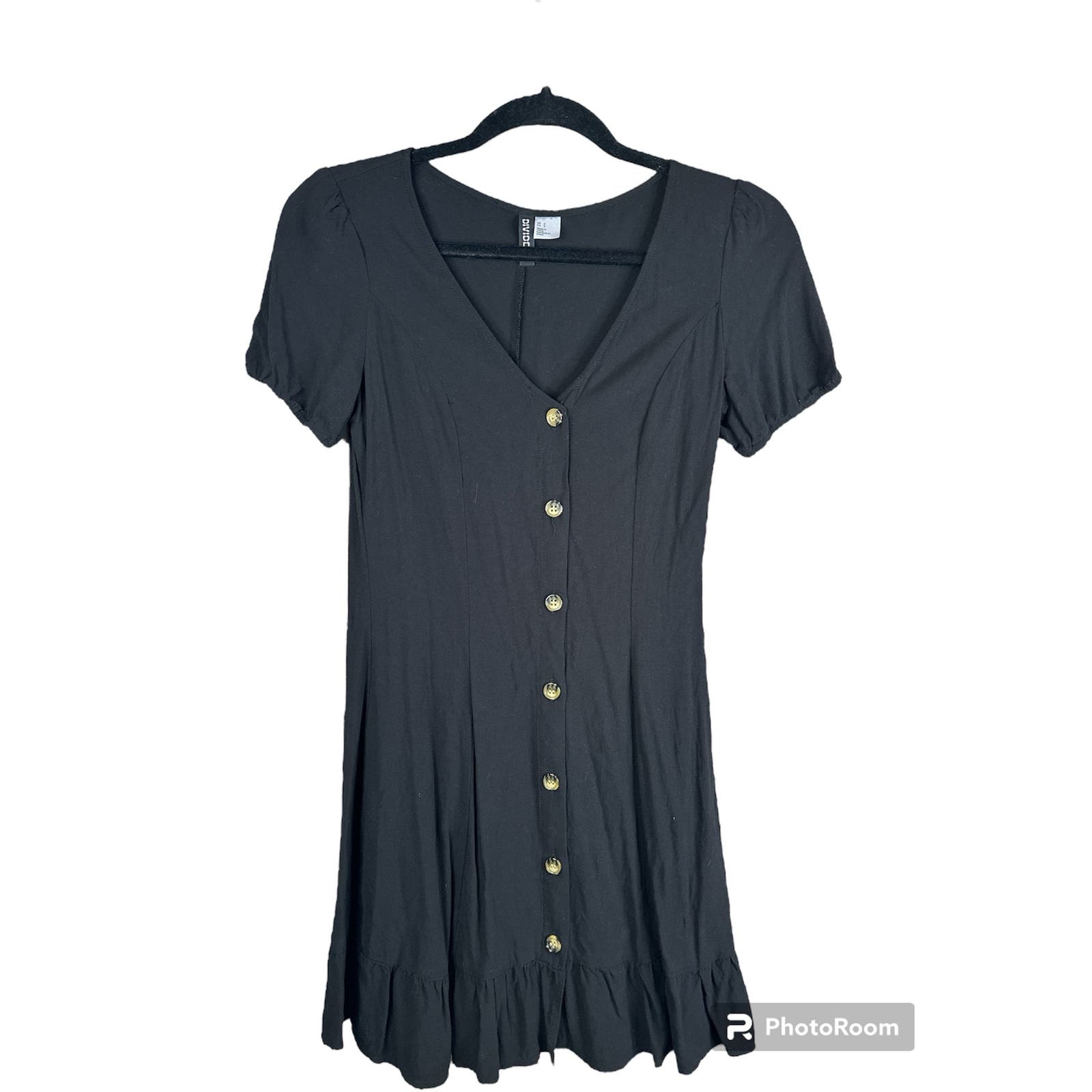 H&M Divided Black Short Sleeve Button Down Ruffle Hem Fit & Flare Dress Size 2
