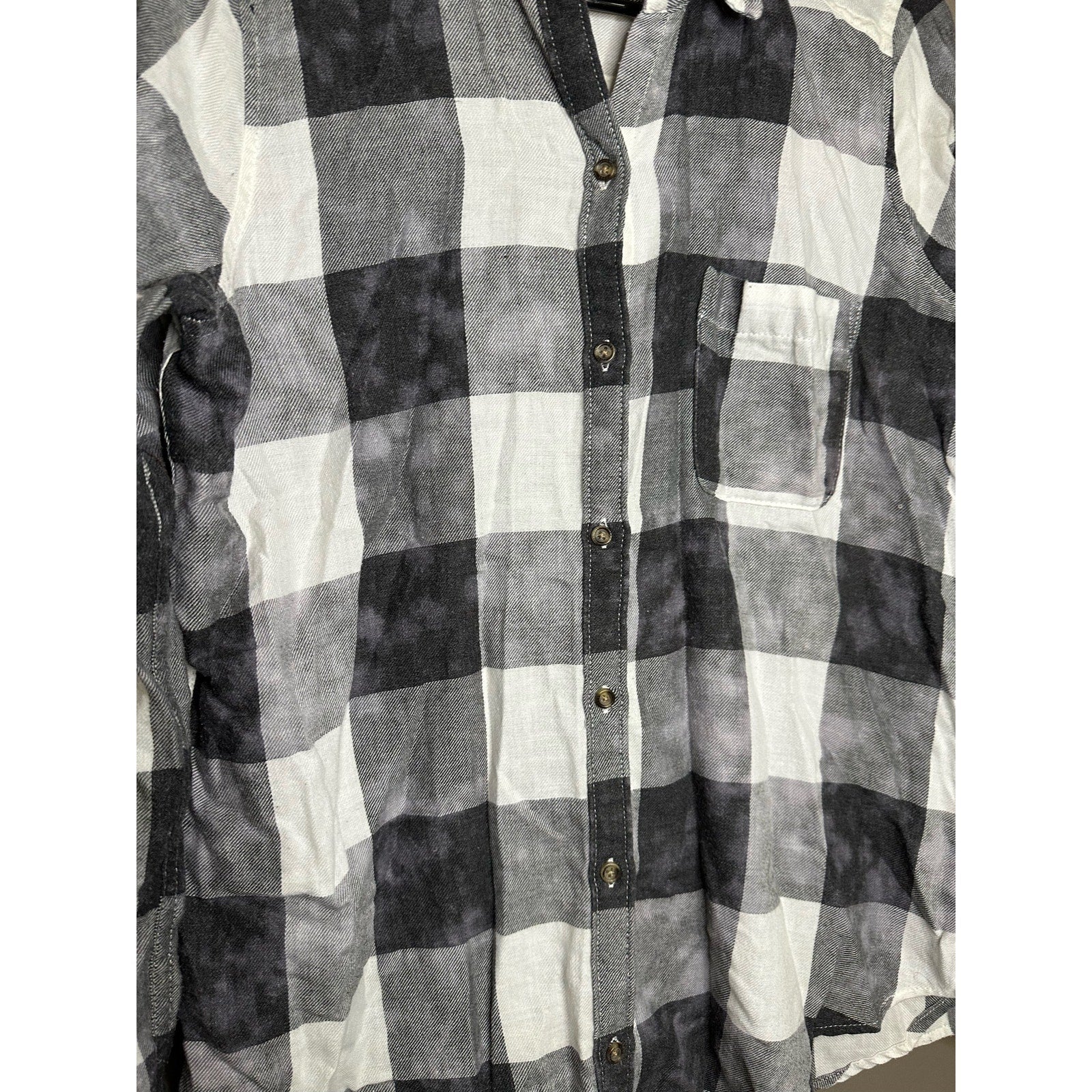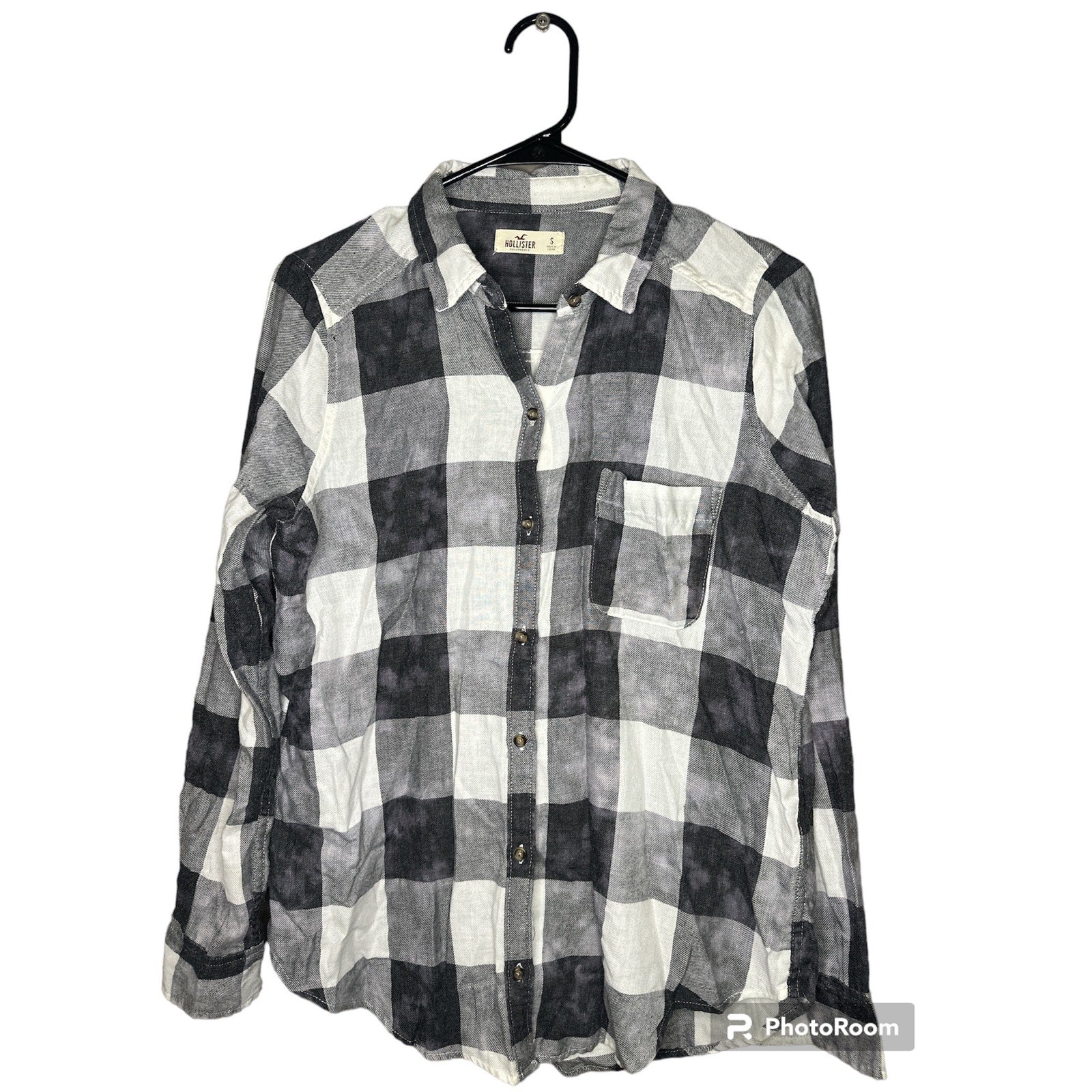 Embrace effortless style and comfort with this Hollister Black White Bleach Splatter Long Sleeve Button Down in size S. The unique bleach splatter pattern adds a touch of edginess to any outfit. Made with high-quality materials, this button down is both durable and soft, providing all-day comfort. Perfect for any occasion, whether you're dressing up or dressing down. Upgrade your wardrobe and make a statement with this versatile and stylish piece.