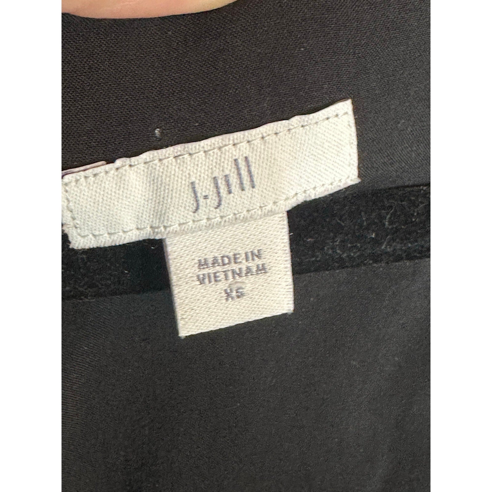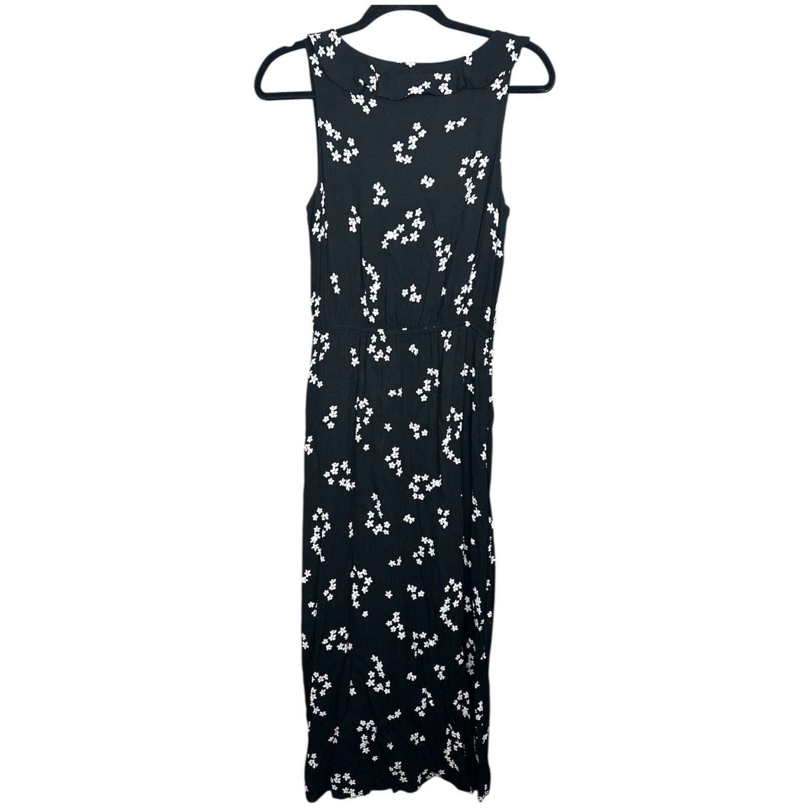 J Jill Black White V-Neck Floral Print Short Sleeve Side Slit Maxi Dress Size XS