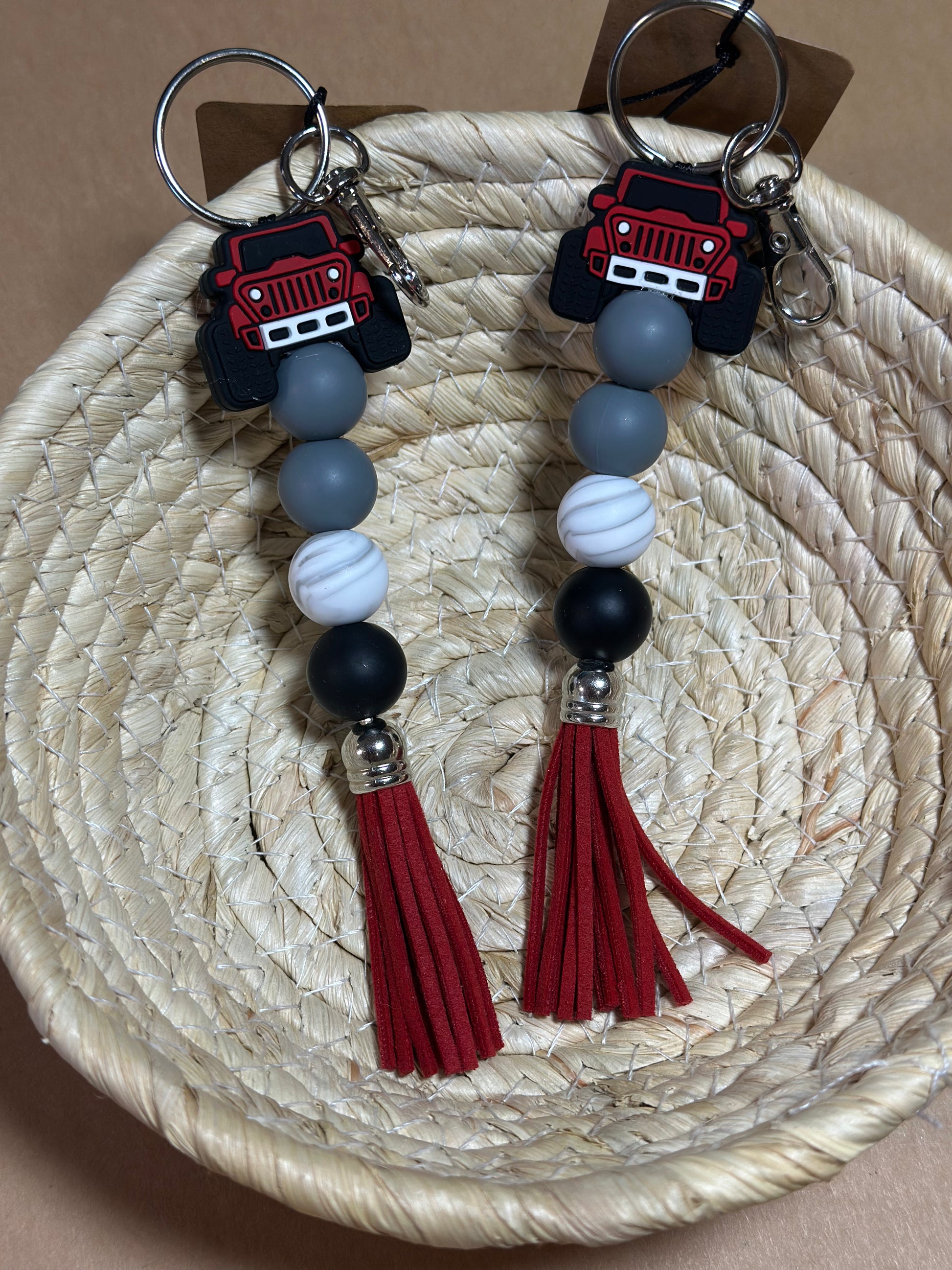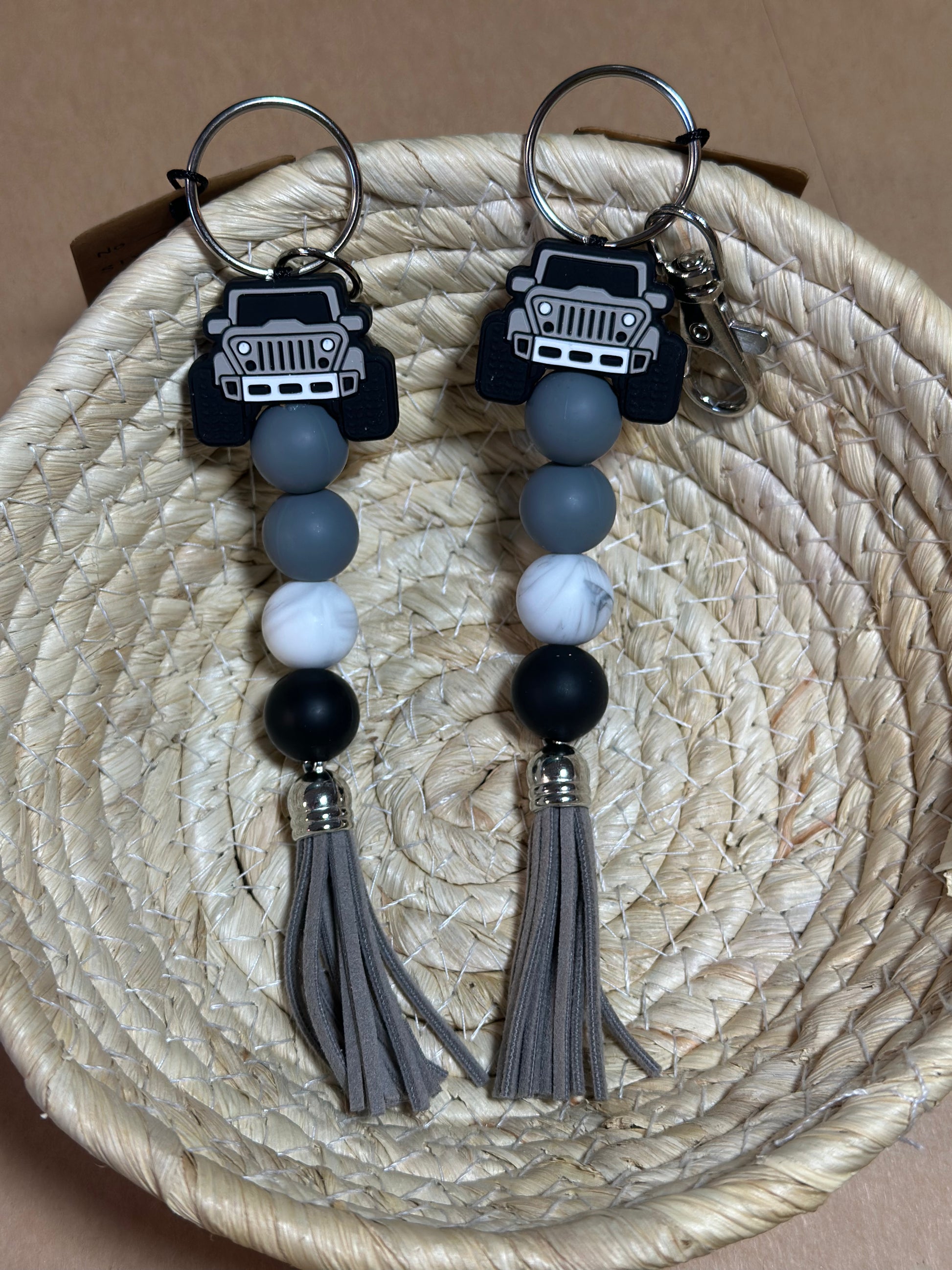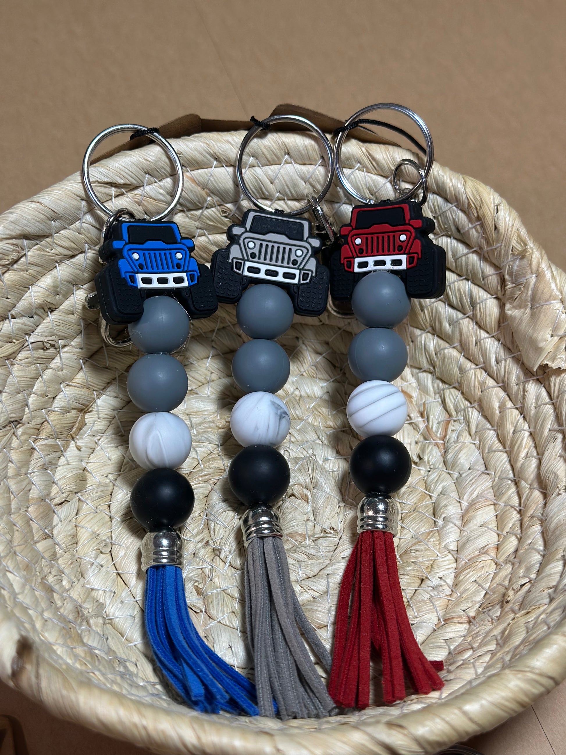 Silicone Bead Standalone Keychain | 'Trail Ready'- Grey, Blue, Yellow, & Red Jeep Silicone Keychain