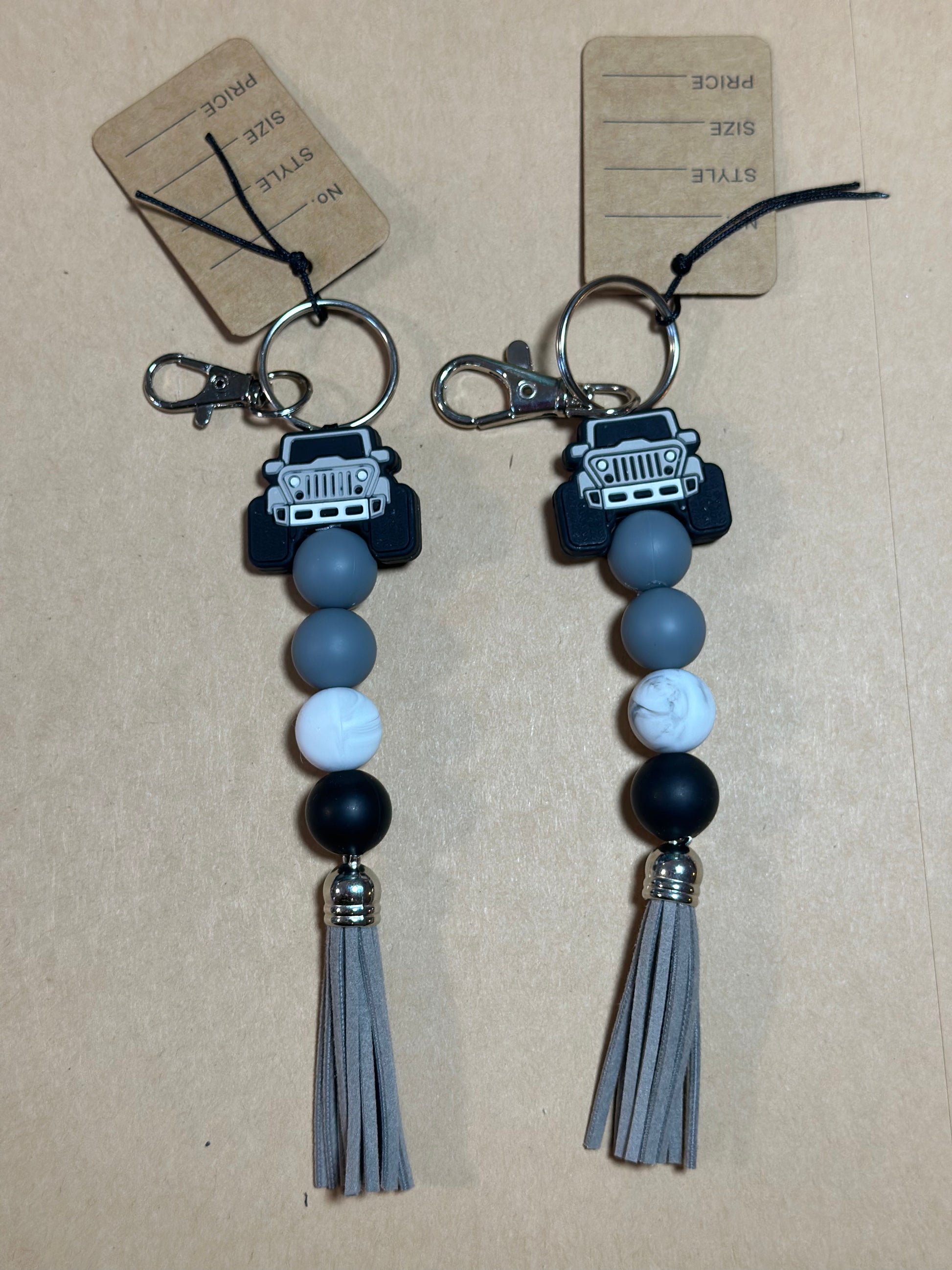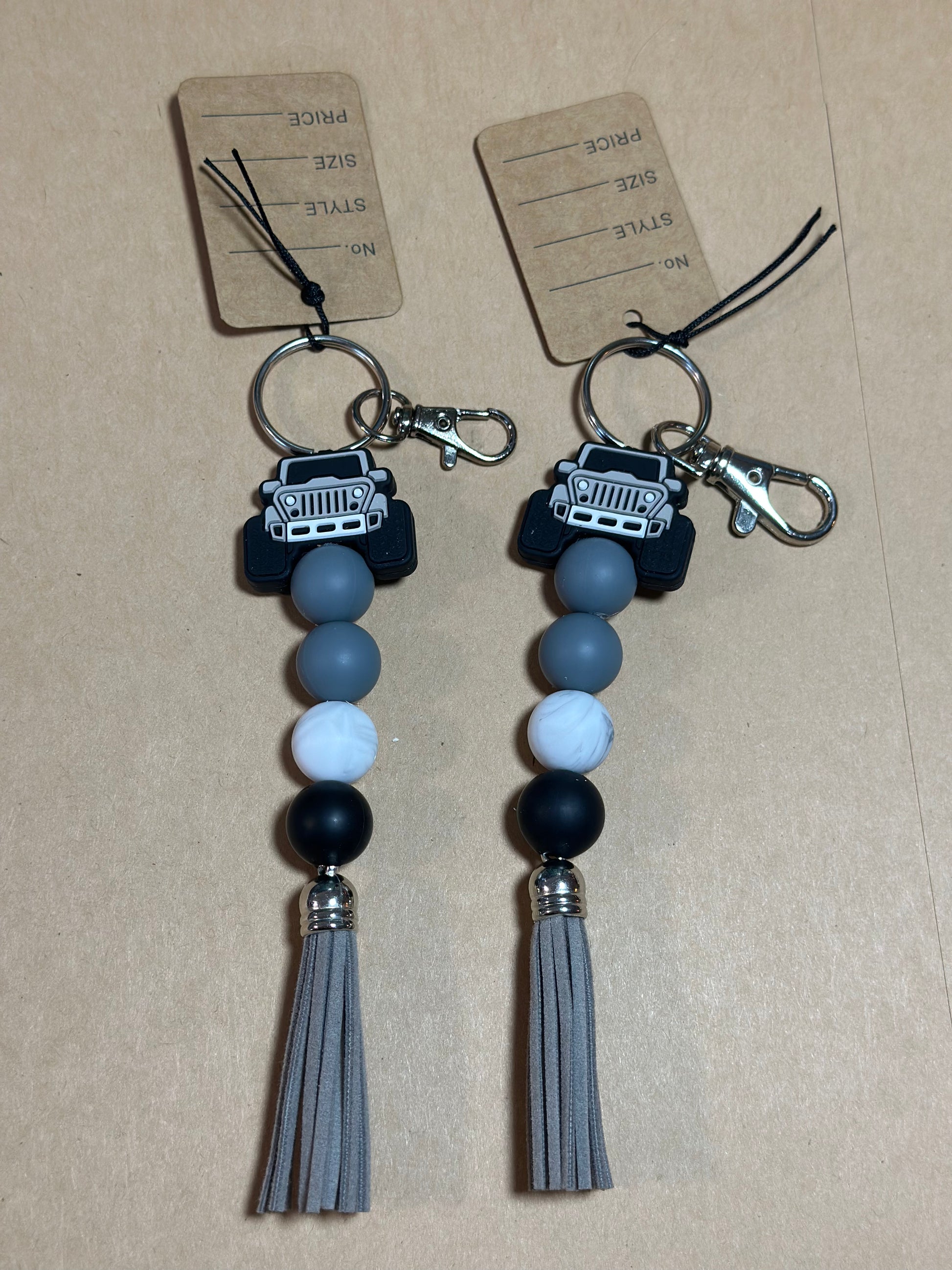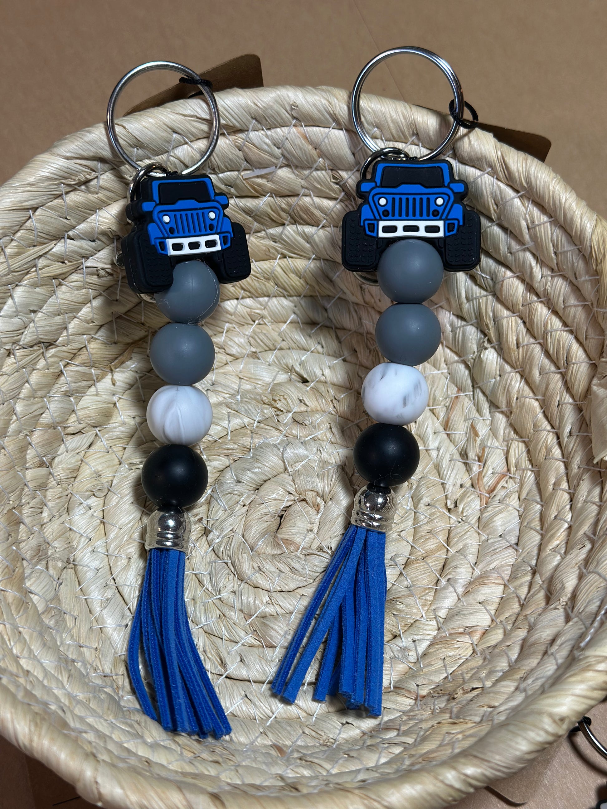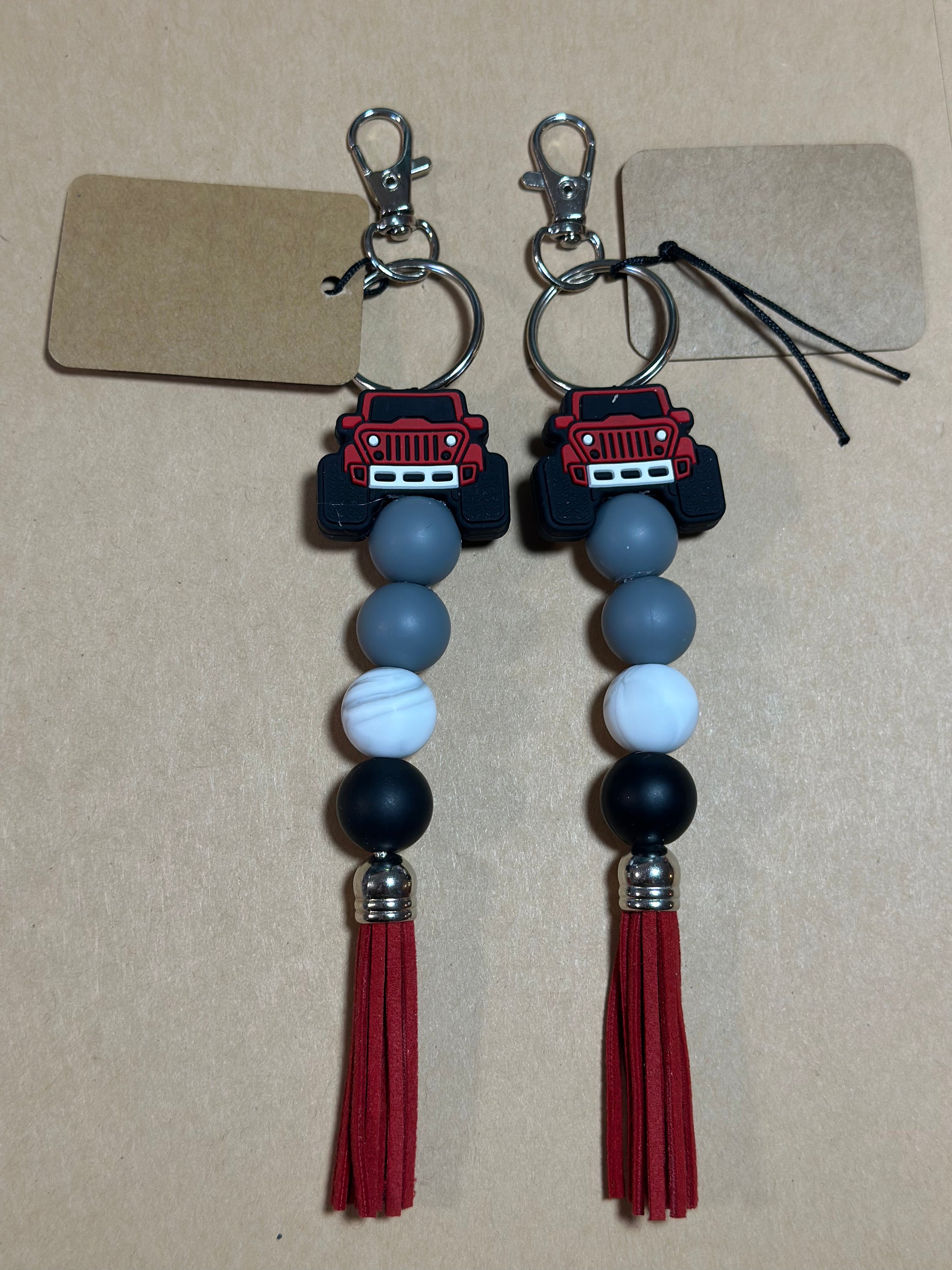 Silicone Bead Standalone Keychain | 'Trail Ready'- Grey, Blue, Yellow, & Red Jeep Silicone Keychain
