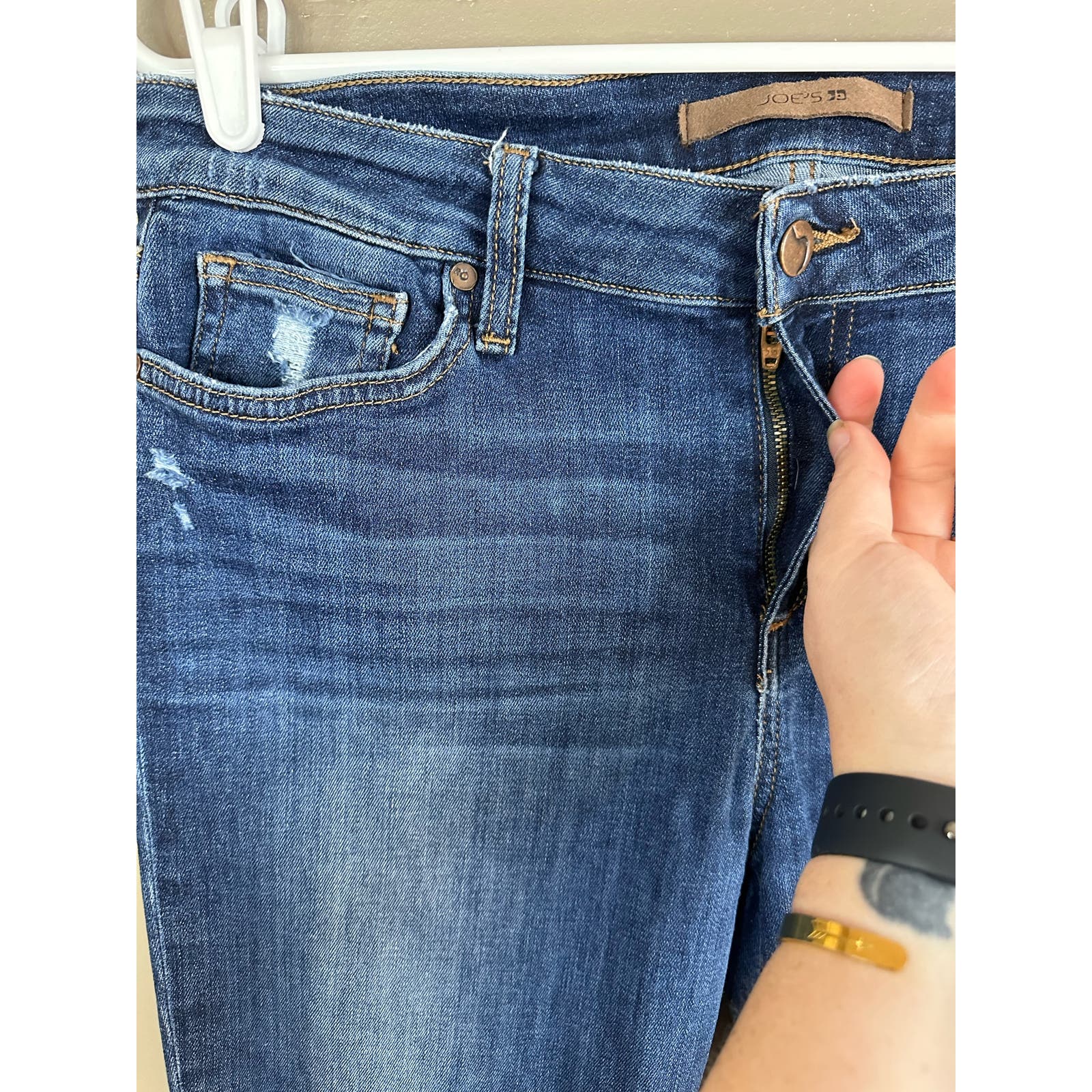 Get ready to turn heads and make a statement in these gorgeous Joe's Jeans! With a medium wash and distressed details, these jeans exude effortless cool and style. And don't forget the added touch of the raw hem fringe, adding a playful and unique element to your look. The perfect size 31 fit will have you feeling confident and comfortable all day long. Upgrade your wardrobe with these must-have jeans today!