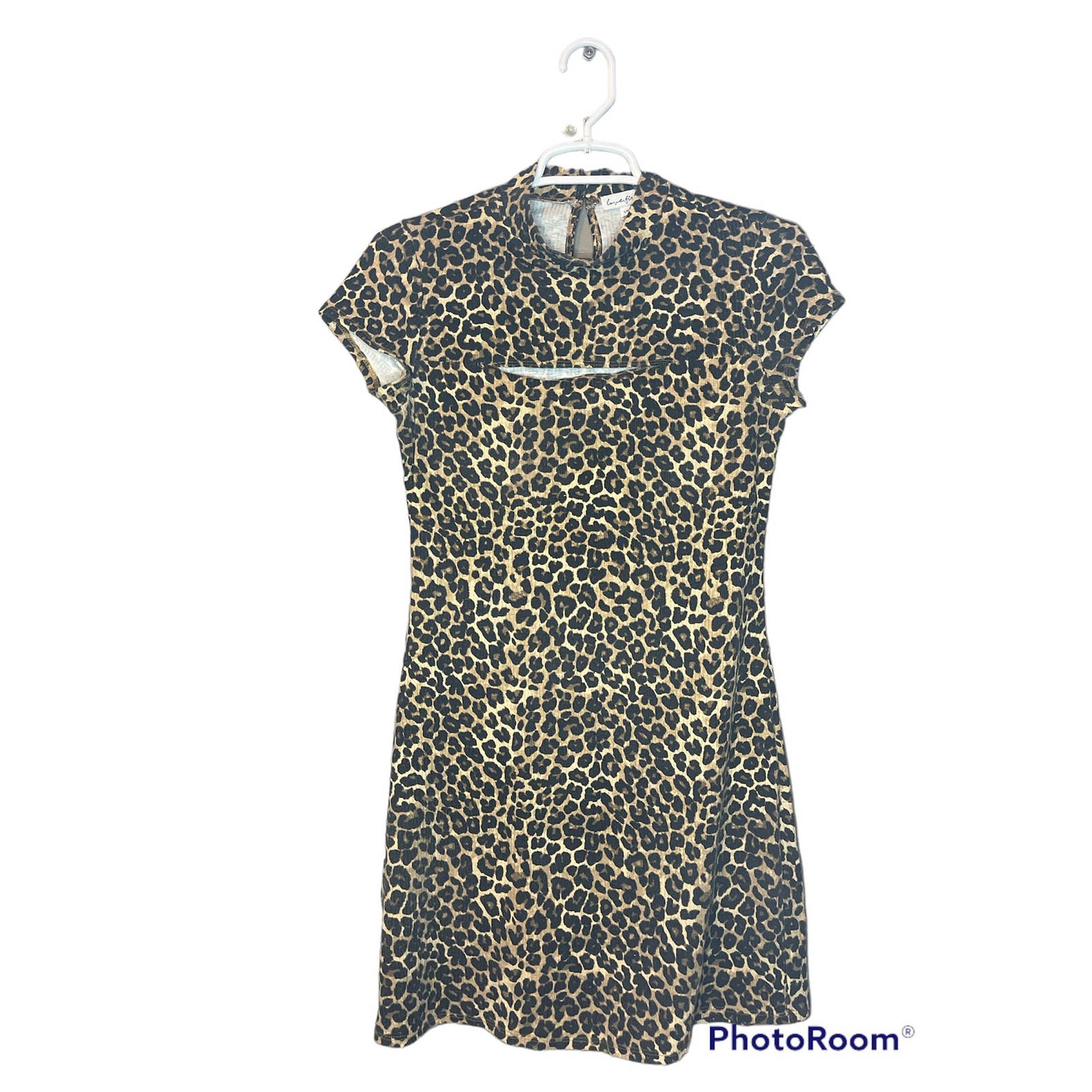 Love, Fire Nordstrom Cheetah Print Short Sleeve Bodycon Keyhole Dress Size S