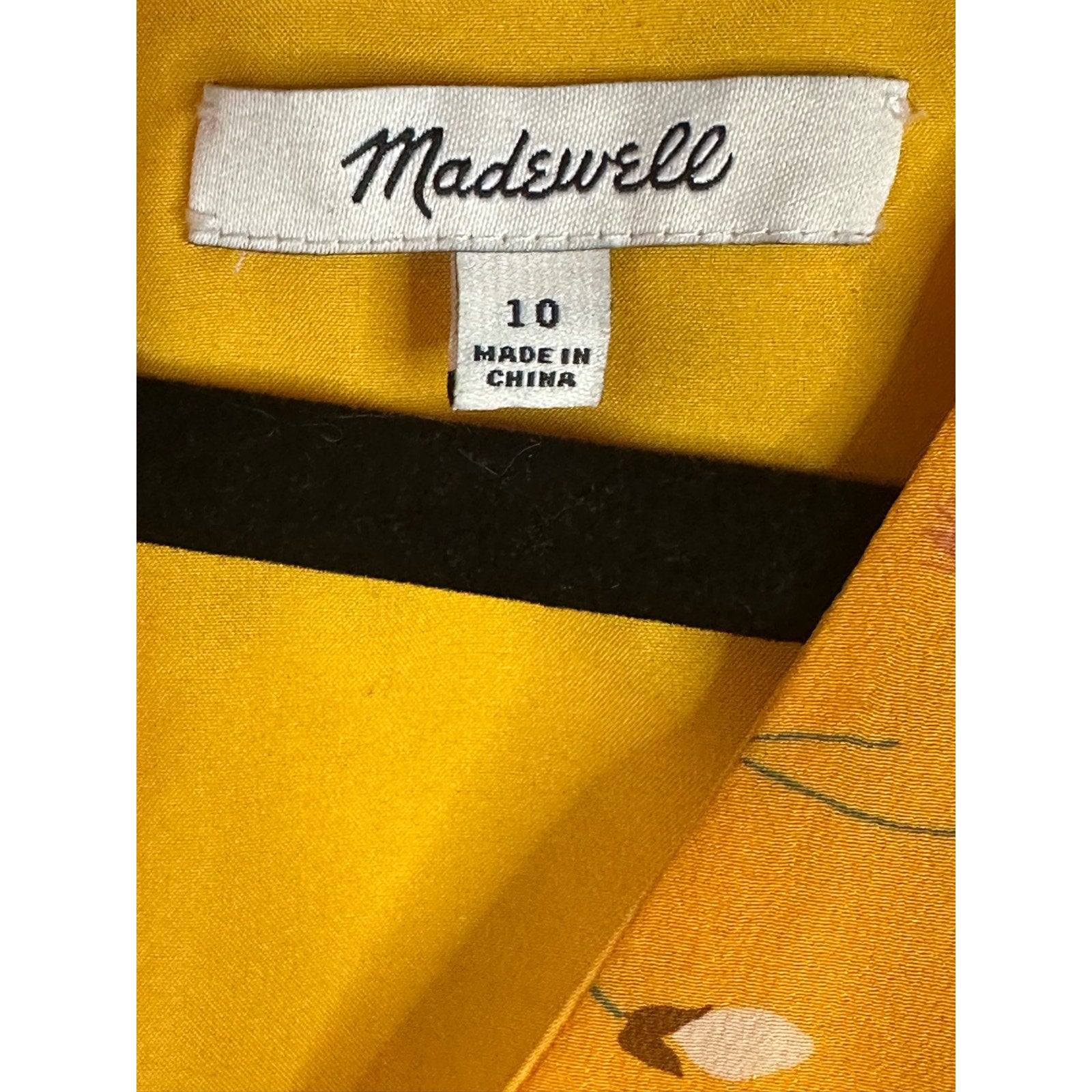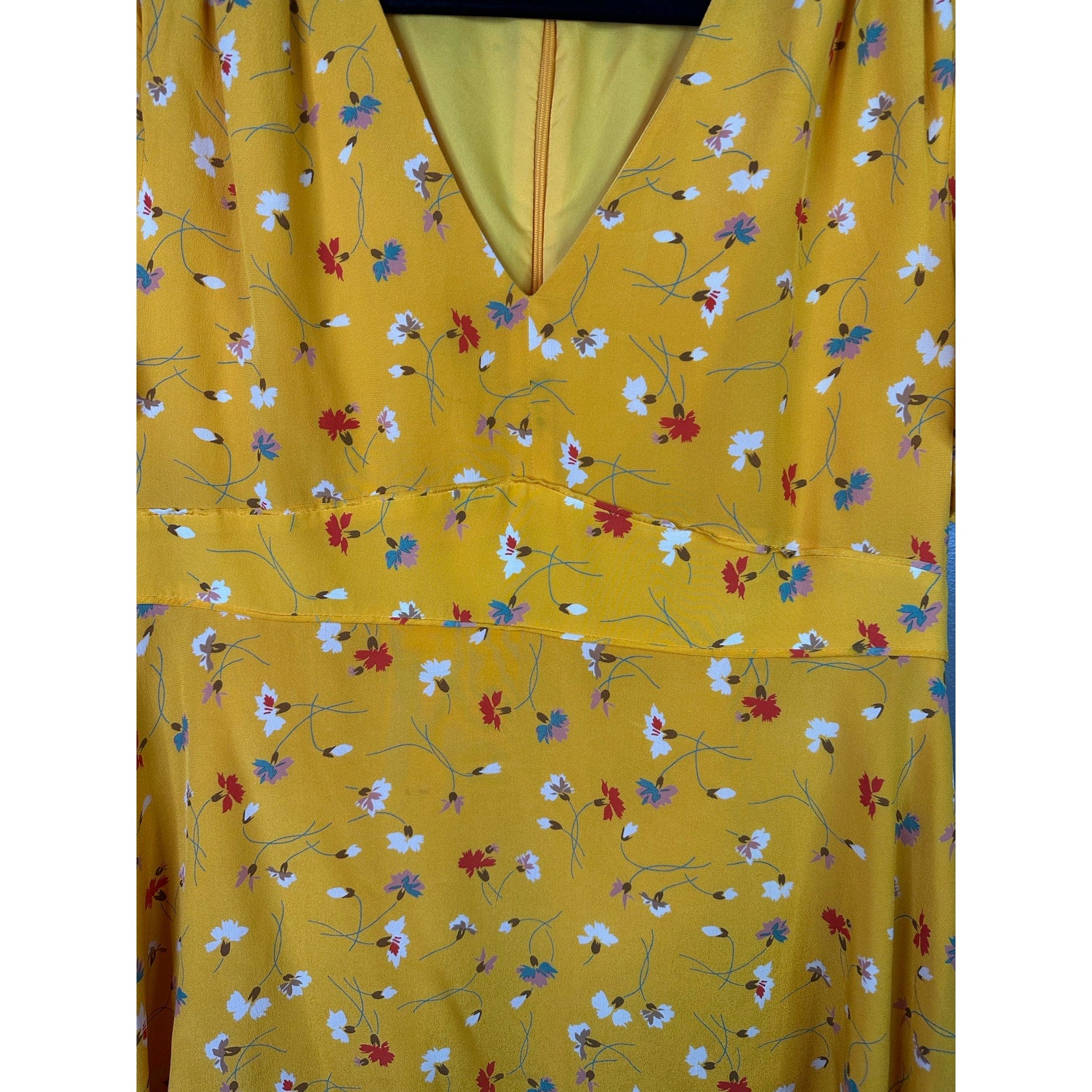 Madewell 'Beladonna' 100% Silk Yellow Floral Print Short Sleeve Dress Size 10