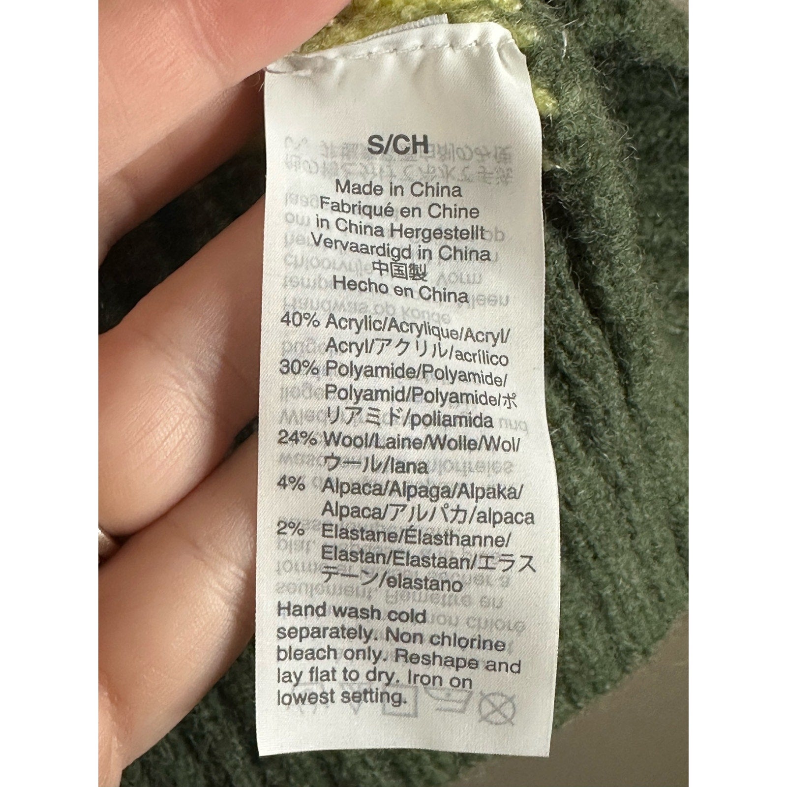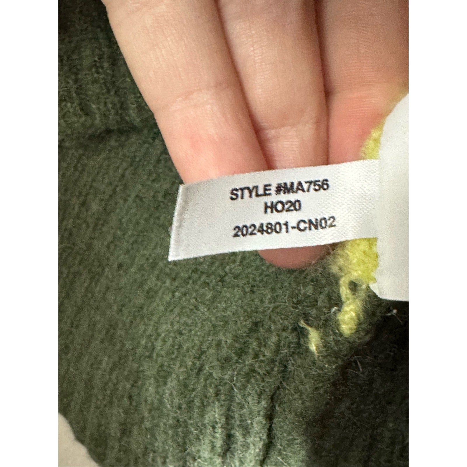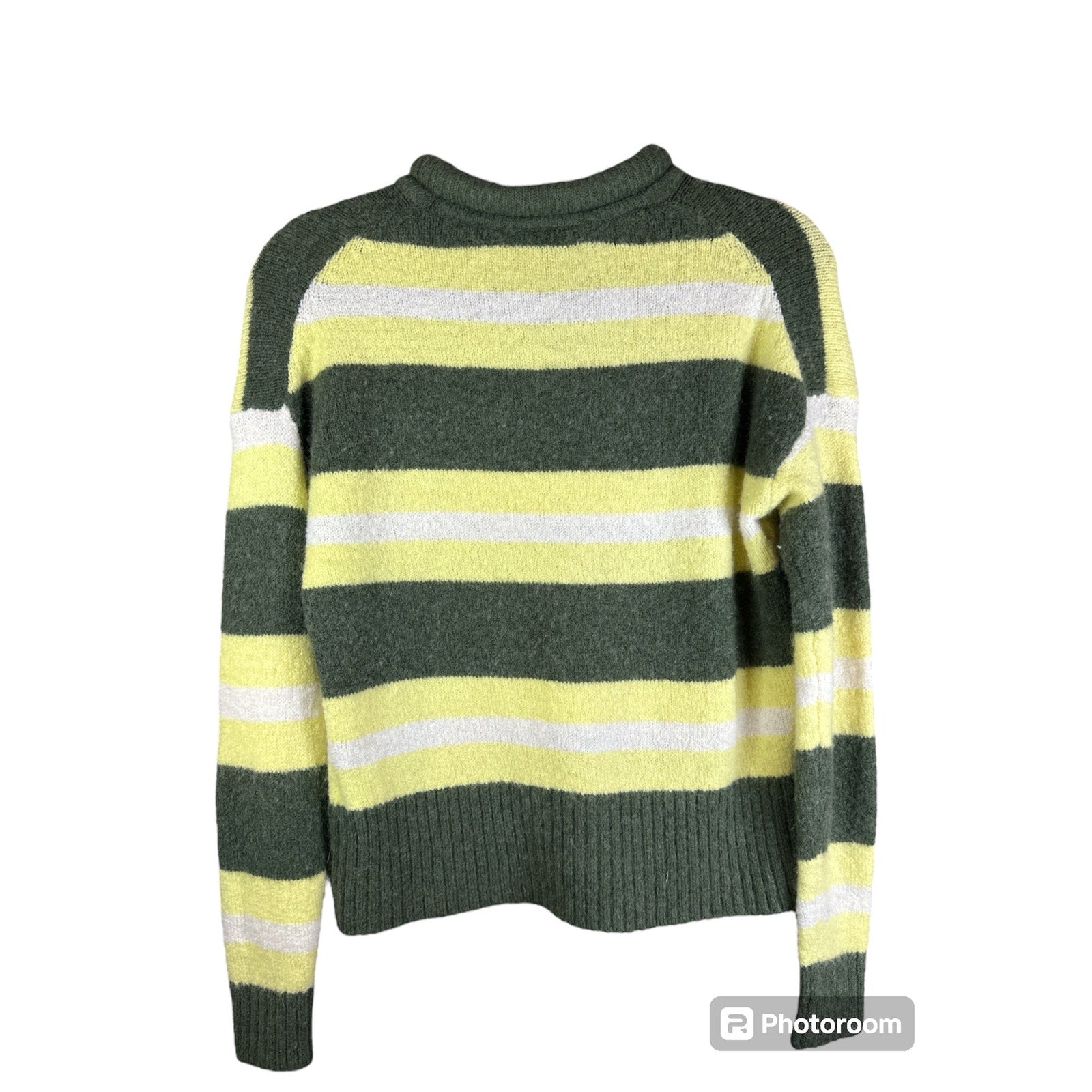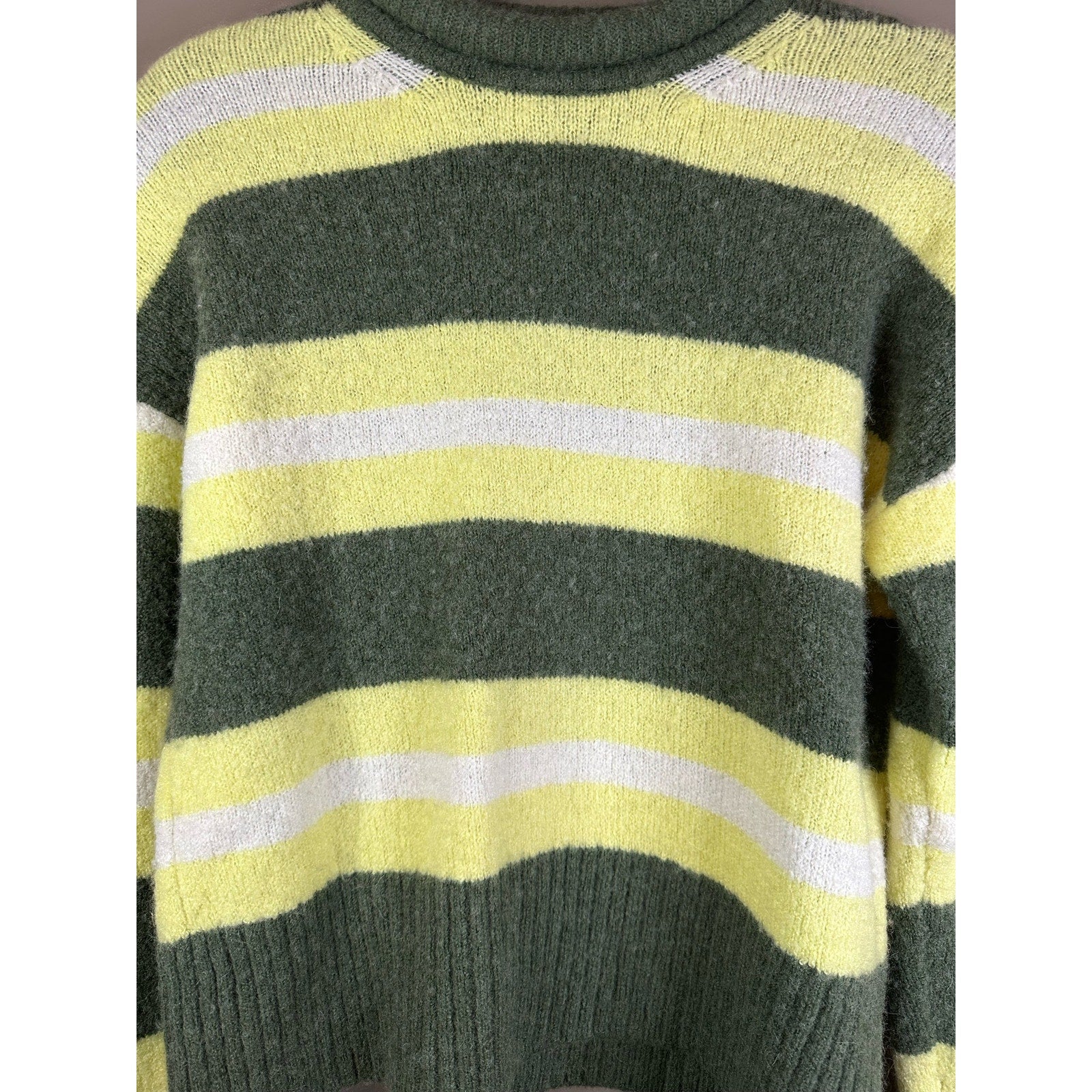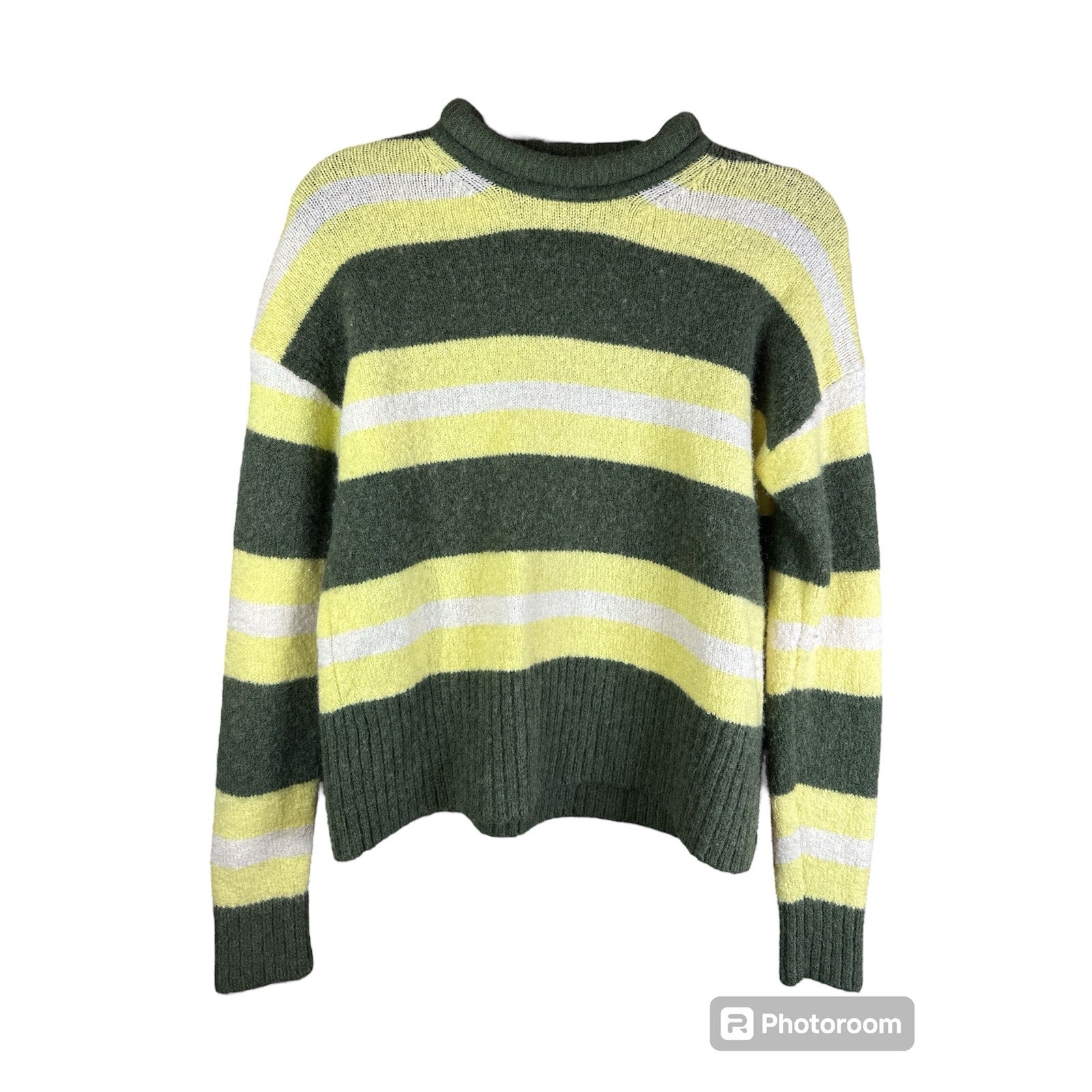 Madewell Neon Yellow Green Stripe Acrylic Wool Mock Neck Sweater Size Small