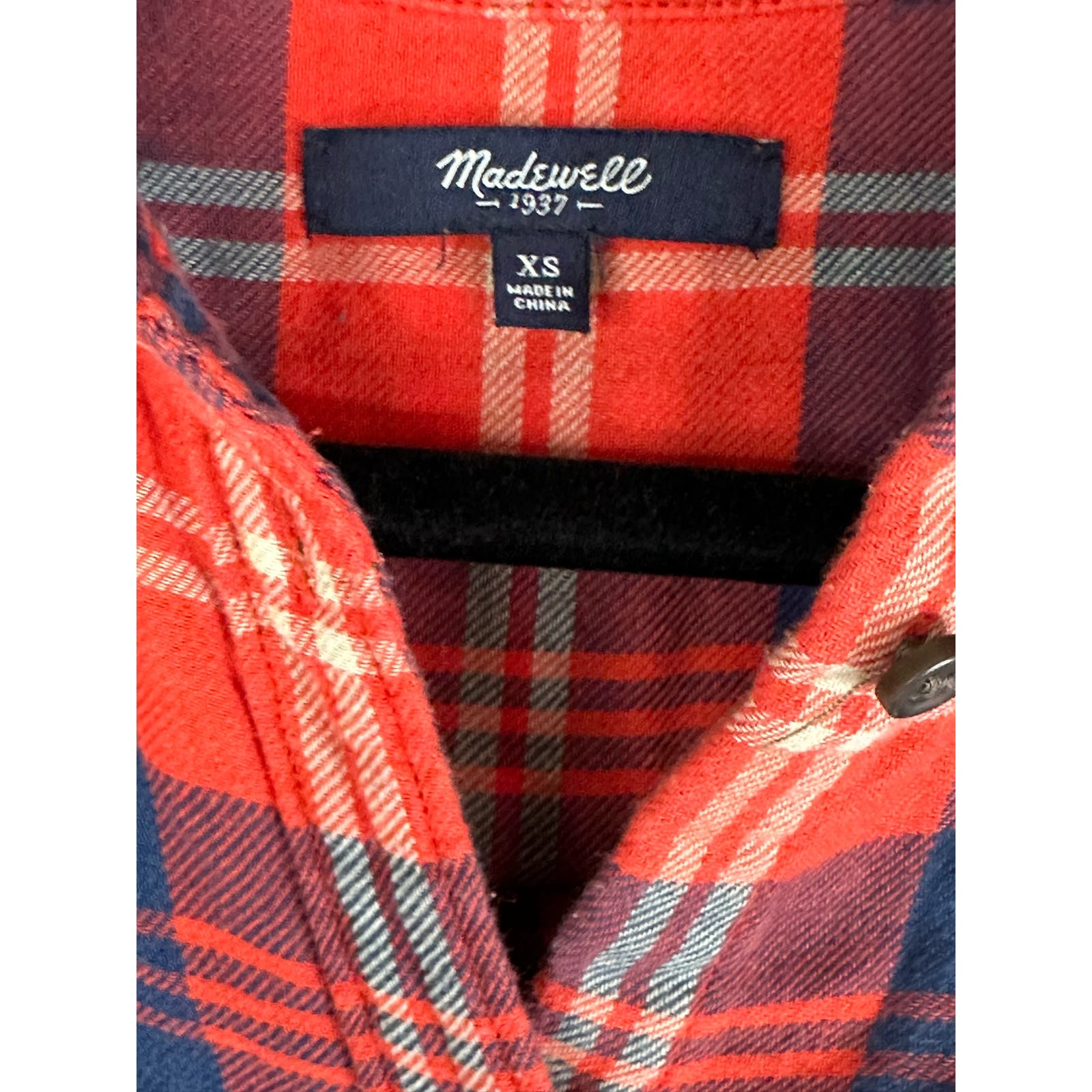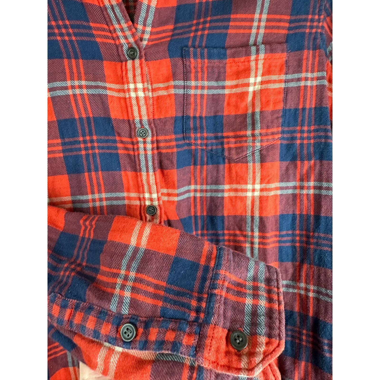 Madewell Orange Red Blue Long Sleeve Button Down Plaid Flannel Size XS
