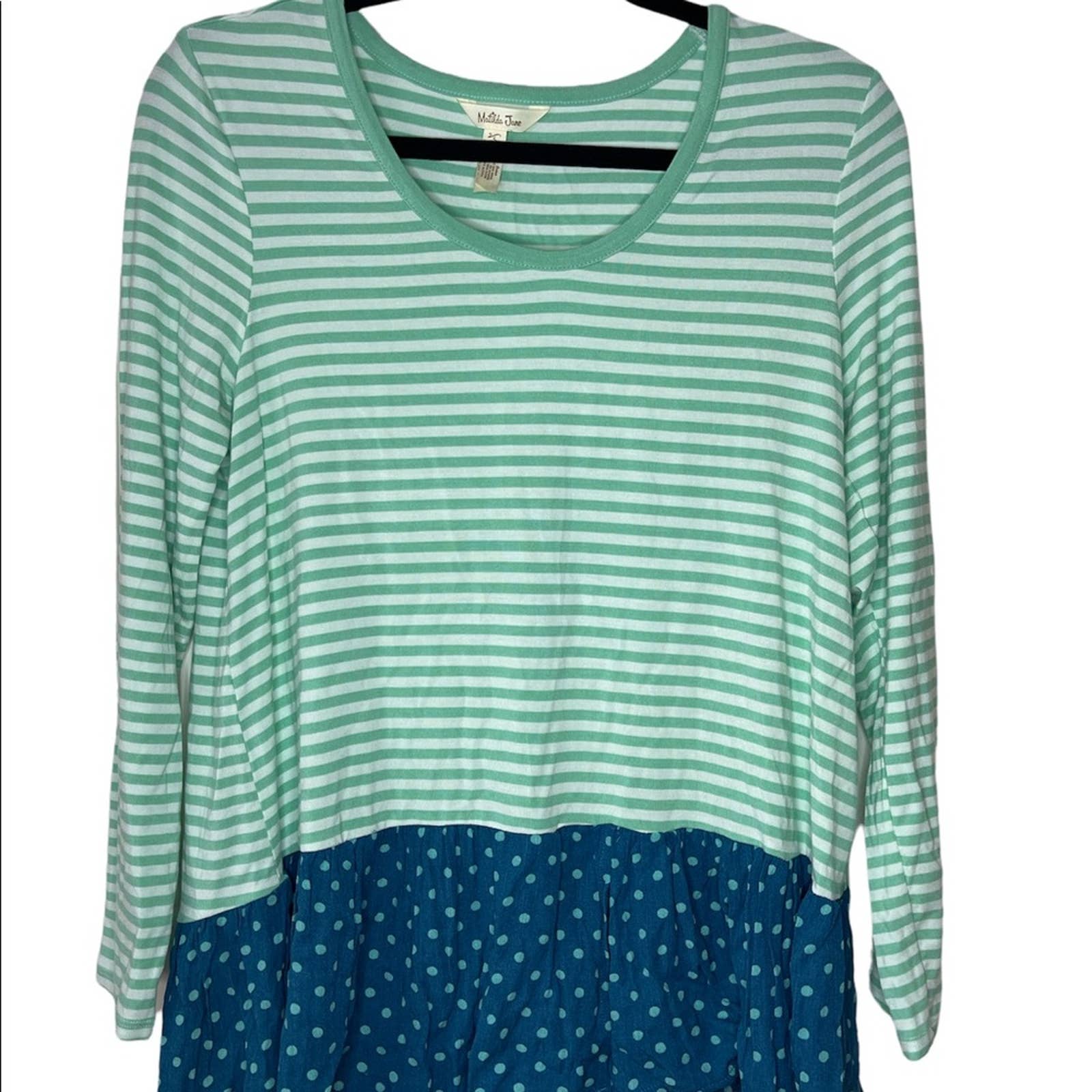Matilda Jane Long Sleeve Talk To Me Later Stripe Polka Dot Blouse Size Small