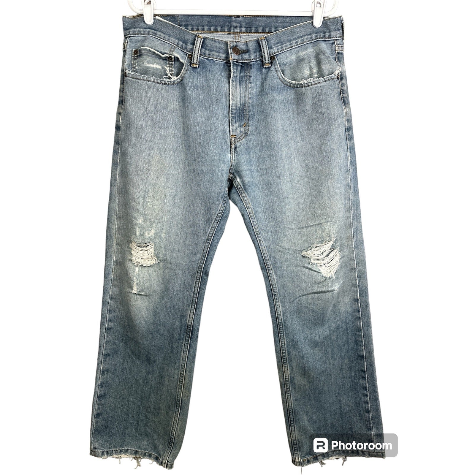 Men’s Levi’s 559 Light Wash Distressed Worn In Blue Jeans Denim Size 34X30