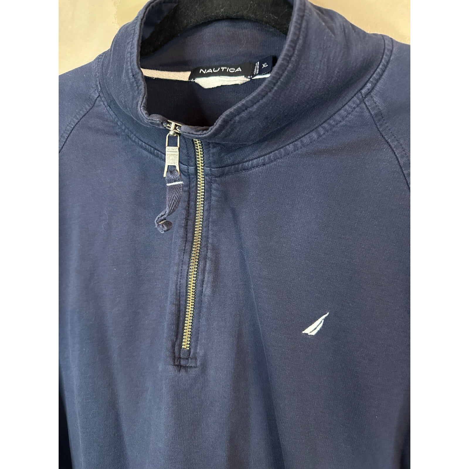Men’s Nautica Blue Long Sleeve Blue Quarter Zip Pullover Sweatshirt Size XL