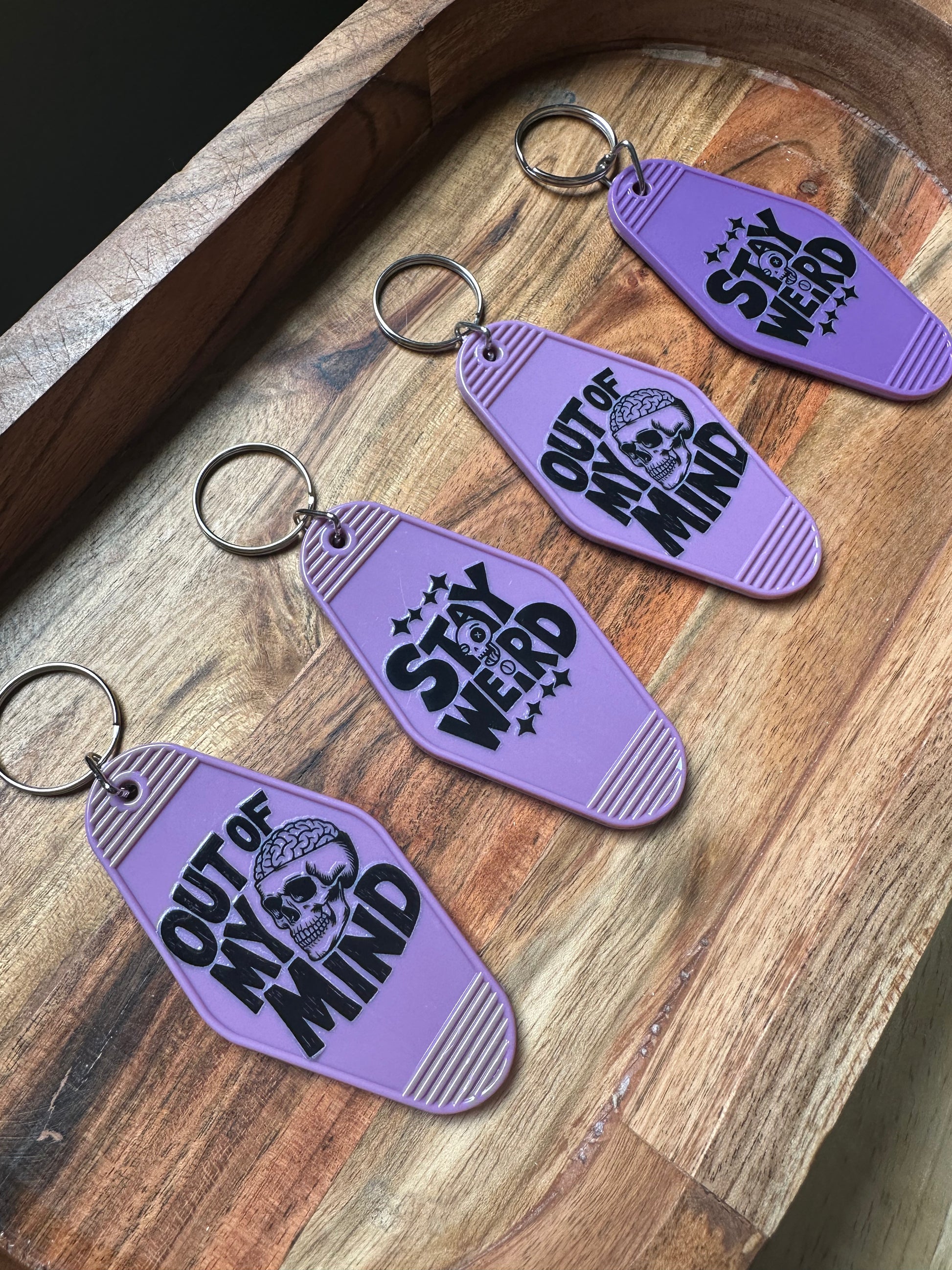 Motel Keychains- 'Stay Weird' Purple Skeleton Keychain