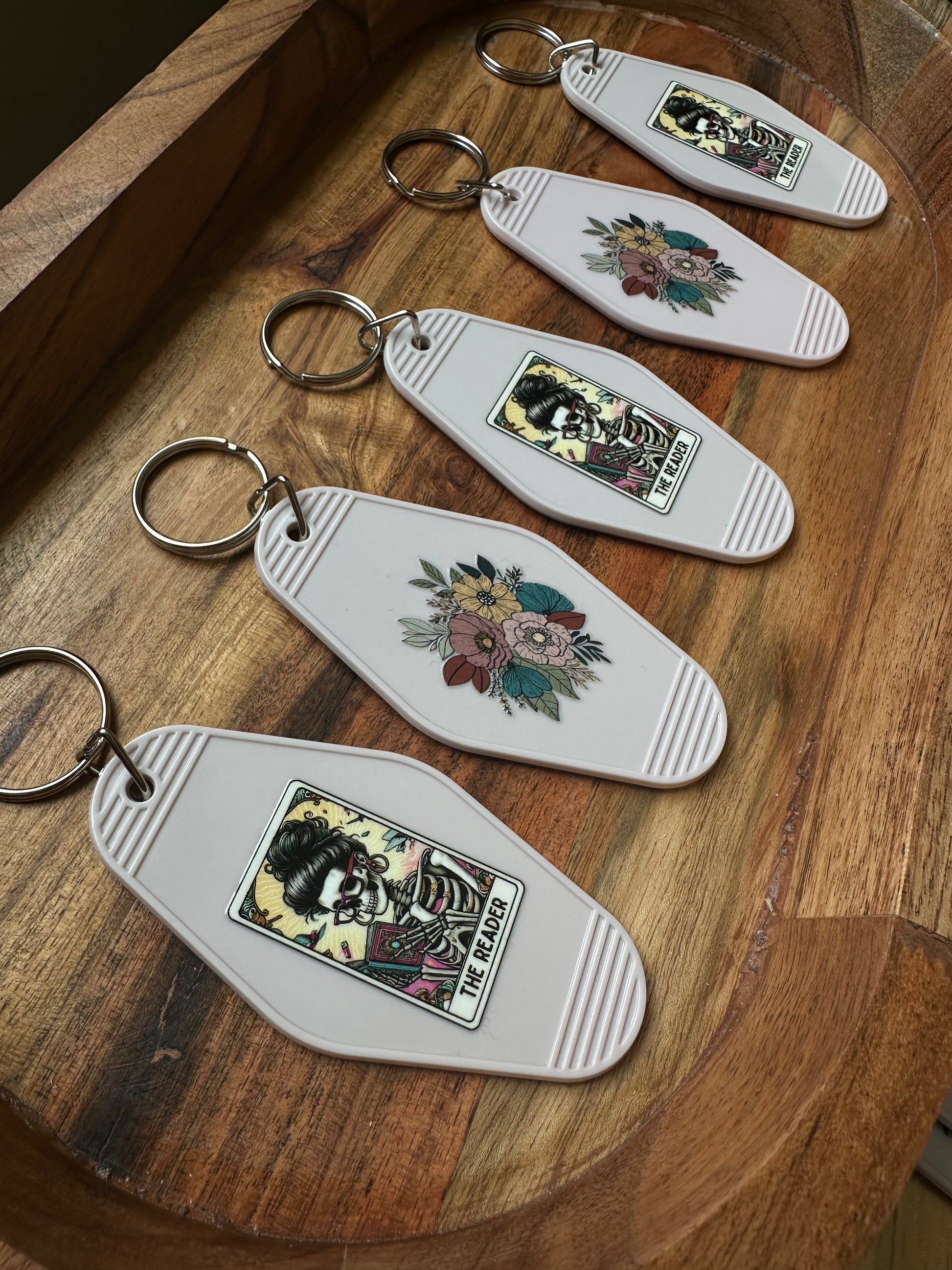 Motel Keychains- 'Deadly Destinies' Tarot Card Skeleton Keychains