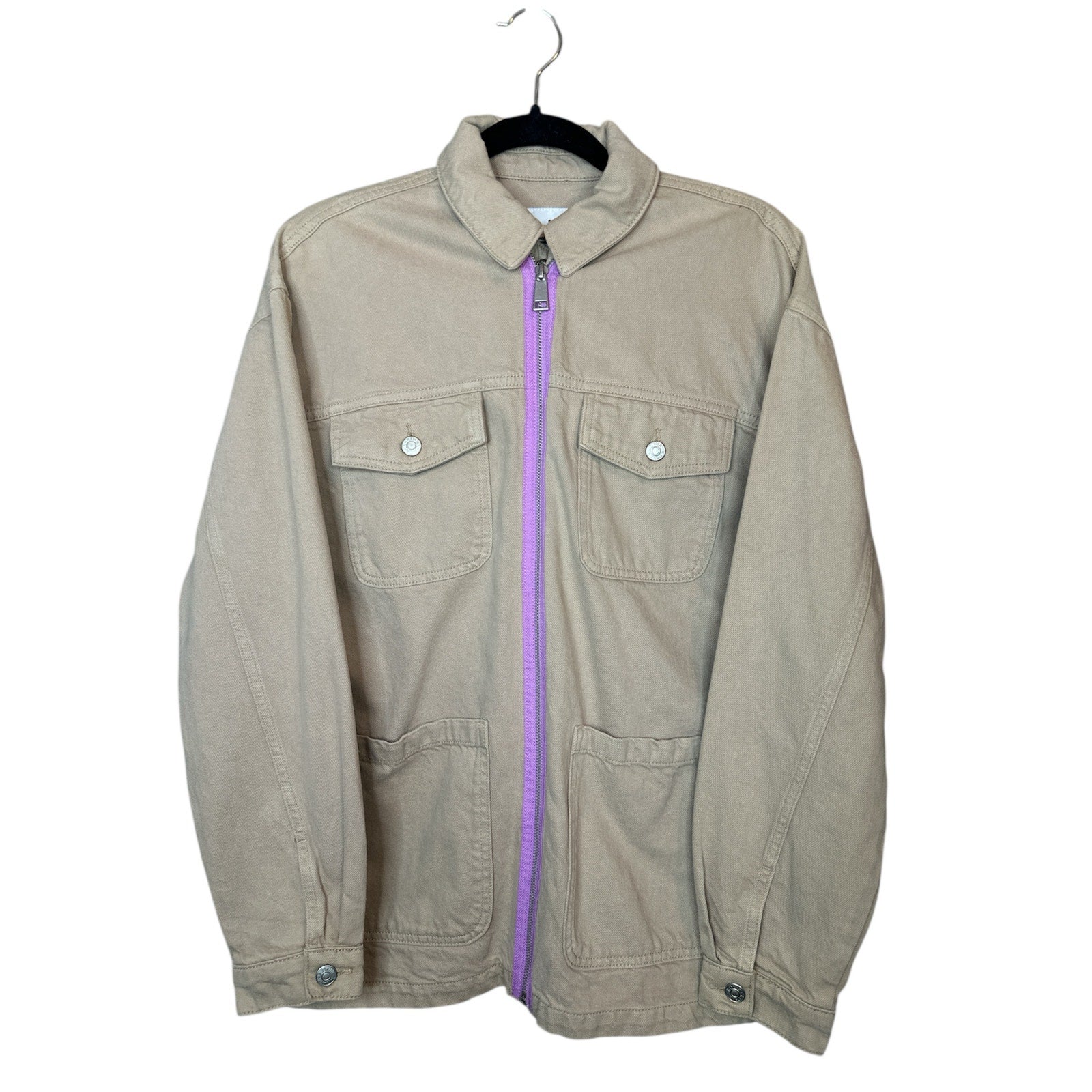 NA-KD Women's Oversized Khaki Long Sleeve Lilac Stripe Detail Jacket Size 34