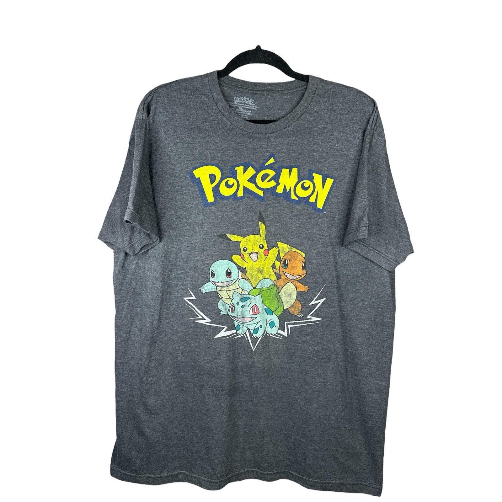 Pokémon Grey Graphic T-Shirt Short Sleeves Pikachu Charmander Size XL