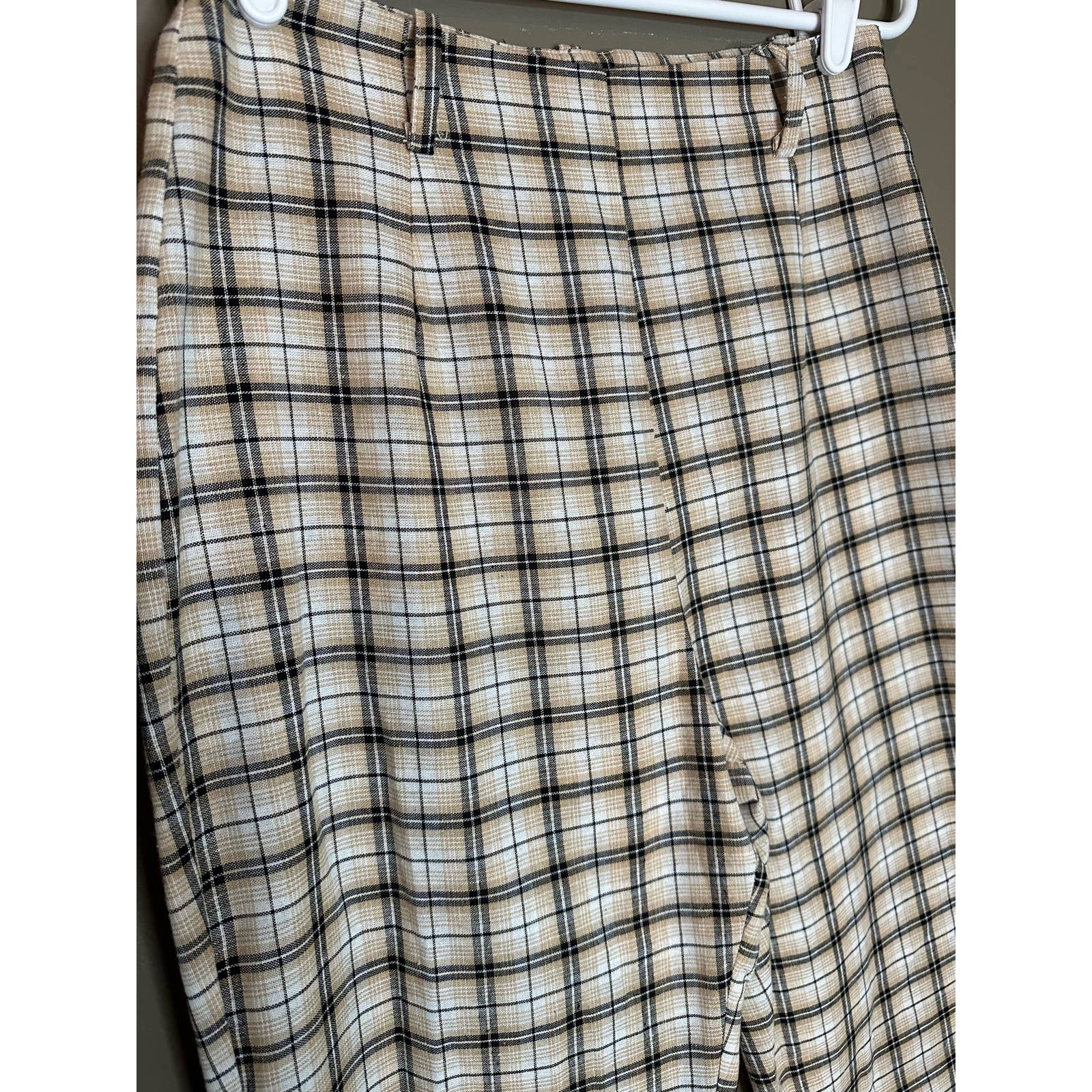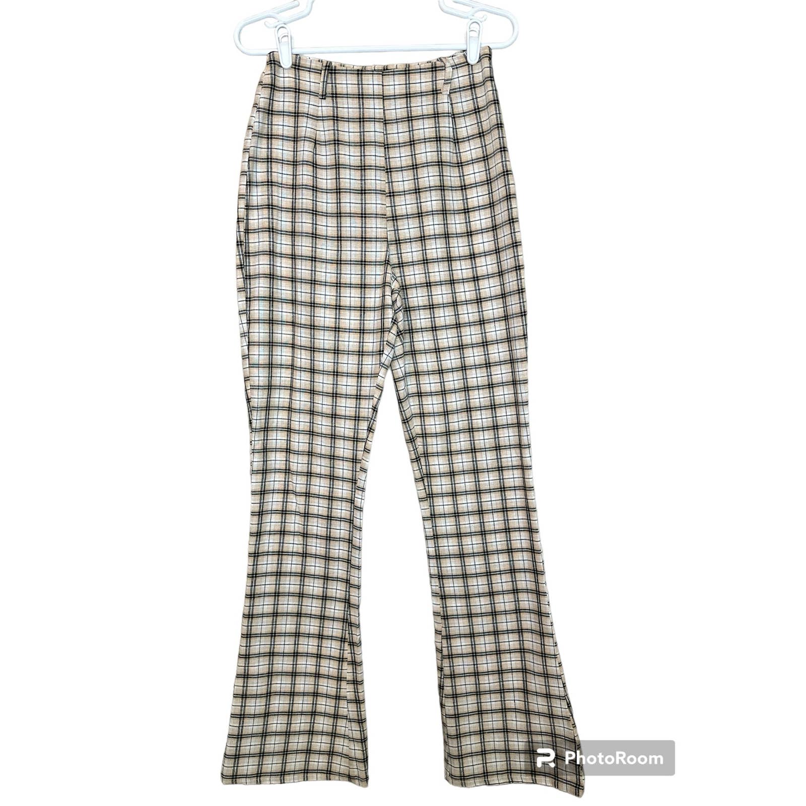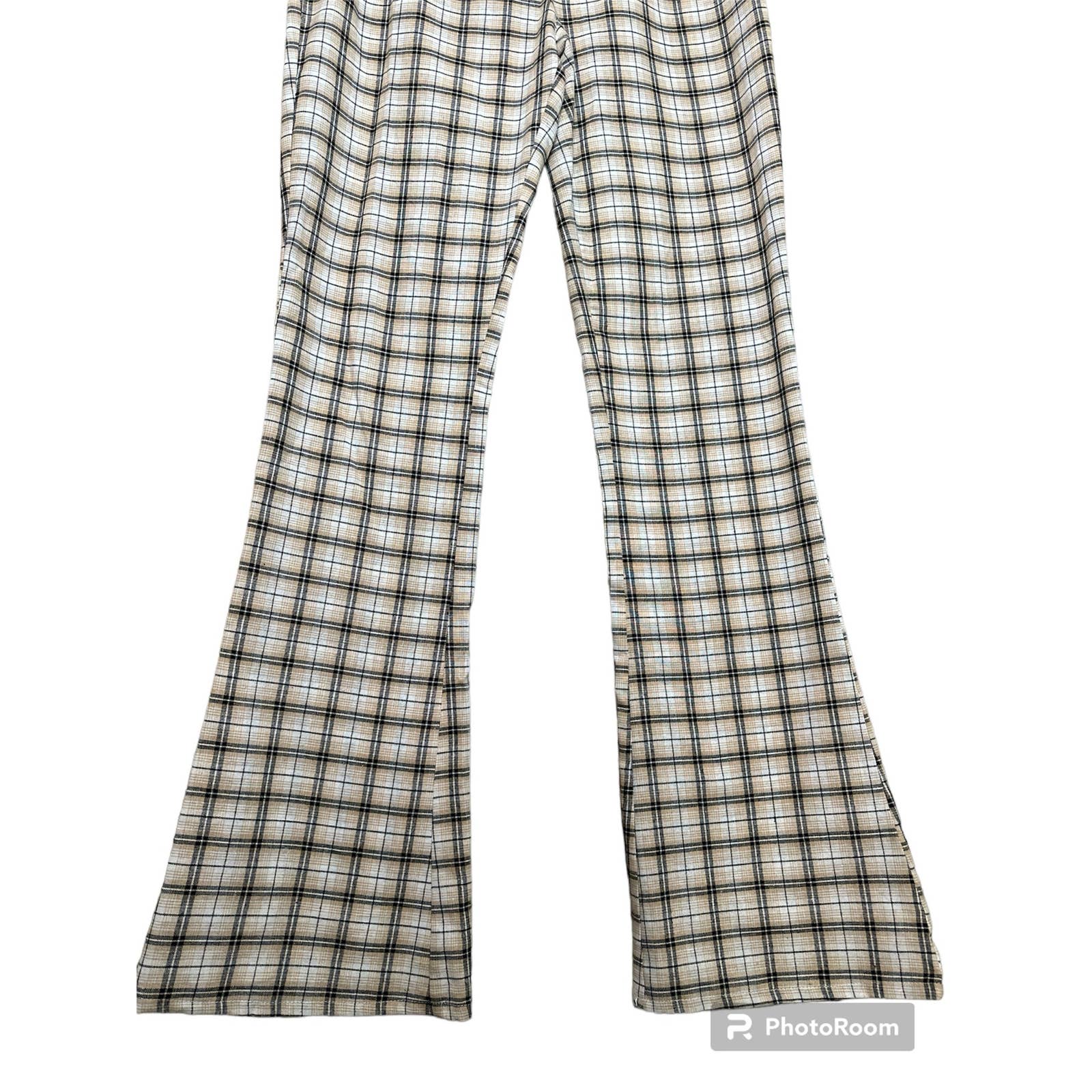 Prettylittlething Beige Plaid Side Zip Up Flare Dress Pants Size 8