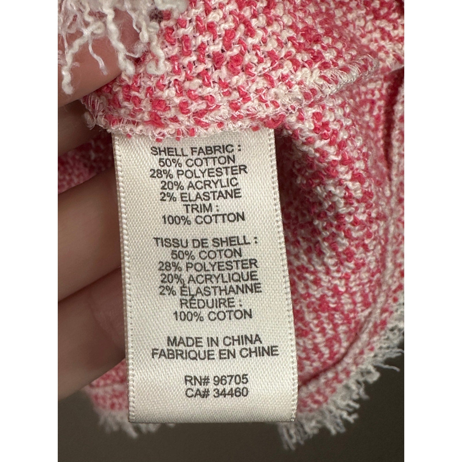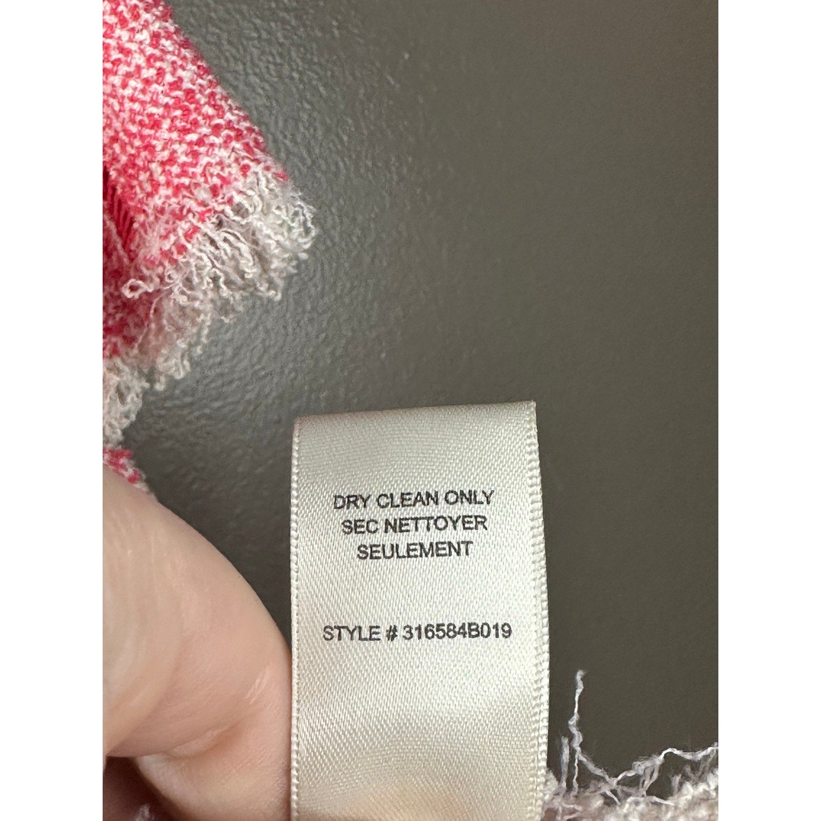 Rebecca Taylor Pink Coral Tweed Short Sleeve Fringe Raw Hem Crop Blouse Size 2