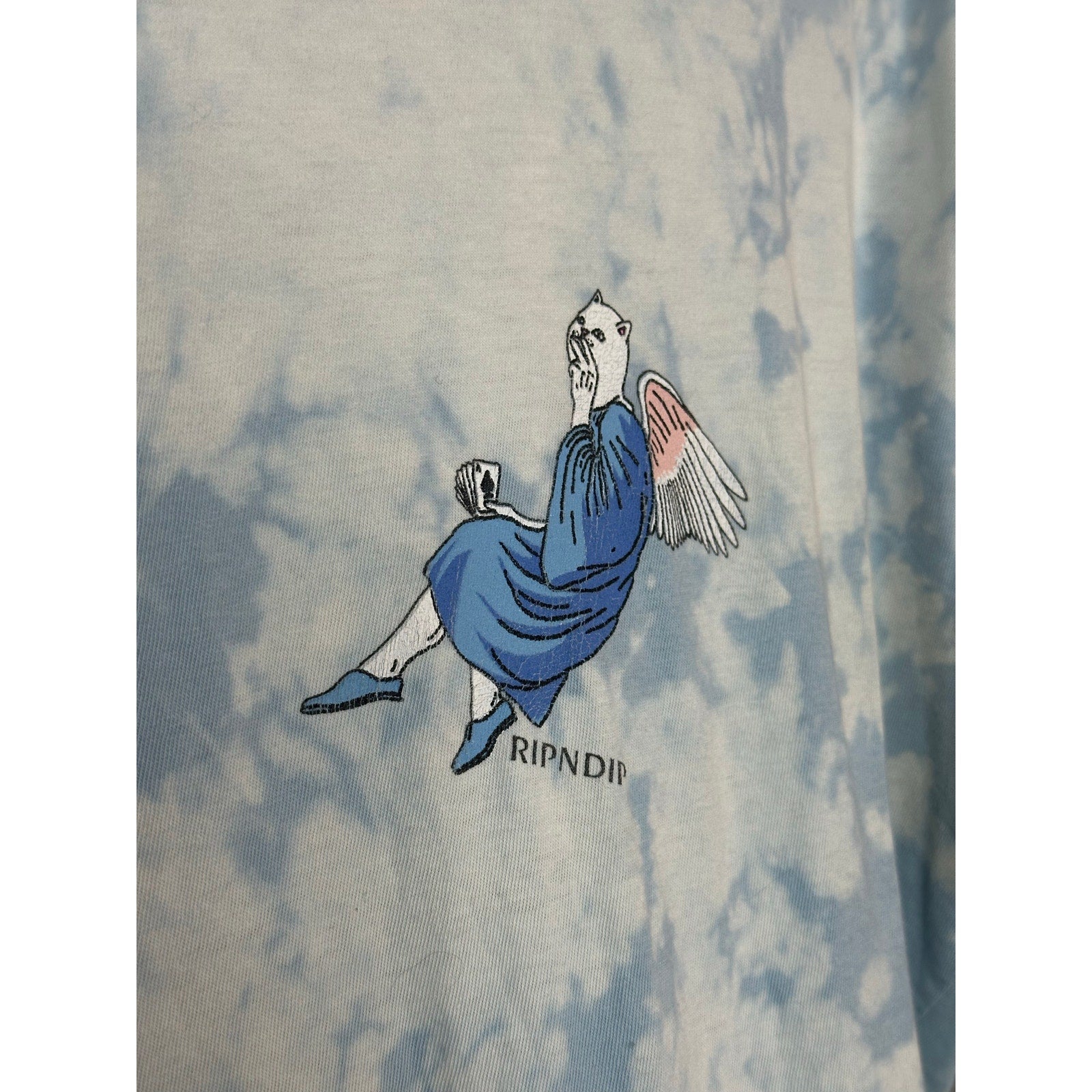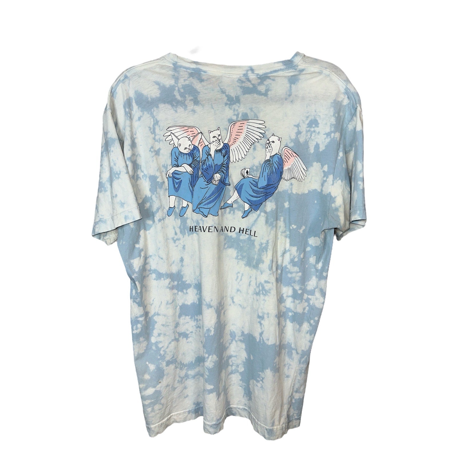Rip N Dip Blue White Tie Dye Short Sleeve Graphic Cat Angel T-Shirt Size Large
