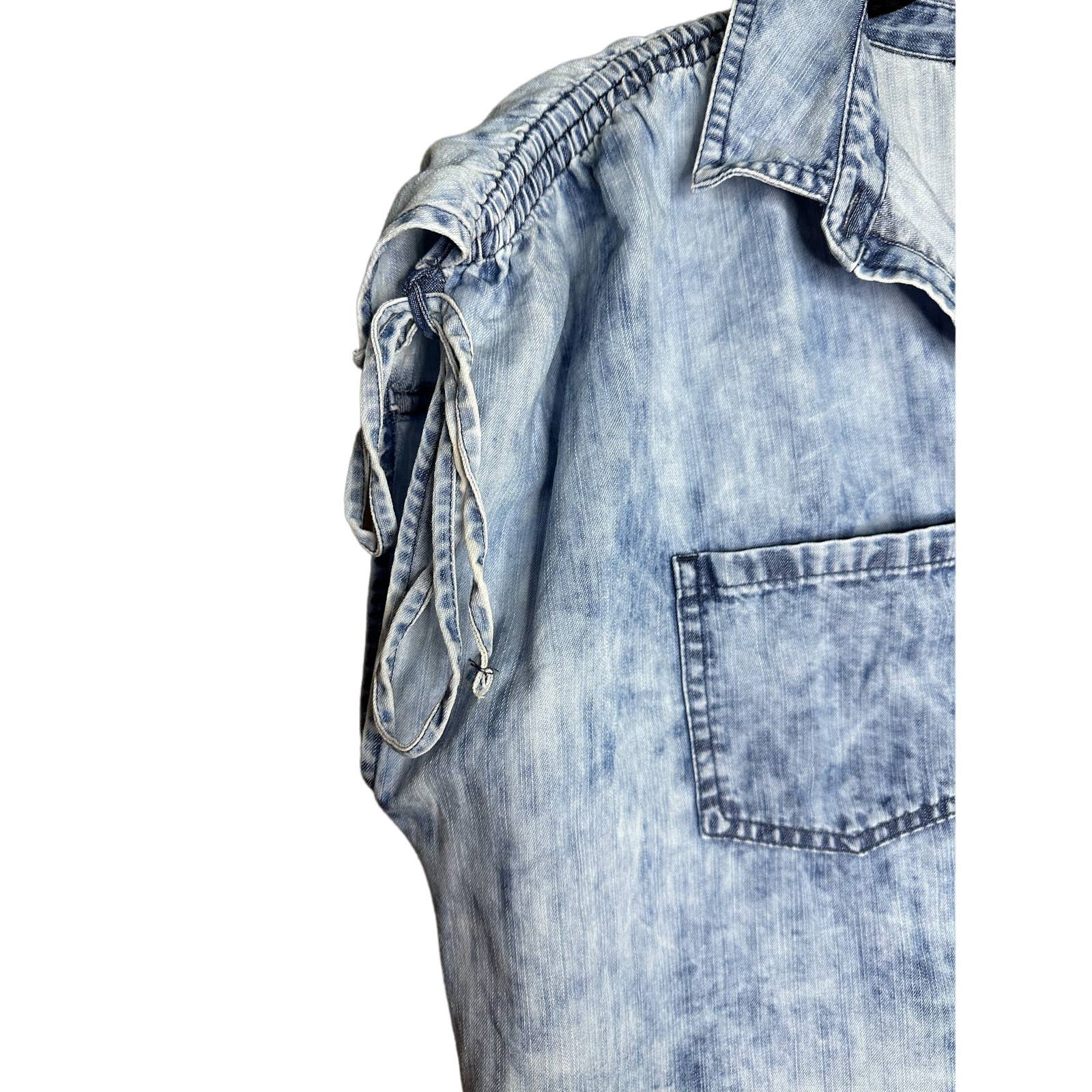 Rock & republic Blue Jean Short Sleeve Button Down Blouse Size M