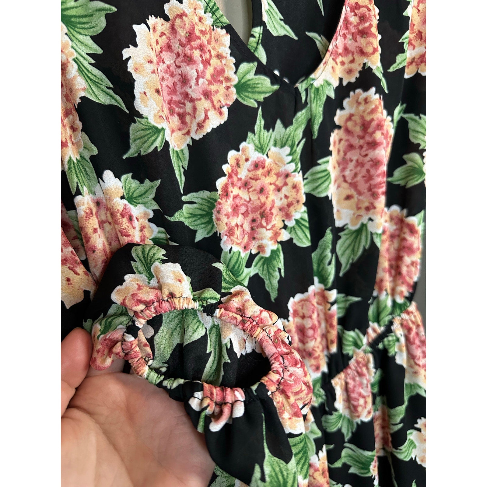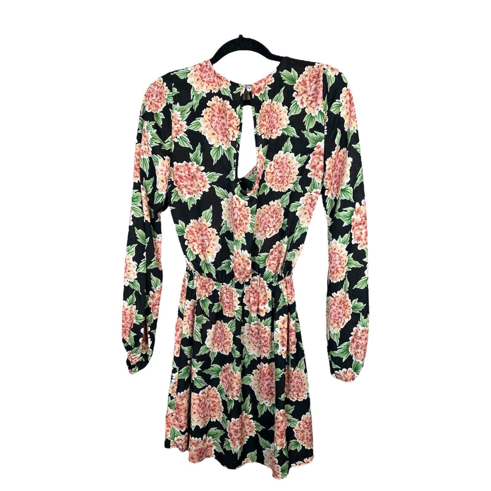 Show Me Your Mumu Long Sleeve Pink Black Floral Print Rainey Romper Size S