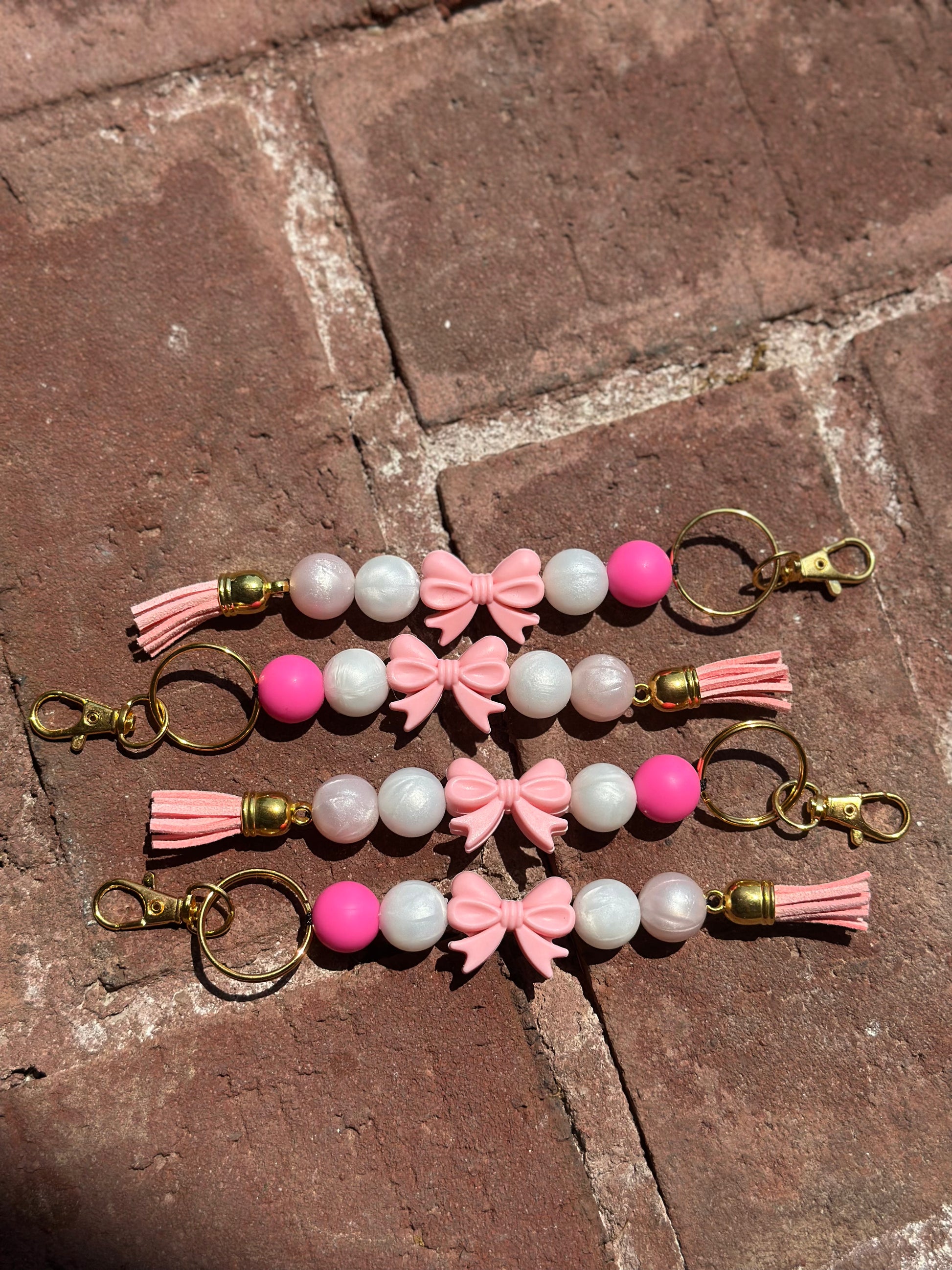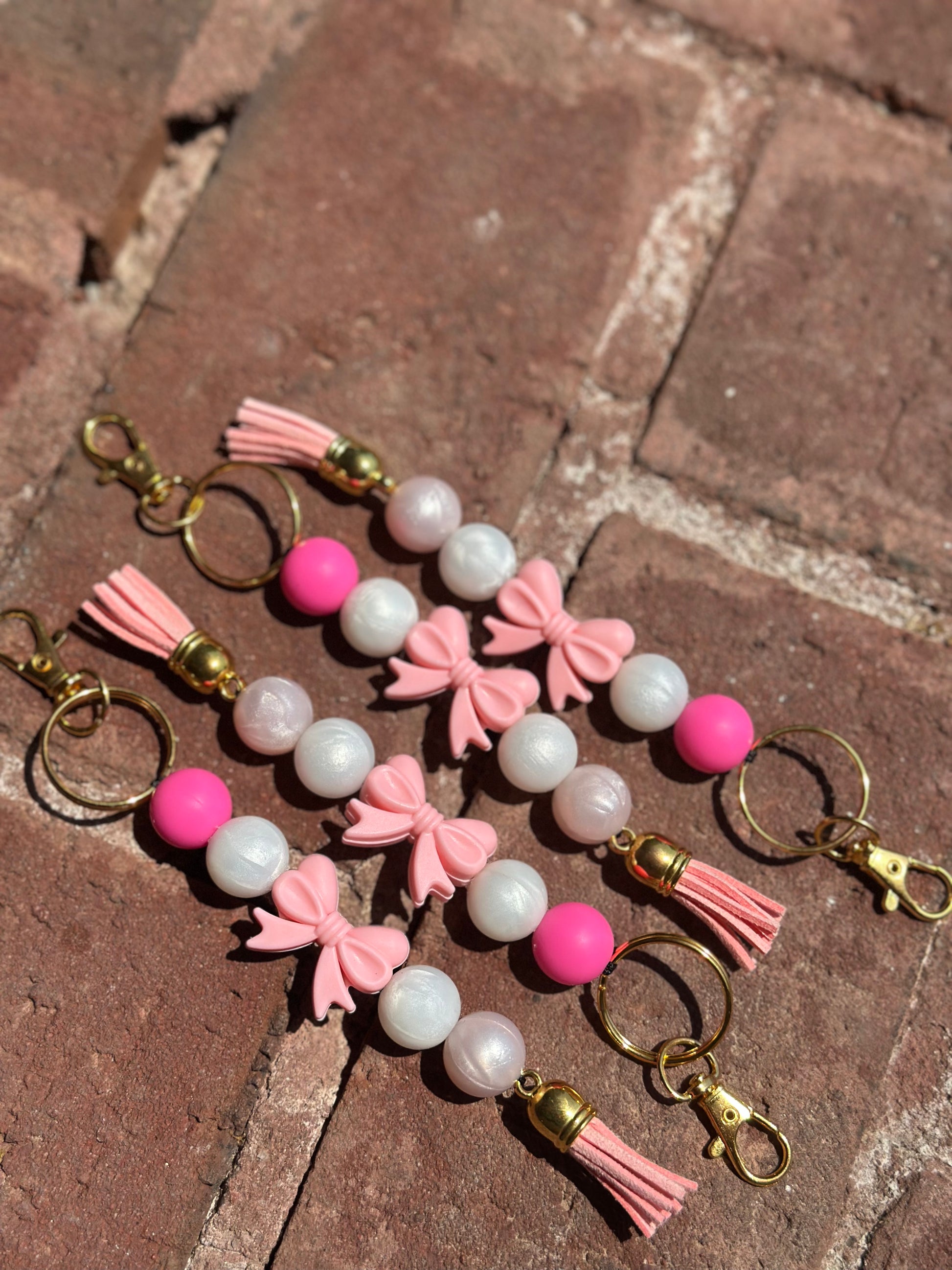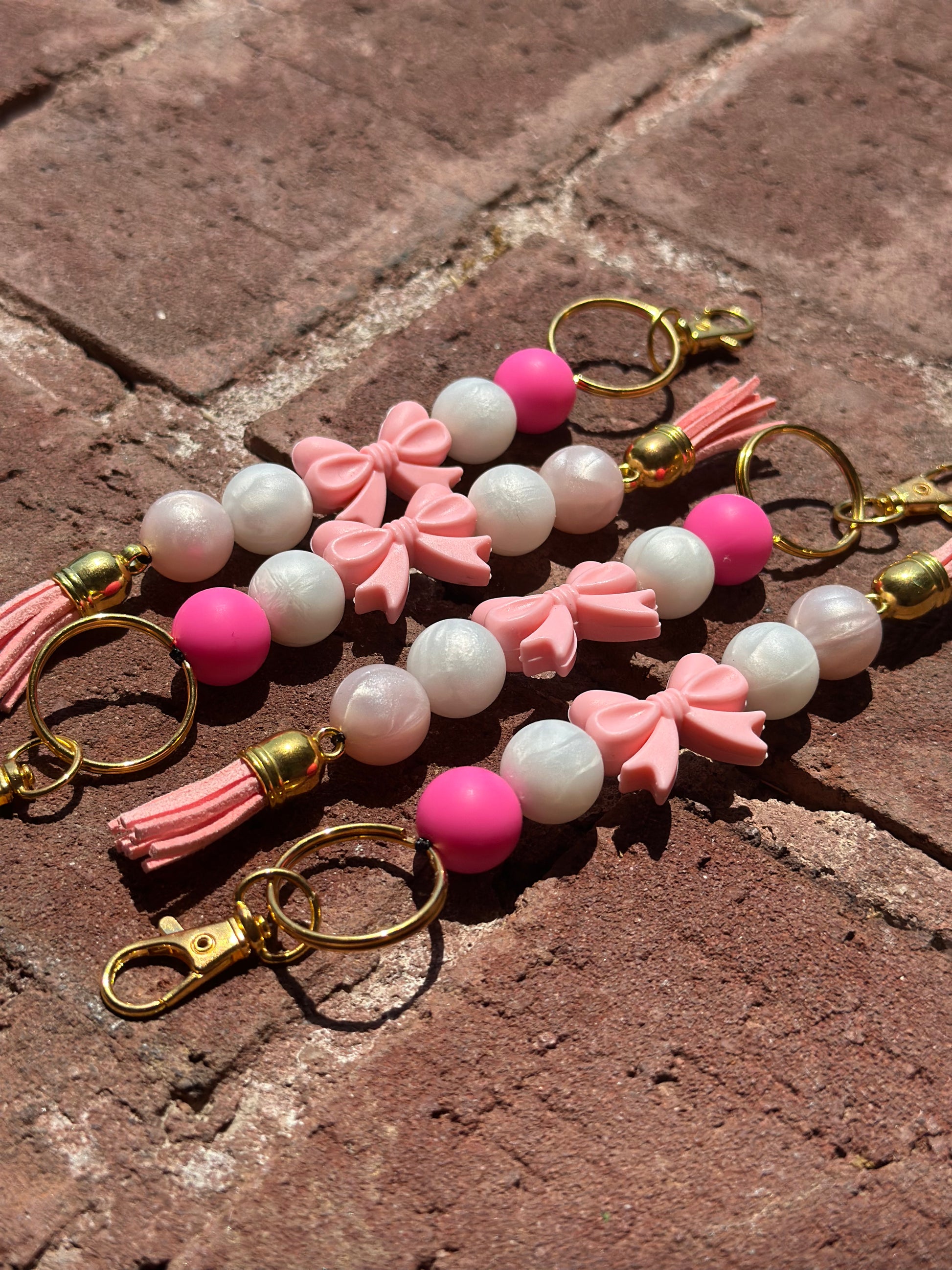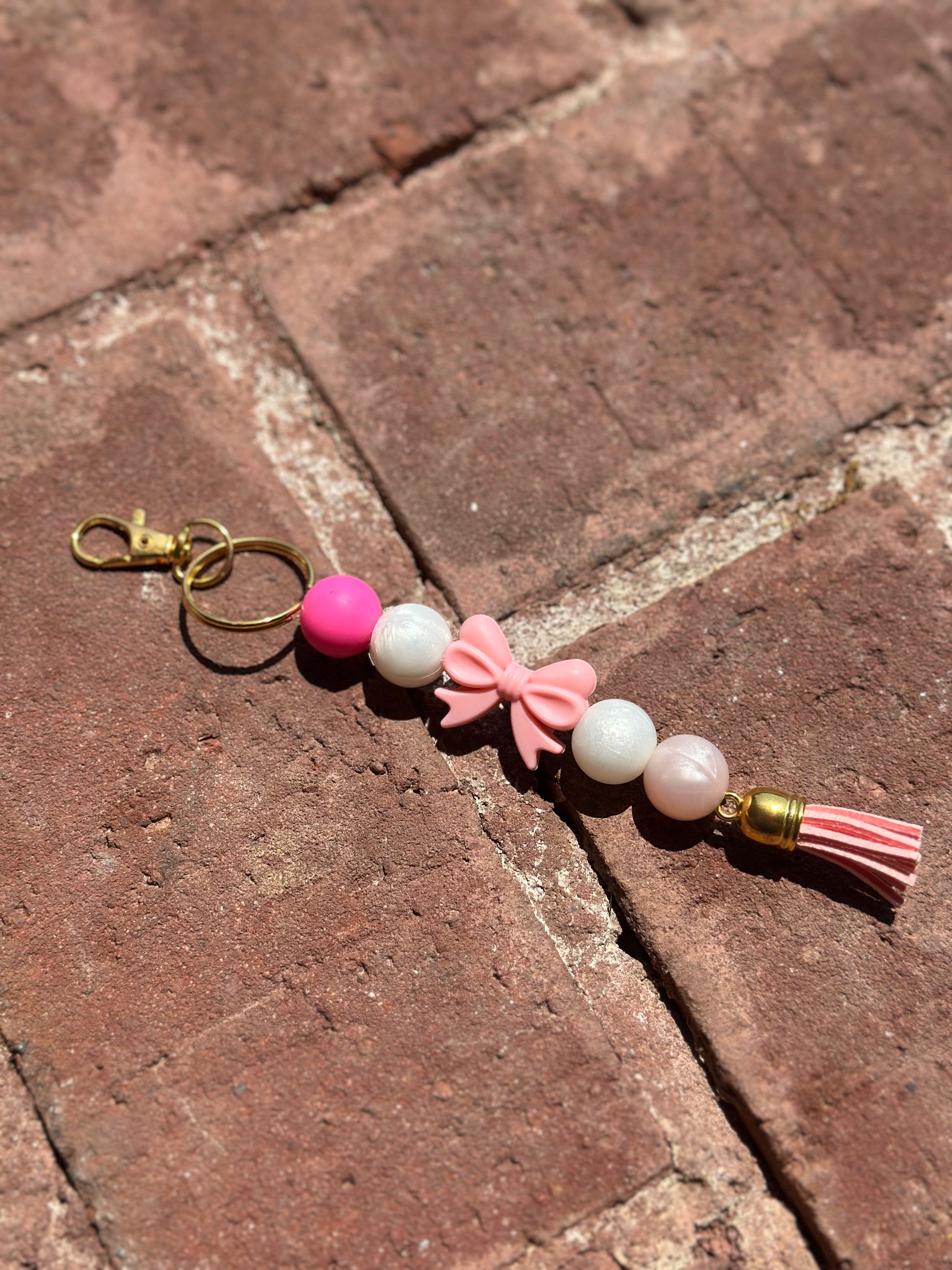 Silicone Beaded Keychain | Pink Bow Preppy Gold Hardware Standalone Keychain