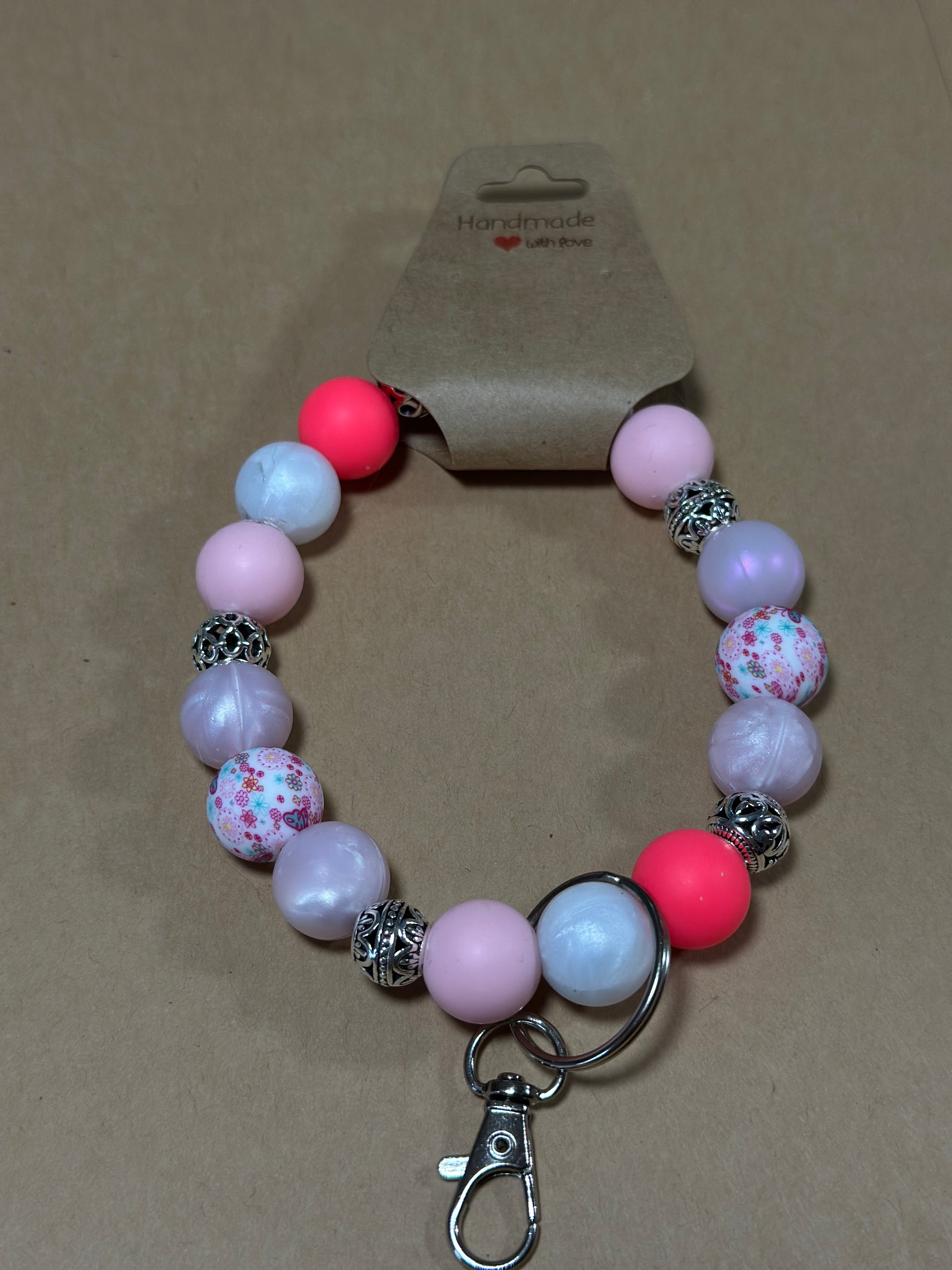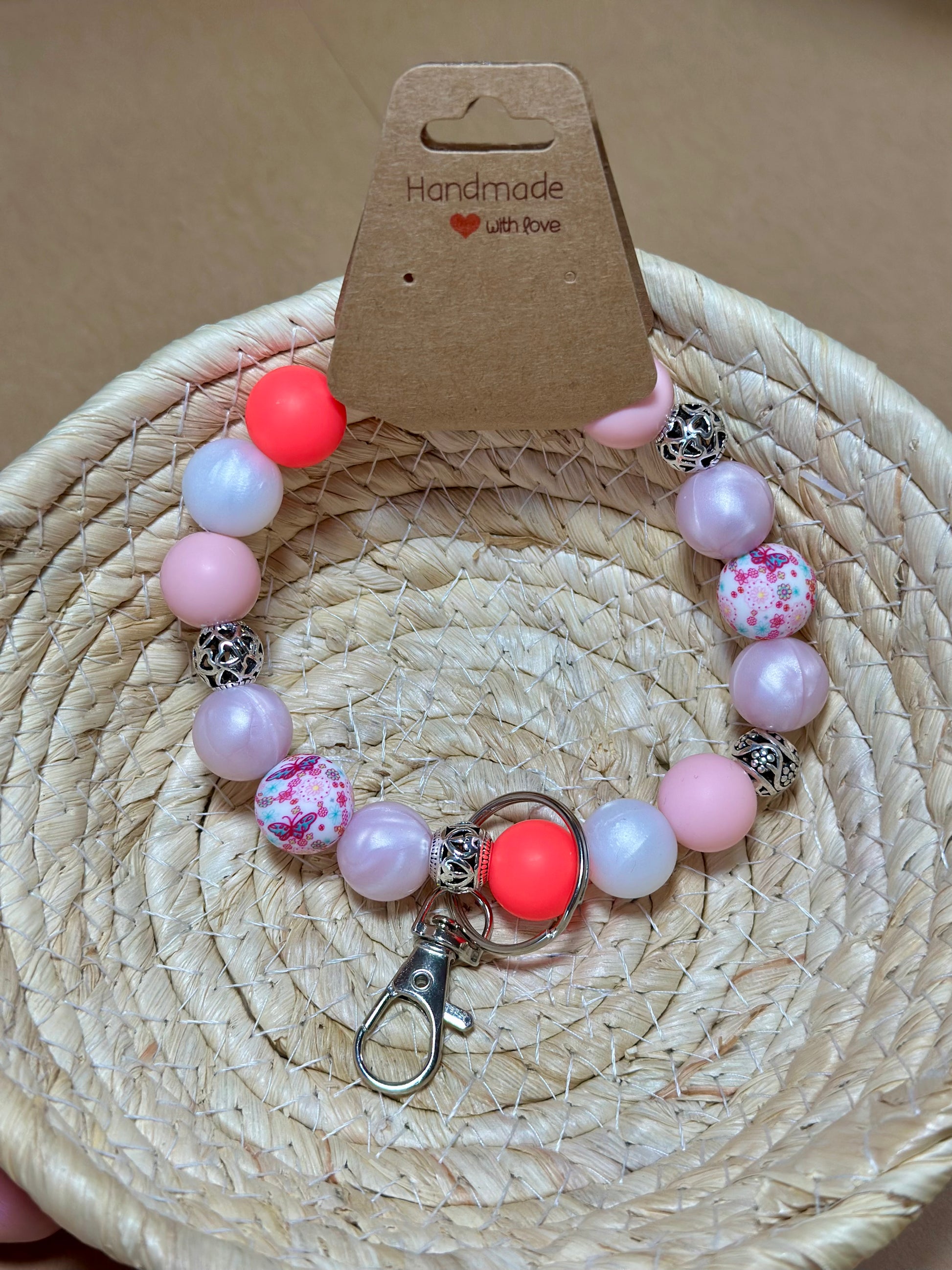 Silicone Beaded Wristlet Keychain- 'Butterfly Kisses- Pink & Pearl