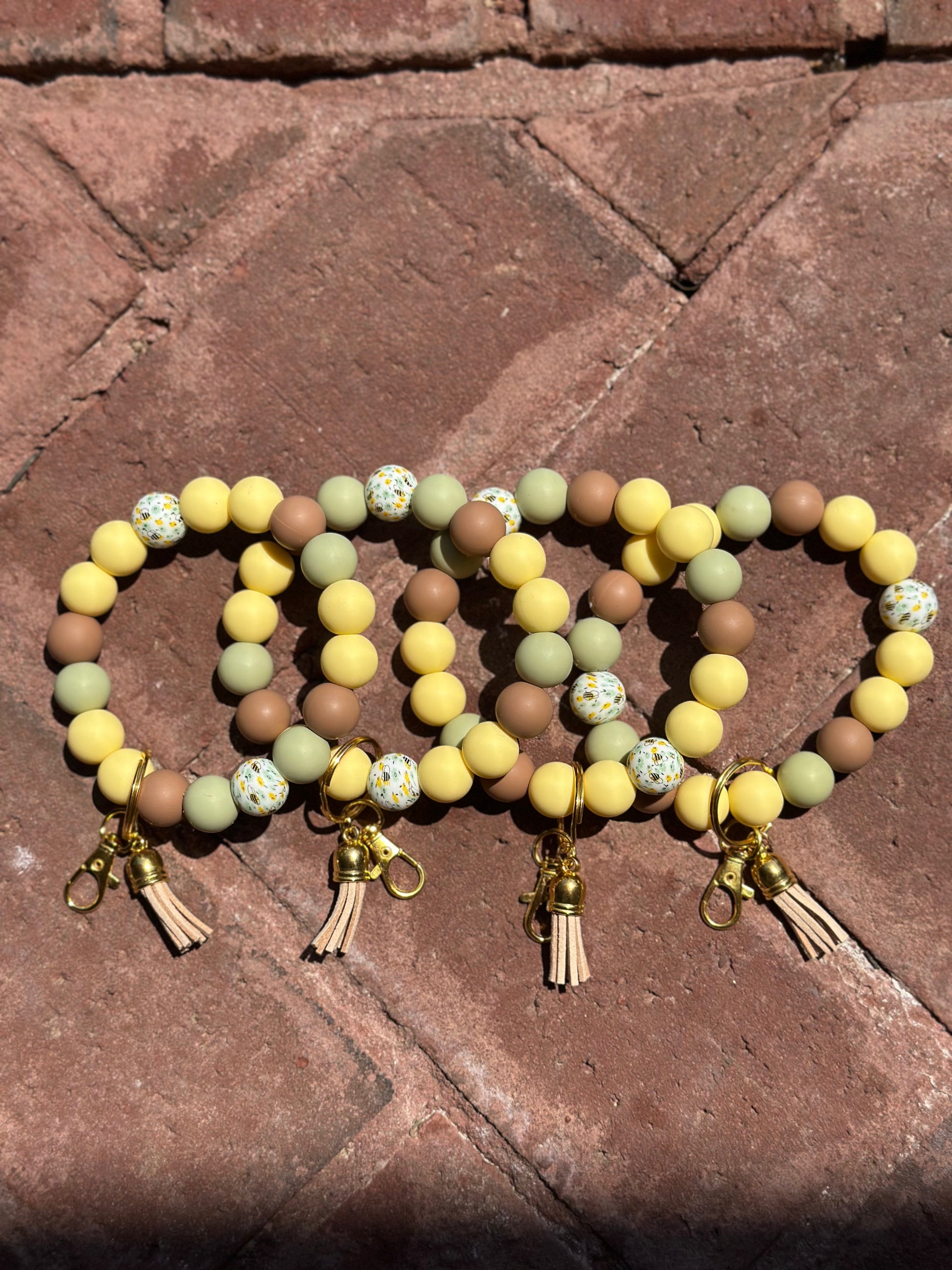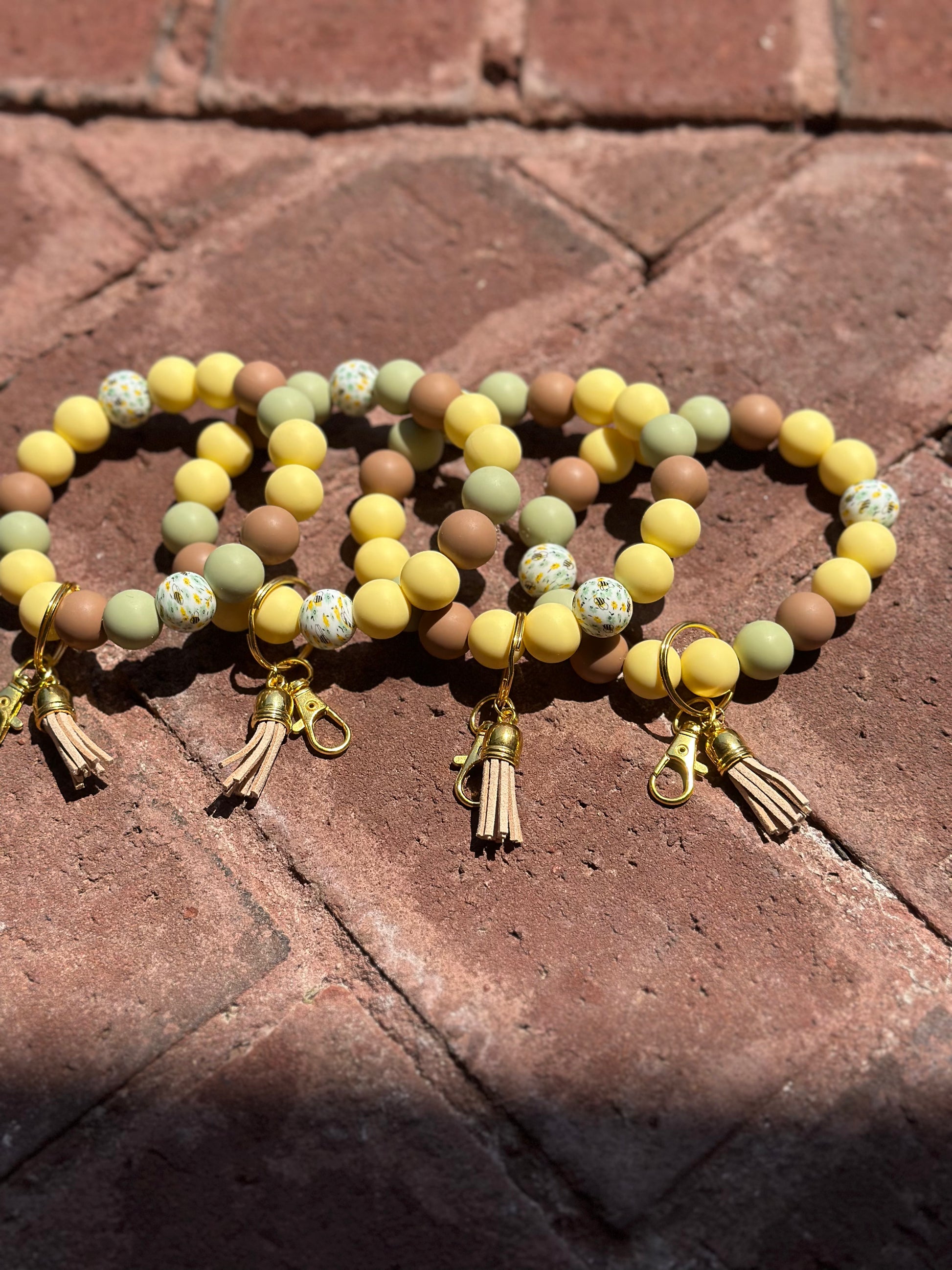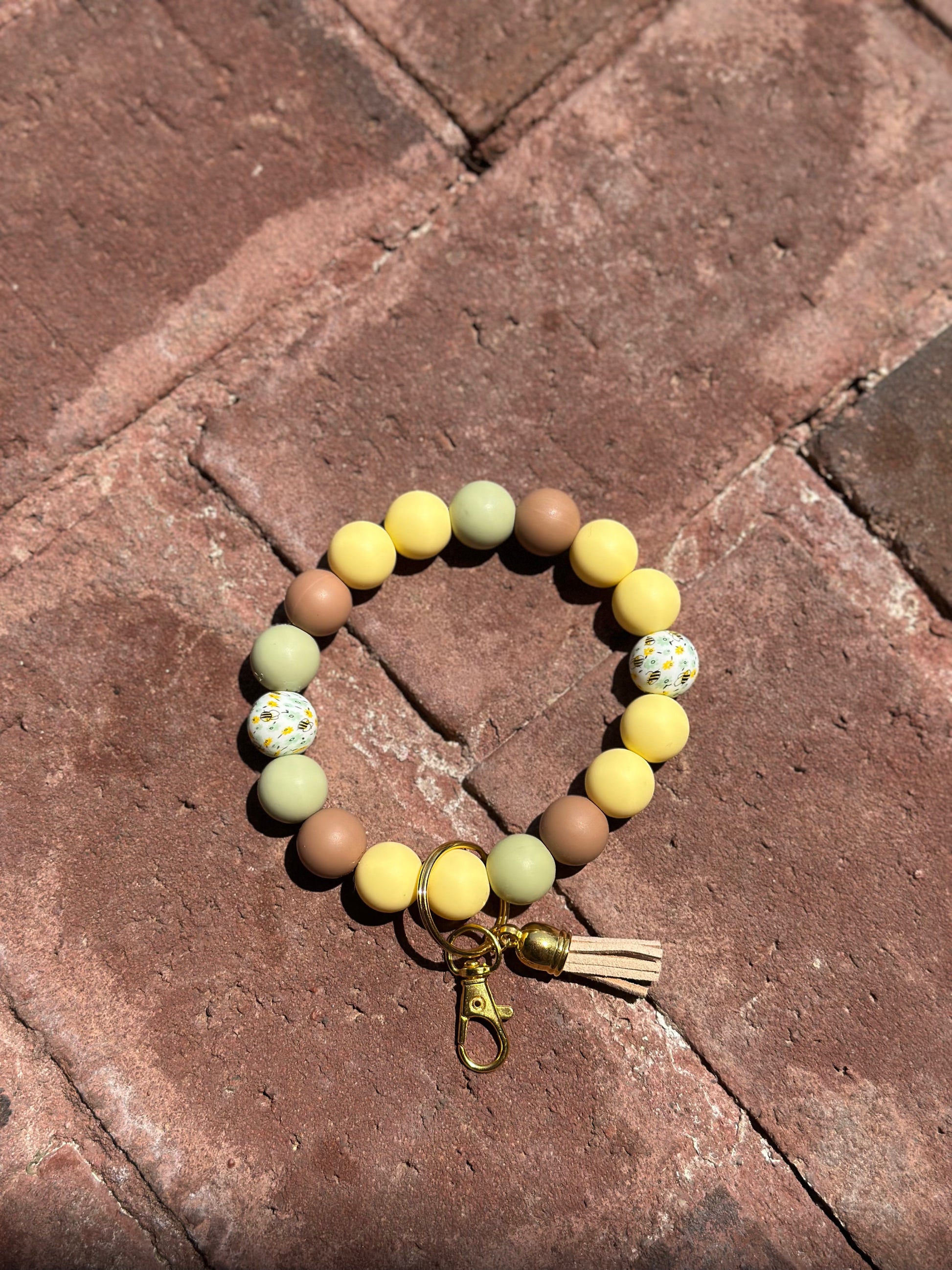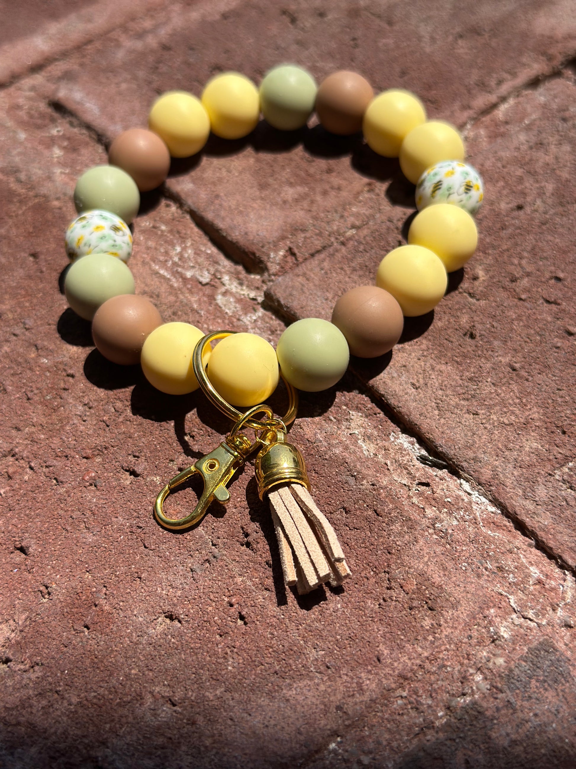 Silicone Beaded Wristlet Keychain| Honey Bee Yellow, Green, Brown Wristlet
