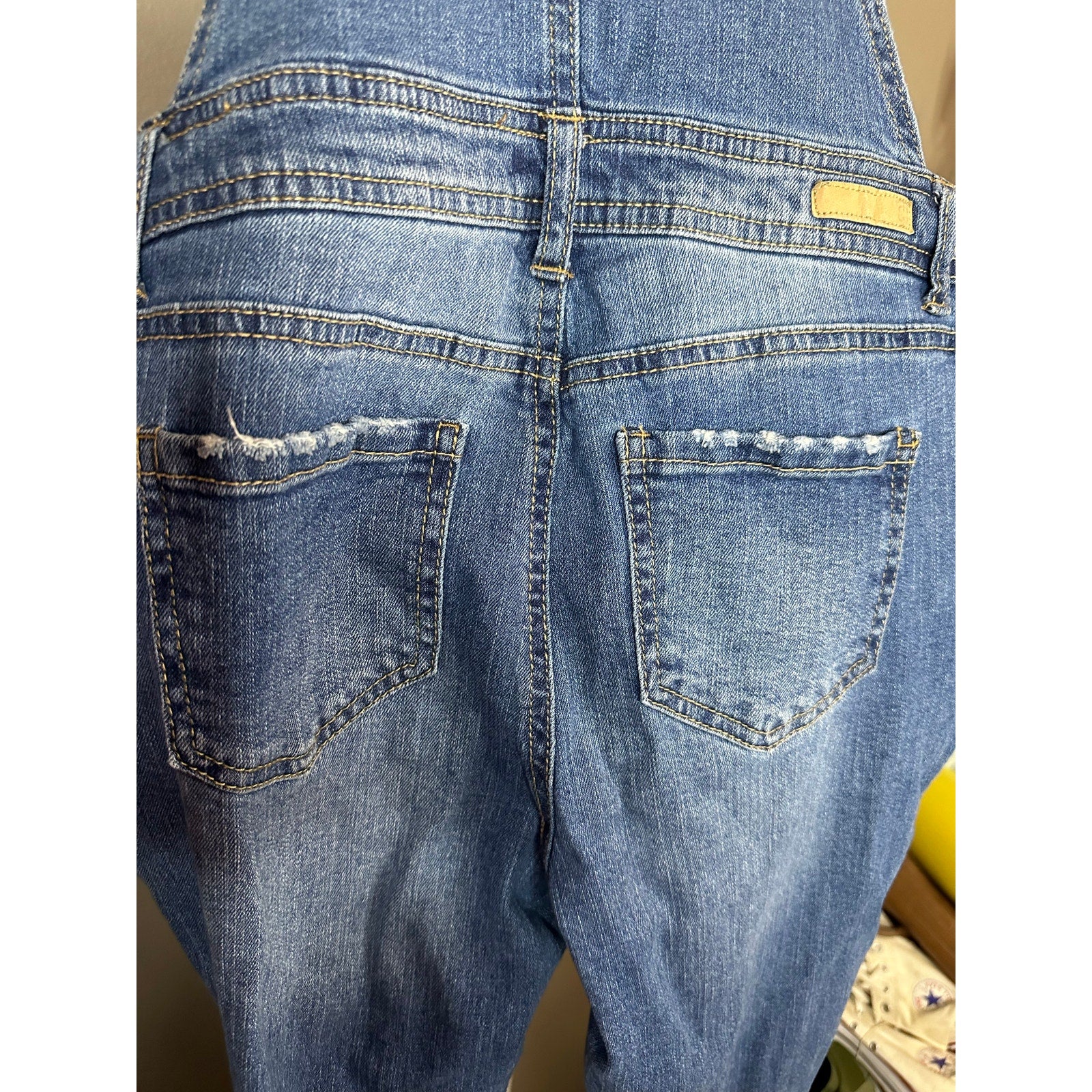 True Craft Blue Jean Denim Distressed Long Pants Adjustable Overall Bibs Size 3