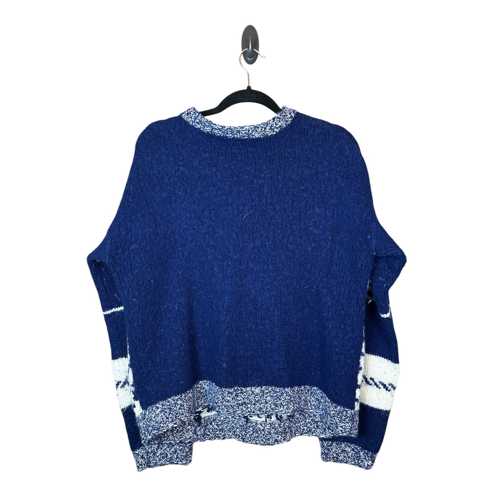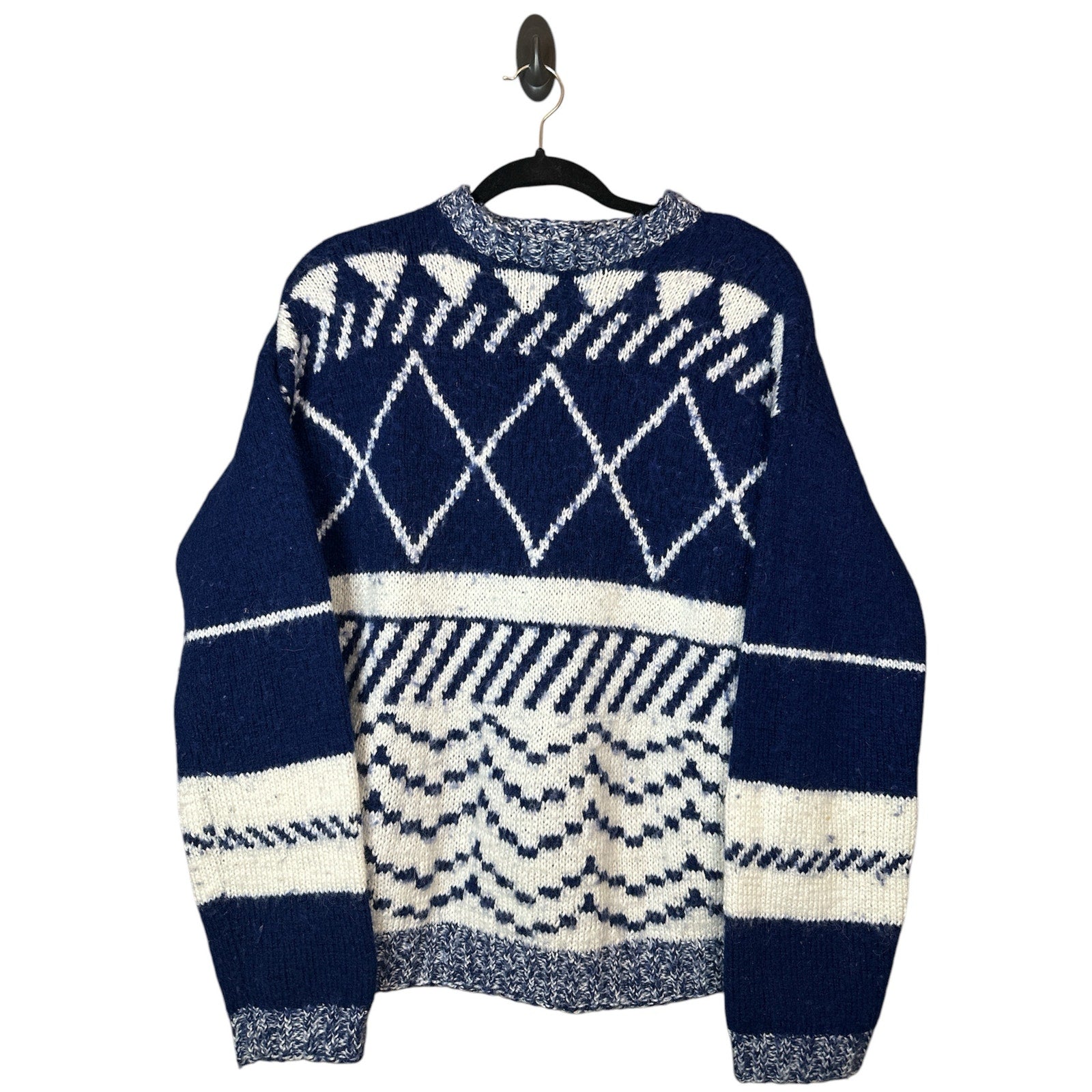Vintage Handmade Blue Thick Knit Long Sleeve Patterned Pullover Sweater Size XL?