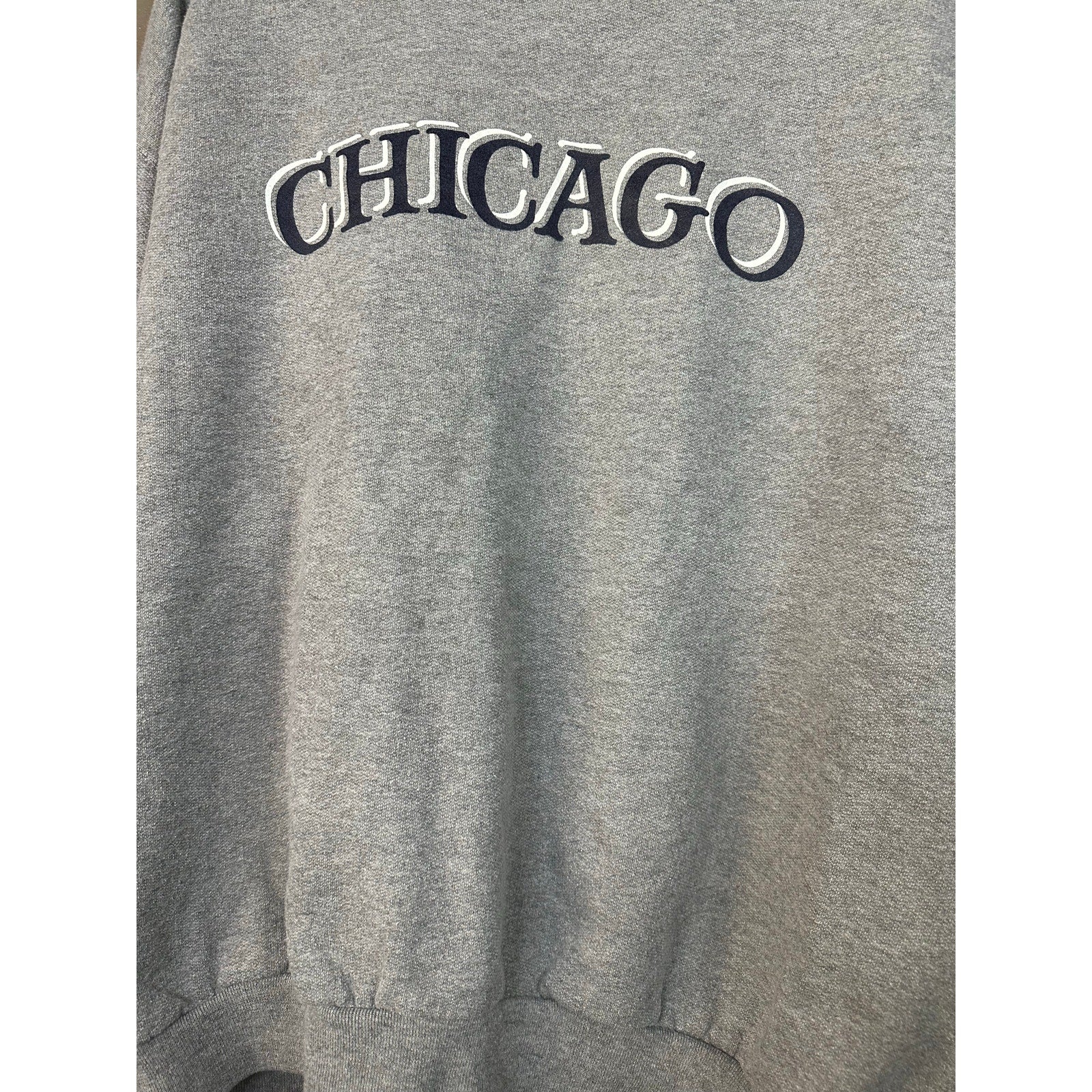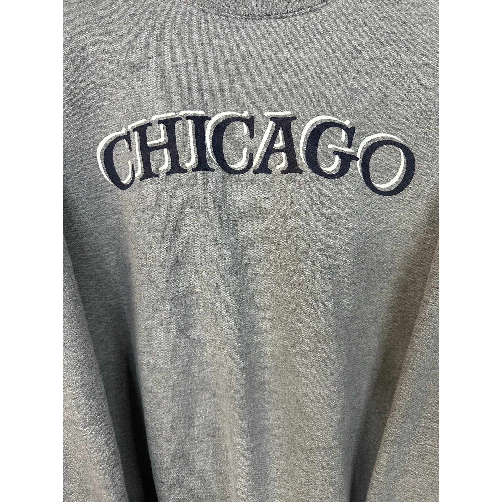 Vintage Jerzees Grey Blue Graphic ‘Chicago’ Long Sleeves Sweatshirt Size XL