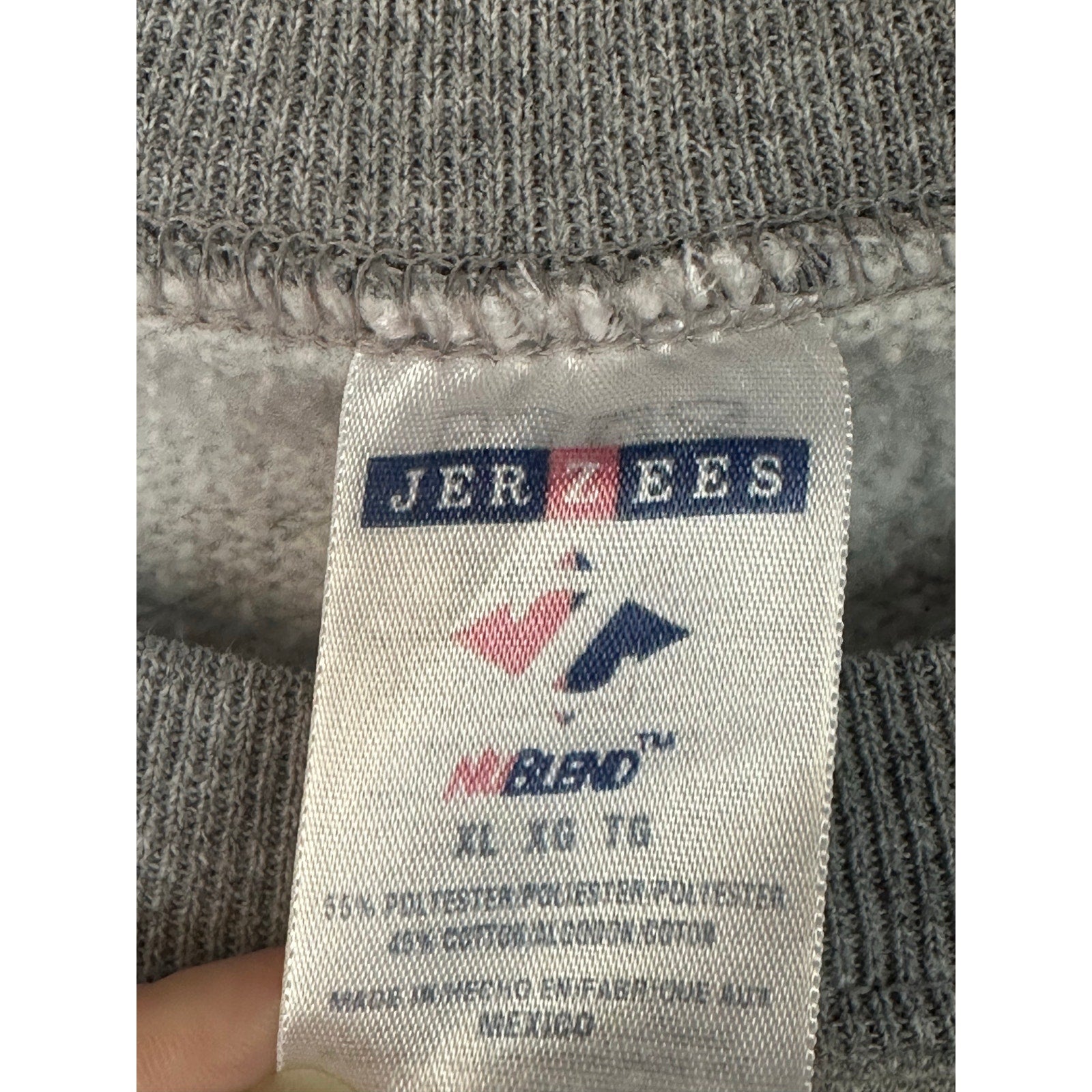 Experience the comfort and style of this classic Vintage Jerzees sweatshirt! Made from soft and durable fabric, this sweatshirt features a timeless grey and blue Chicago graphic and long sleeves to keep you warm. Perfect for casual wear or layering, this sweatshirt is a must-have for any fan of the Windy City. Upgrade your wardrobe with this XL sweatshirt today!