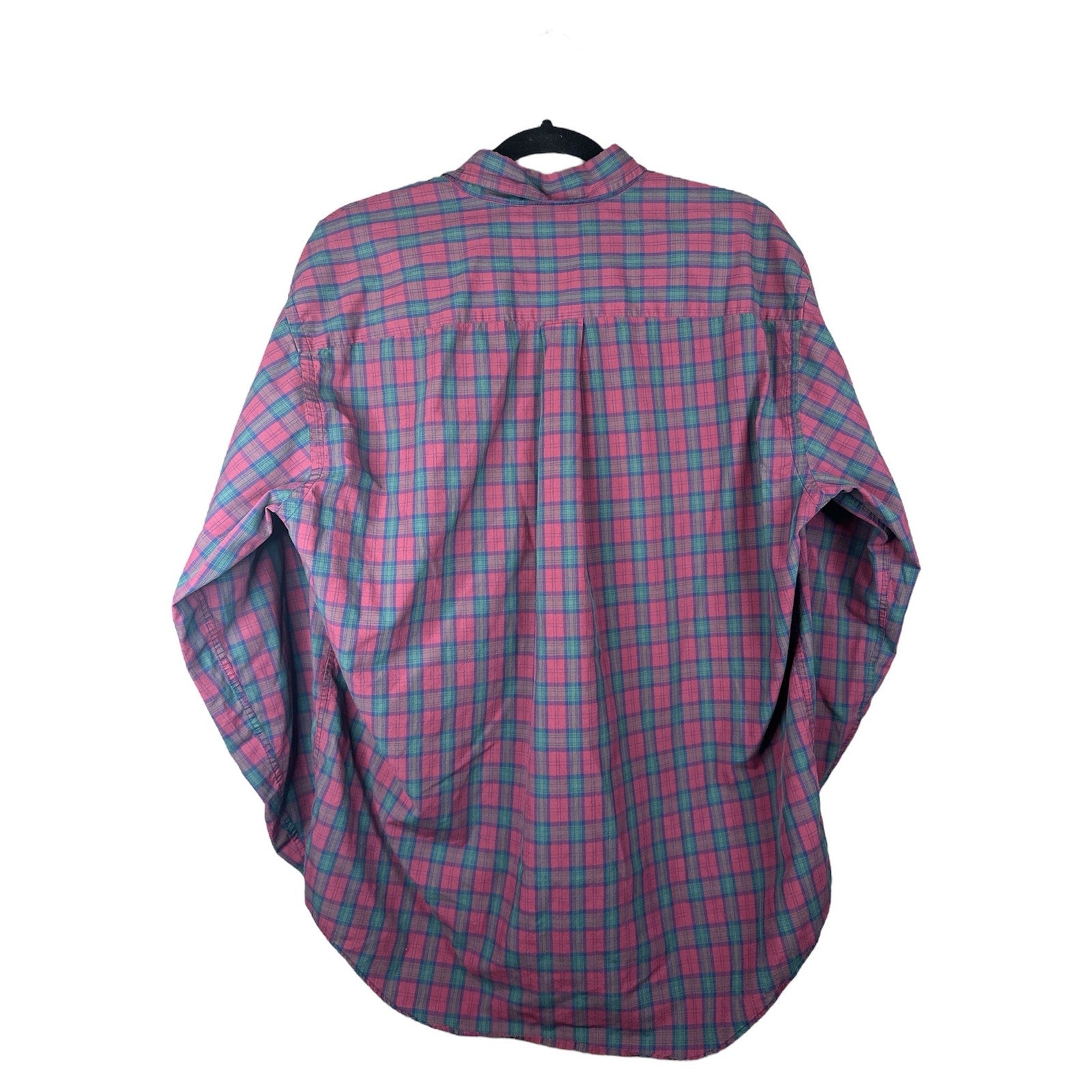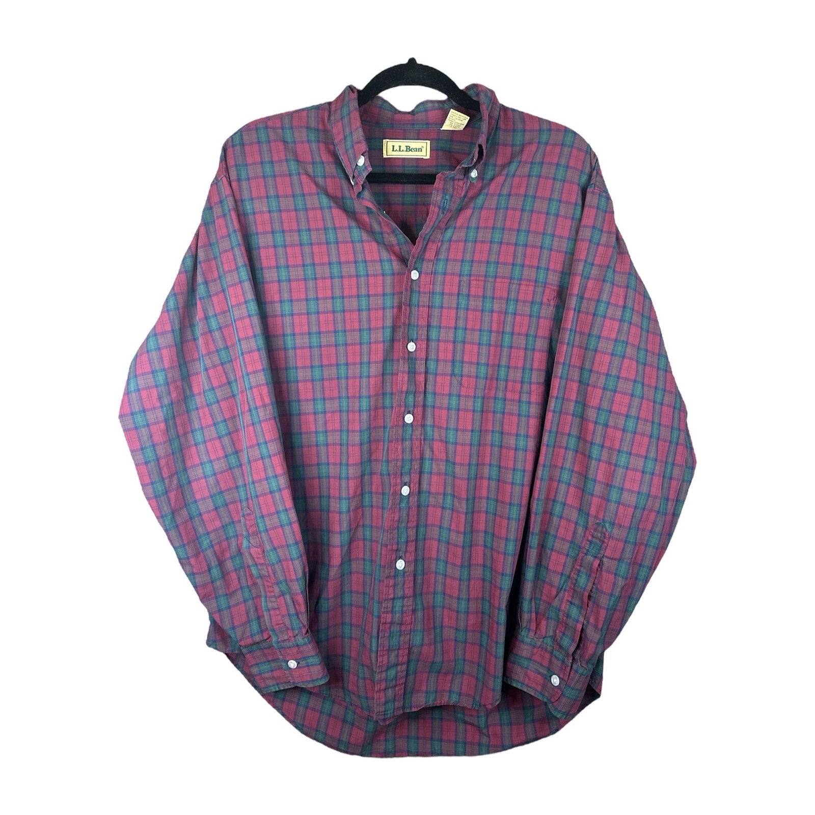 Vintage L.L. Bean Maroon Green Plaid Button Down Long Sleeve Shirt Size Large