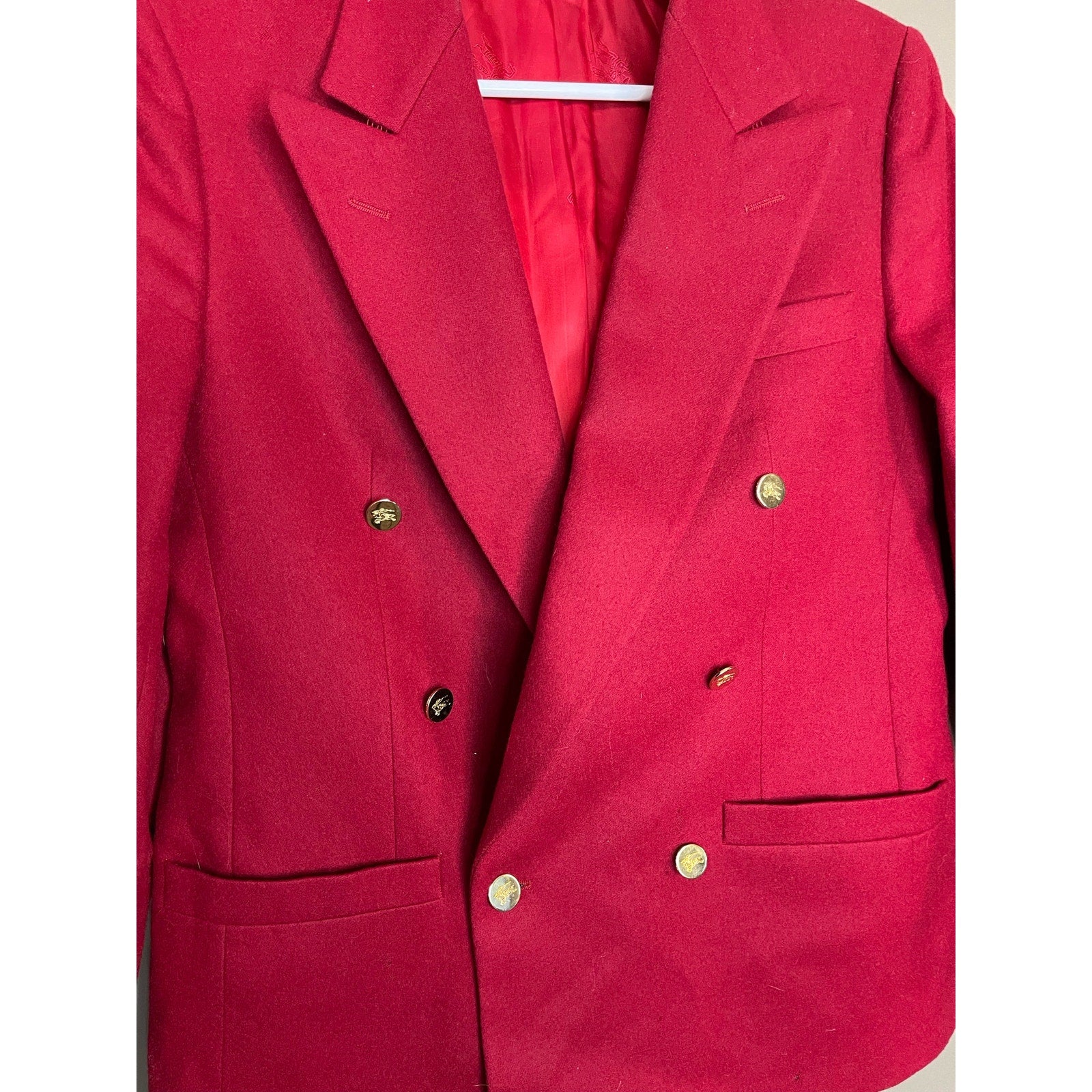 Vintage Red Burberry Long Sleeve Gold Button Double Breasted Blazer