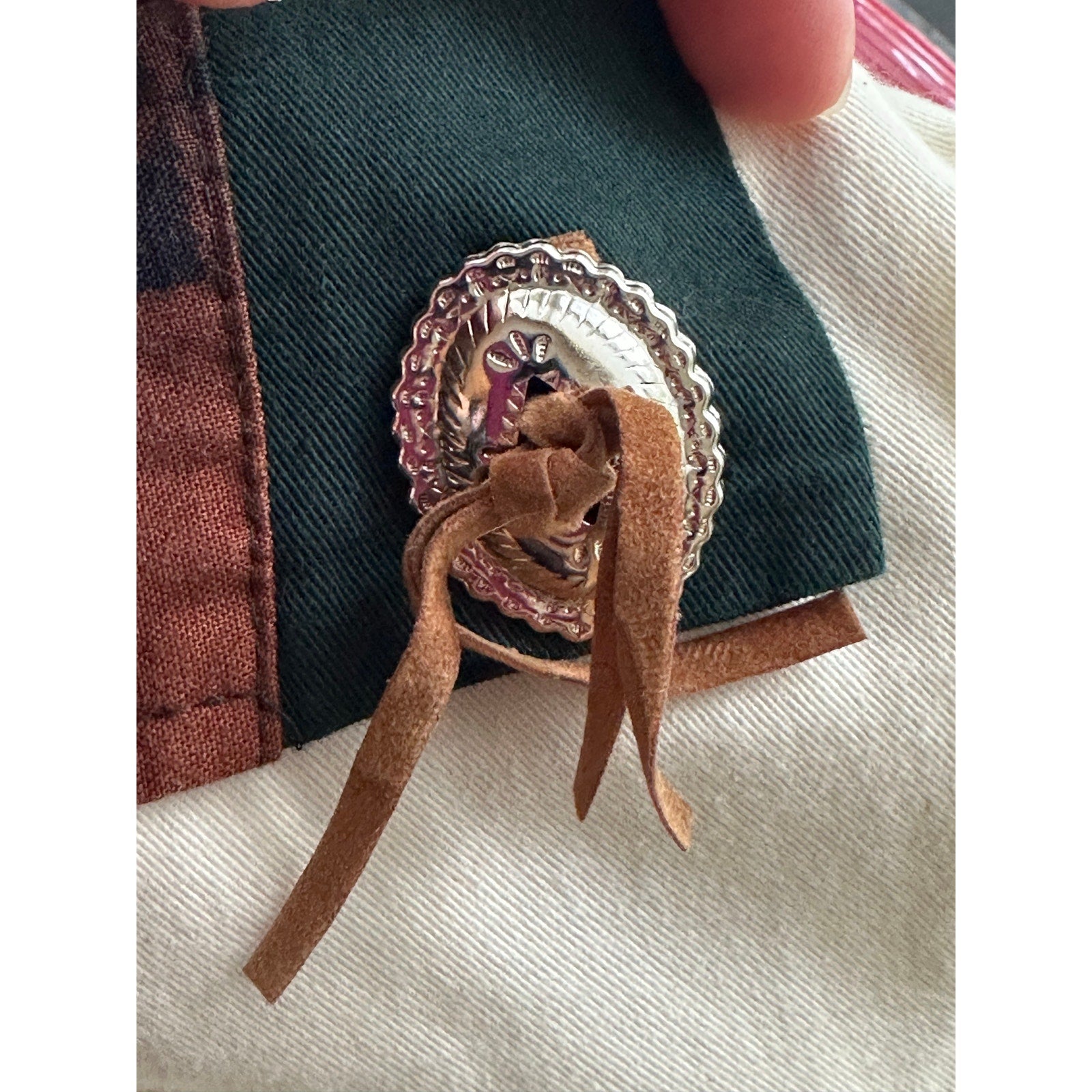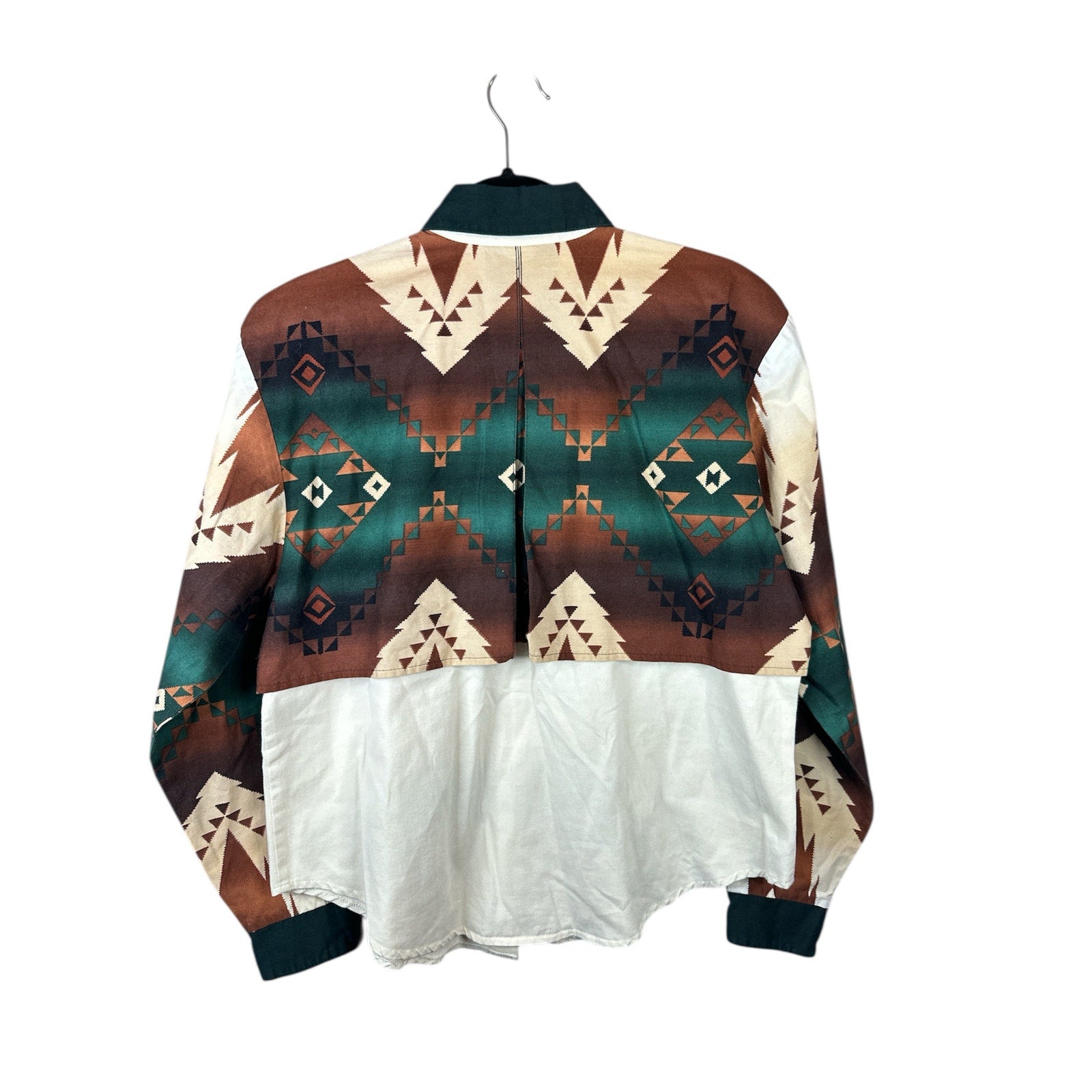 Vintage RoughRider Western Tassel Long Sleeve Button Down White Teal Size L