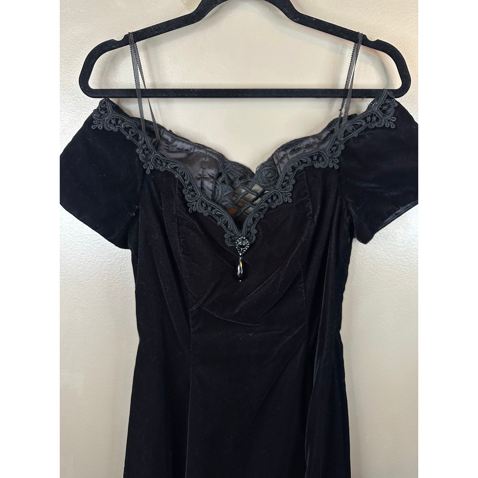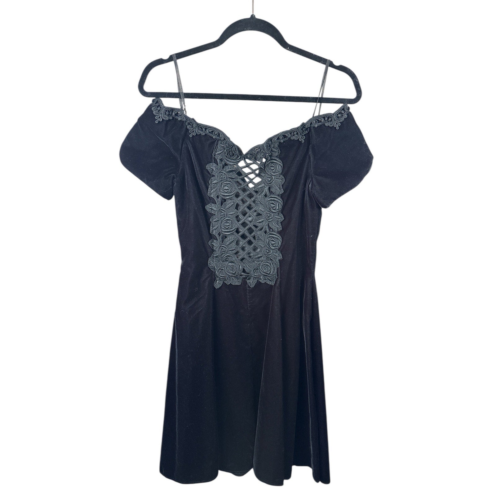 Vintage Scott McClintock Off Shoulder Velvet Lace Detail Black Mini Dress Size 6