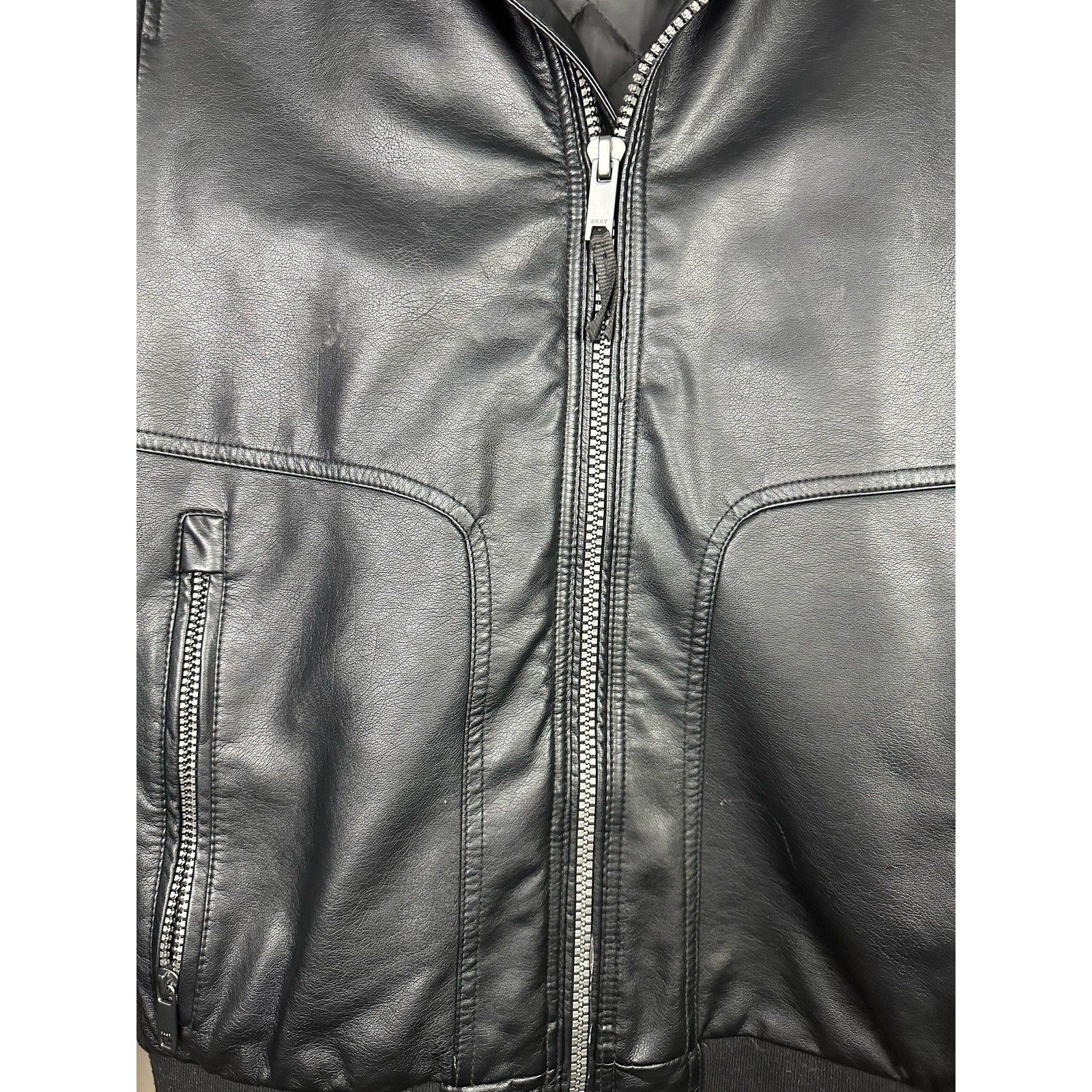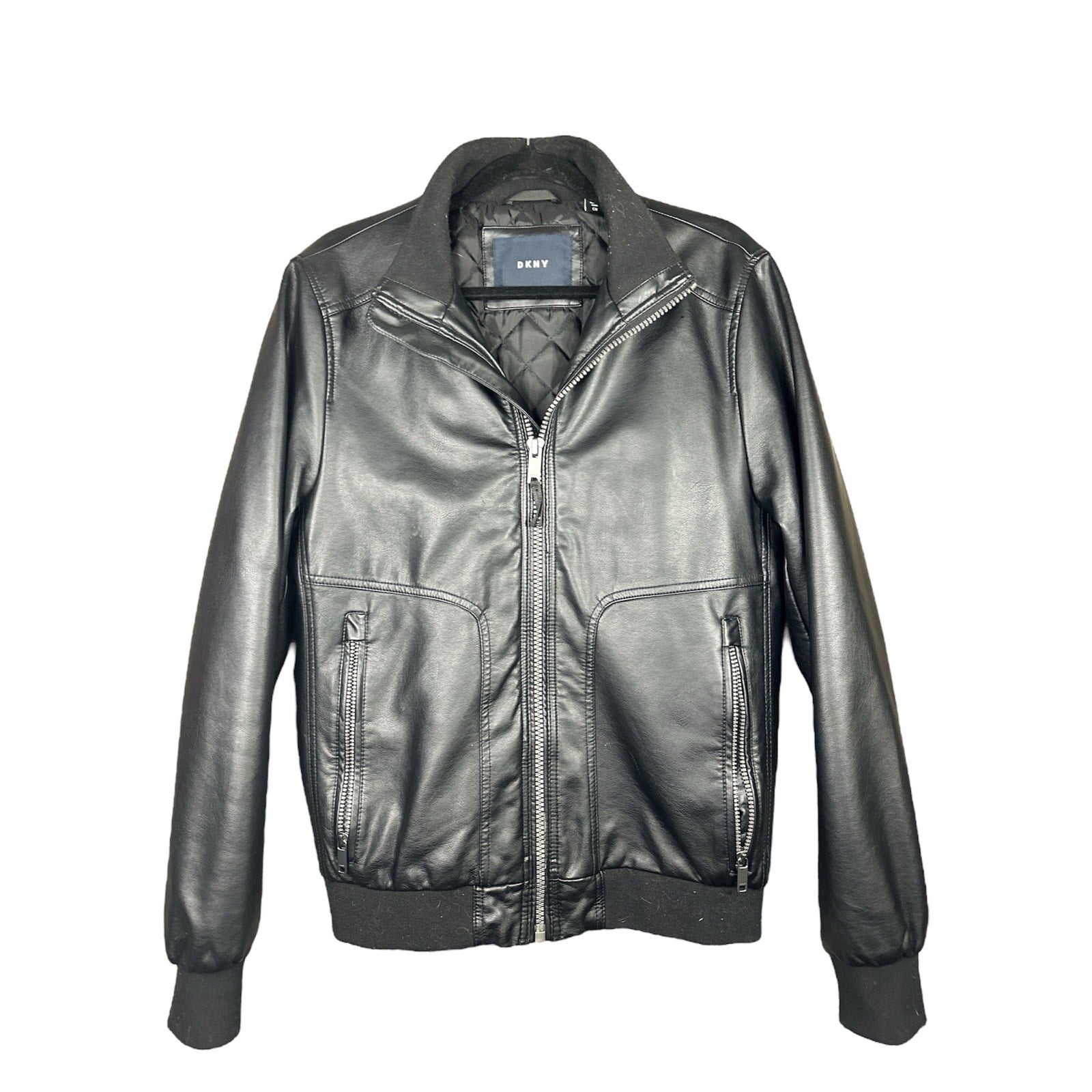 Women’s DKNY Black Zip Up Faux Leather Long Sleeve Bomber Jacket Size Small