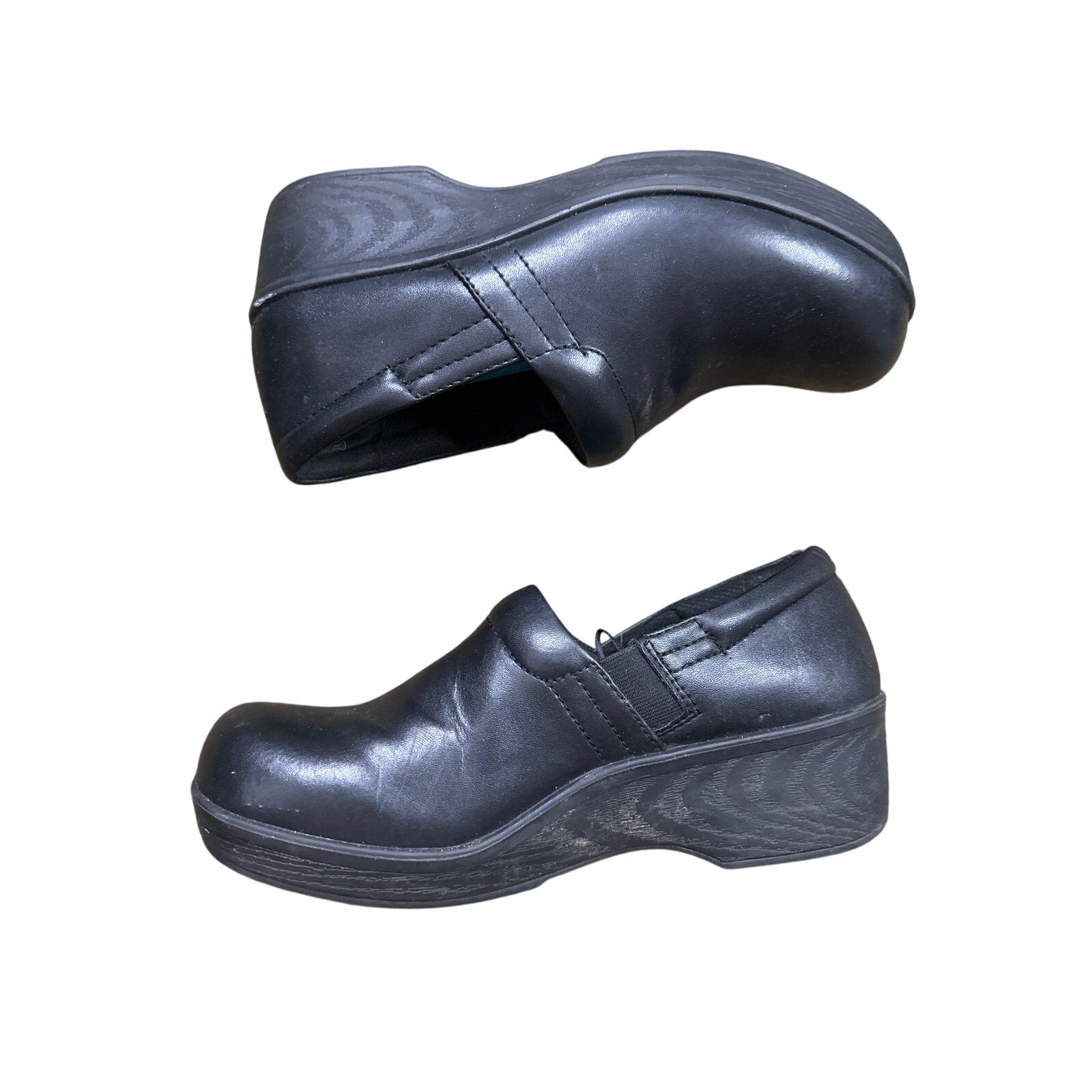 Women’s Dr. Scholls Slip Resistant Black Leather Man Made Comfort Clogs Size 6