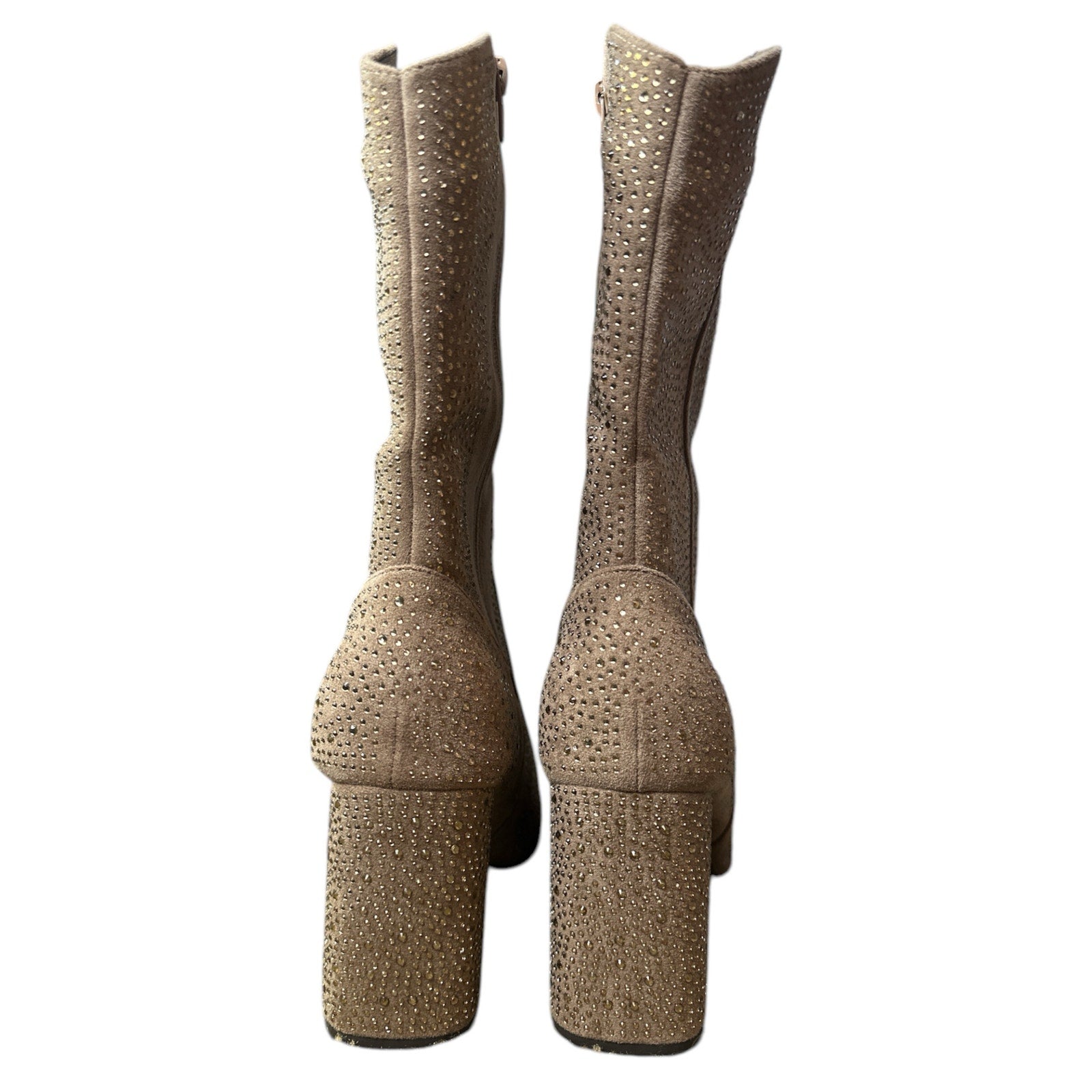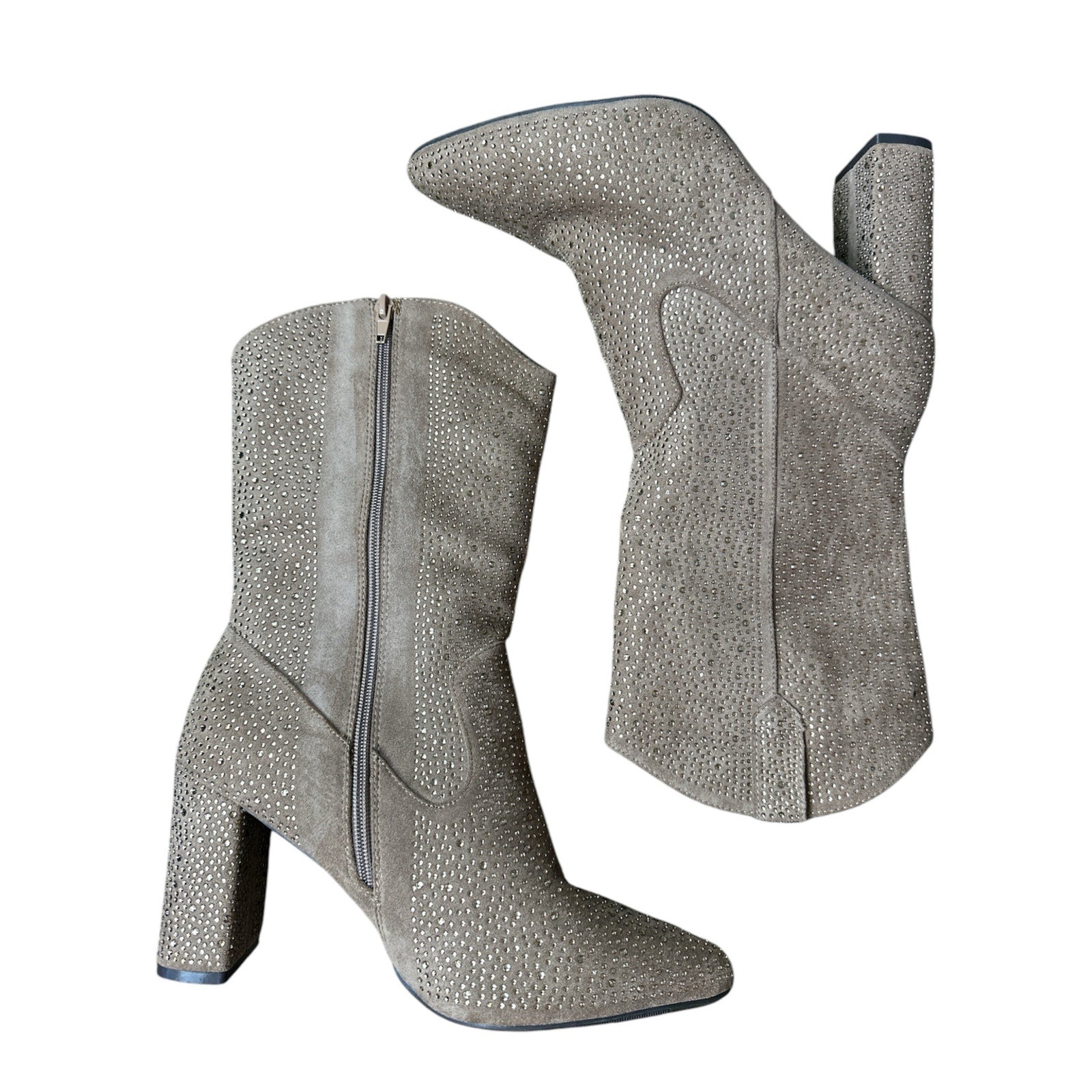 Women’s Pierre Dumas Rhinestone Tan Western Zip Up Heeled Mid Calf Boots Size 11