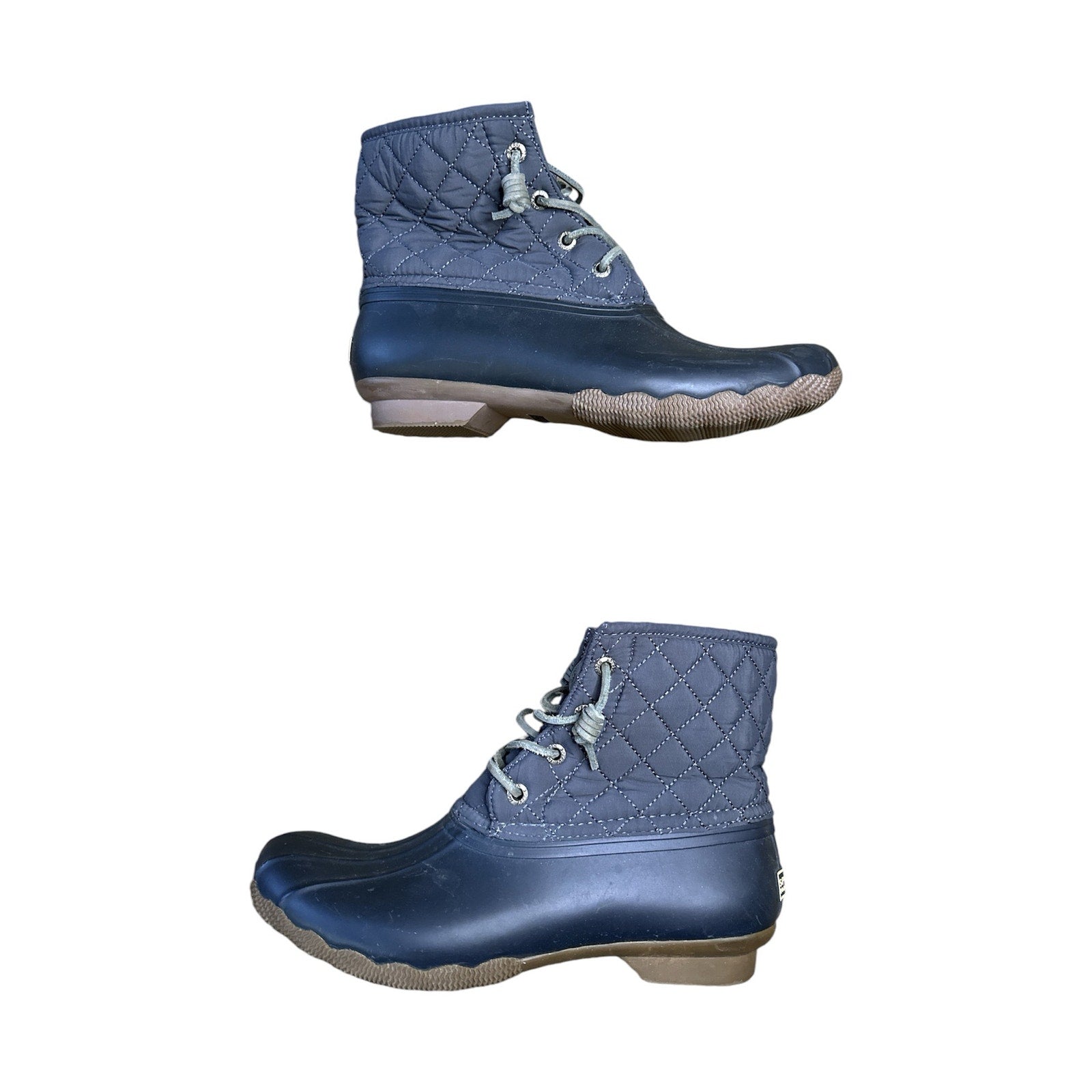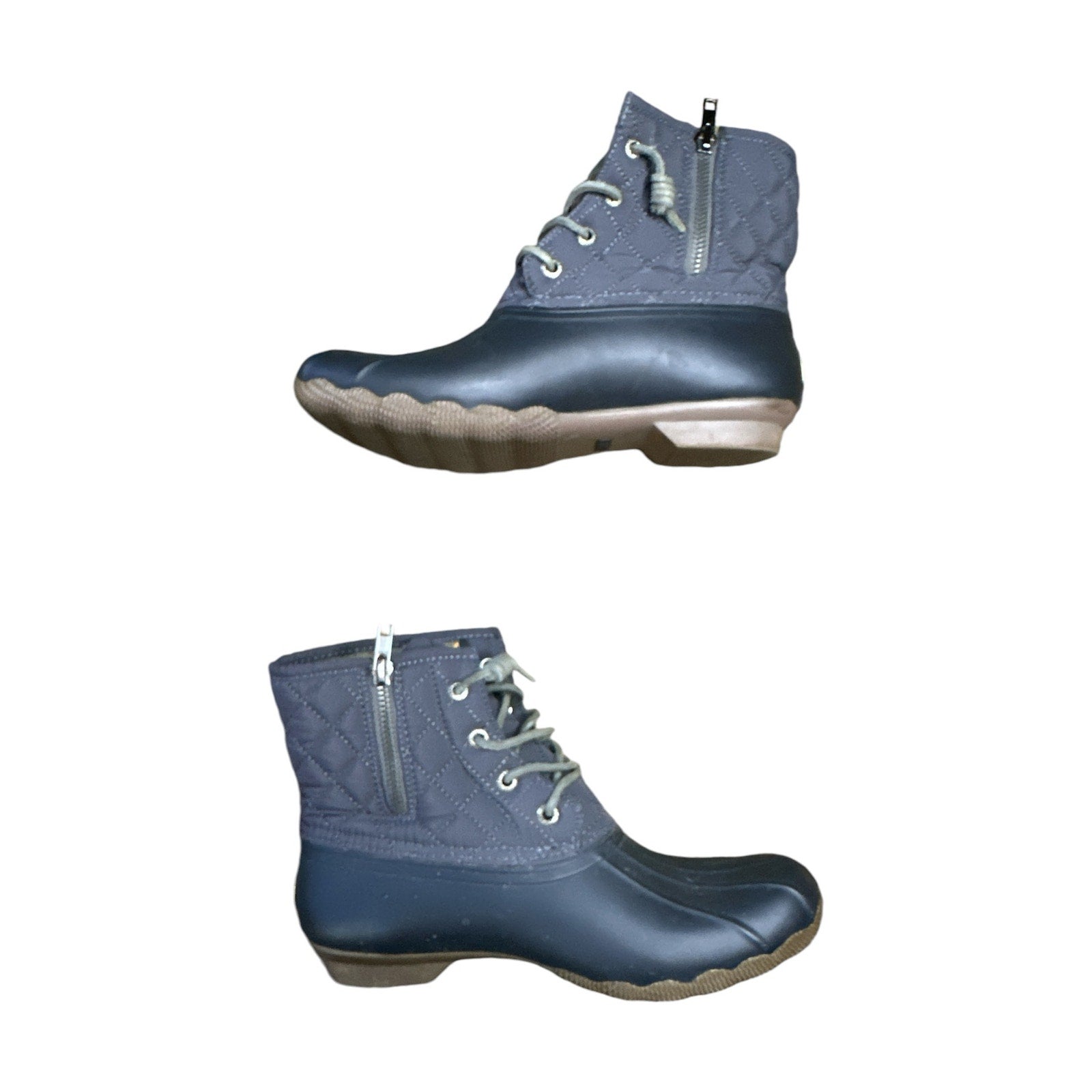 Women’s Sperry Top Sider Black/Grey Lace Up Duck Waterproof Rubber Boots Size 8